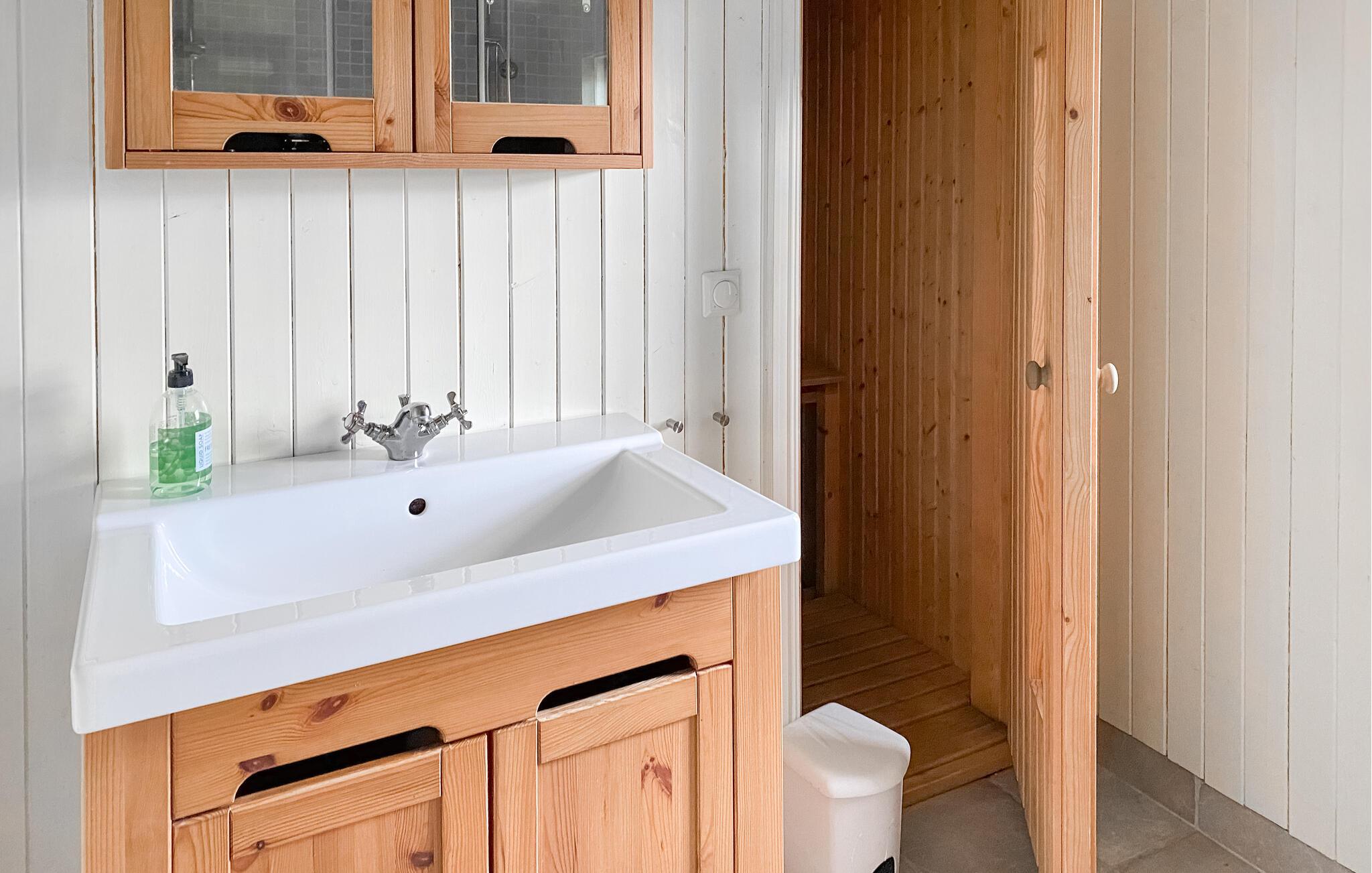 Upplev en avkopplande tid i detta rymliga semesterhus med bastu.