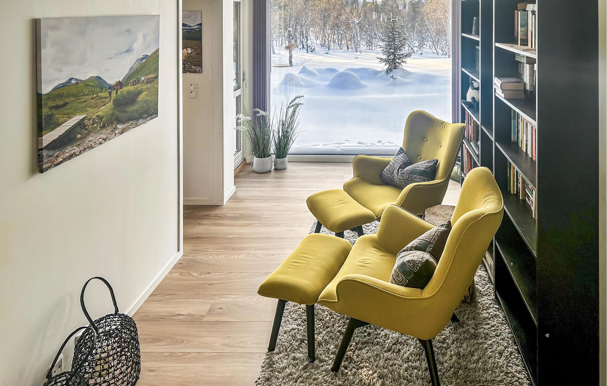 Välkommen till detta smakfullt inredda semesterhus i Oppdal, där stora panoramafönster översvämmar de eleganta rummen med gott om naturligt dagsljus. Slå dig ner i de mysiga fåtöljerna, fördjupa dig i en bok eller koppla av i bastun efter en lång vandring. Tillbringa tid med dina nära och kära i den bekväma soffgruppen och laga dina favoriträtter i det moderna, fullt utrustade köket med en inbjudande matplats.