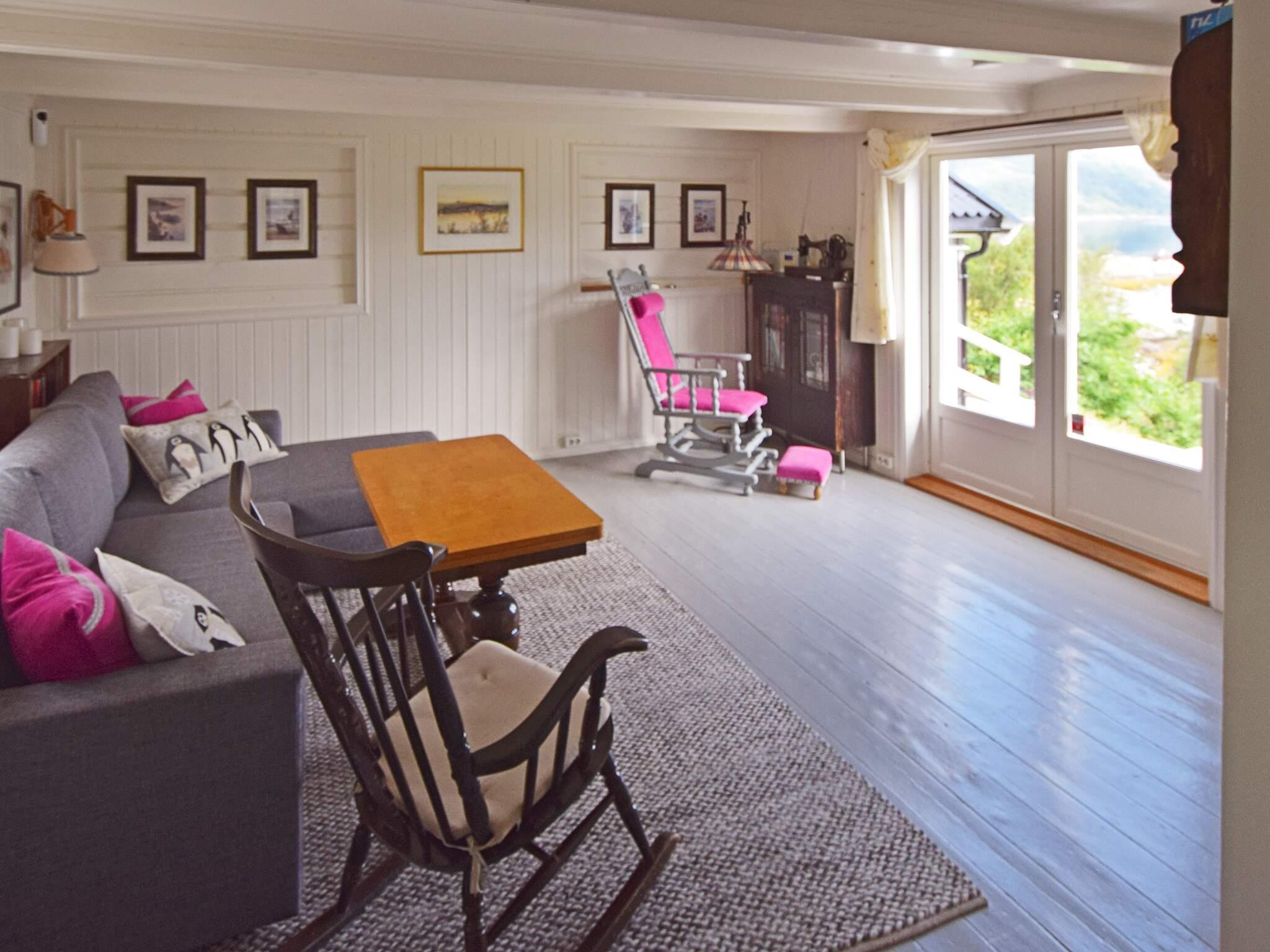Feriehytte med egen strandlinje og flott utsikt til fjorden på Sandhornøyas østside. Rolige omgivelser, rikt sjøfiske og herlige turmuligheter til fots. Barnevennlig uteområde med lekeapparater. Båt, kajakk og kano kan leies.