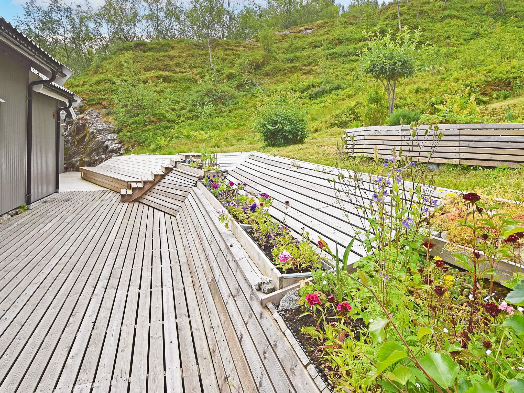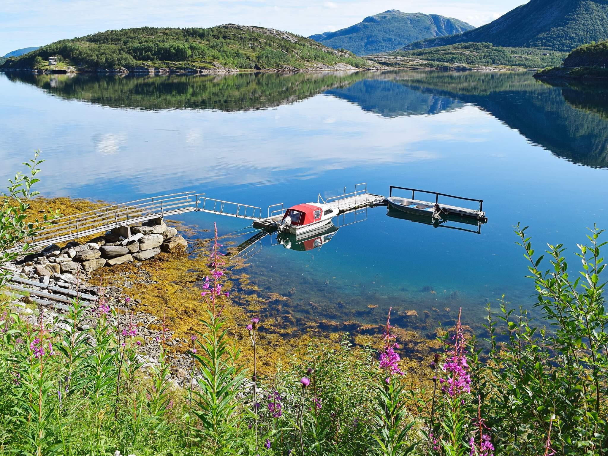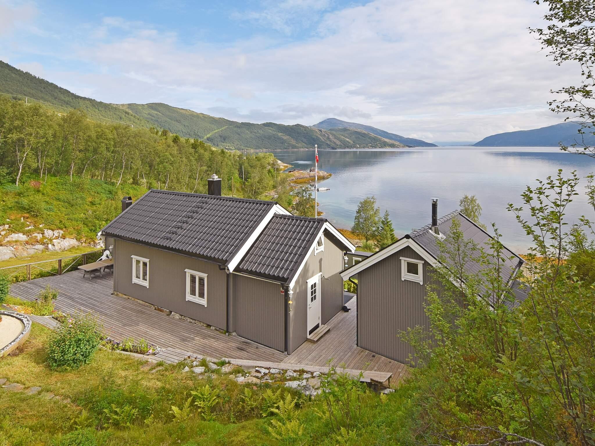 Fra hytta, terrassen og den koselige hagestuen kan du nyte den storslåtte utsikten mot det vakre fjordlandskapet. Stranda nedenfor er langgrunn og fin, her kan barna leke og plukke skjell. Barnevennlig uteområde med en liten lekehytte i skogen, sklie, aktivitetsløype m.m. Rikt sjøfiske i fjorden hvor båt og motor er til leie 1.5 – 1.10, samt kano og kajakk. Våtkort kreves ved leie av kajakk. Båt ligger ved privat flytebrygge 2,5 km fra hytta hvor det er tilgang til sløyebenk for fisk samt rennende vann. 5 km til Kjøpstad hvor større båter kan leies.