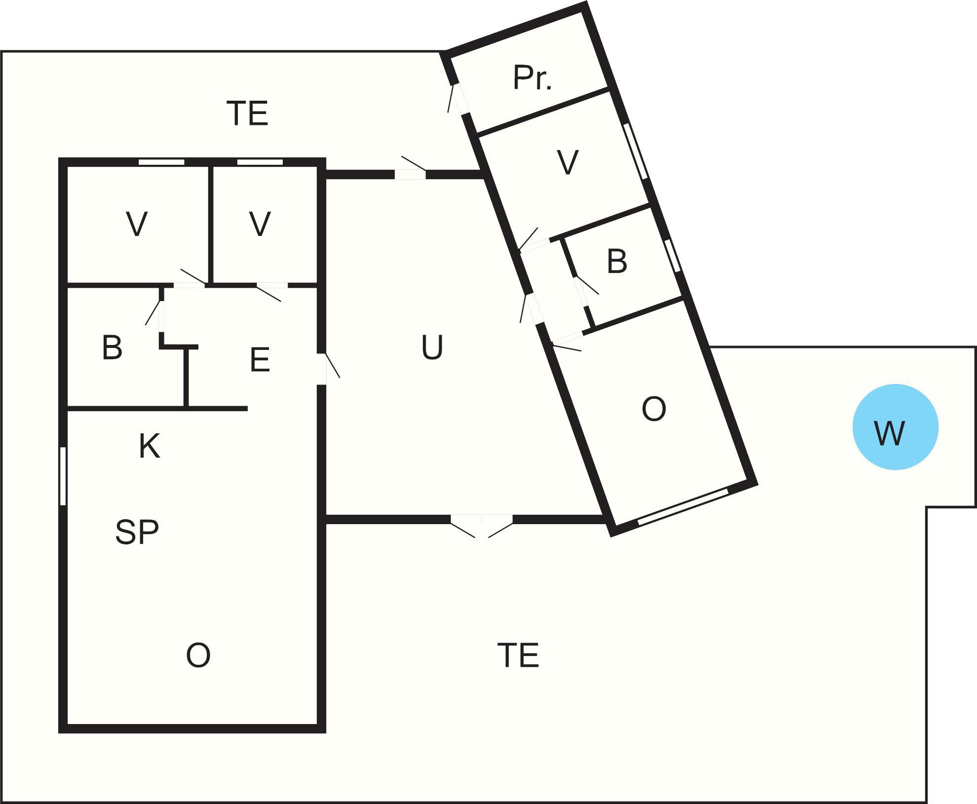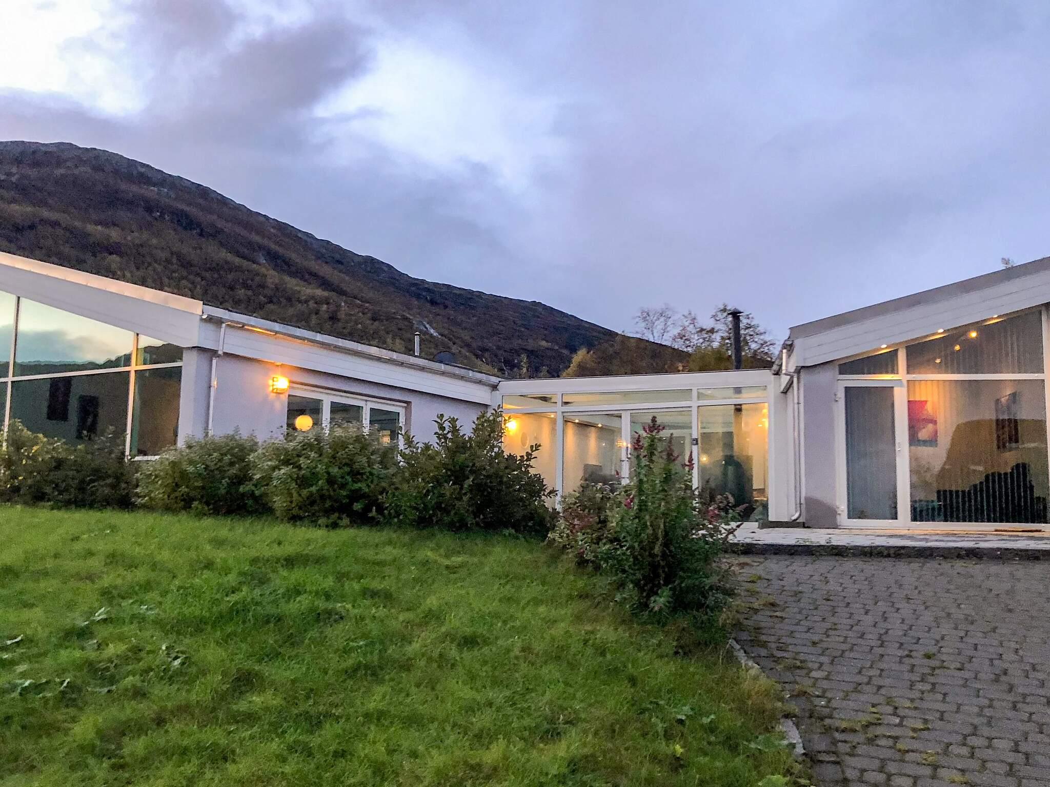 Feriehuset er romslig og praktisk innredet og har gulvvarme i alle rom, unntatt soverom. Parabol-tv med mange internasjonale kanaler, deriblant tyske. Huset har en spennede løsning og består av 2 adskilte avdelinger med en vinterstue mellom. I den minste delen er det bad, ett soverom og en tv-stue med dobbel sovesofa (kan benyttes som soverom). 2 av soverommene har familiekøye med 1,20 m bredde nede og enkeltkøye oppe. På kalde dager er vinterhagen et lunt og flott samlingssted. På den store terrassen rundt huset er det god plass, og fra boblebadet kan du nyte storslått utsikt mot sjøen og fjellet Sandhornet i nord.