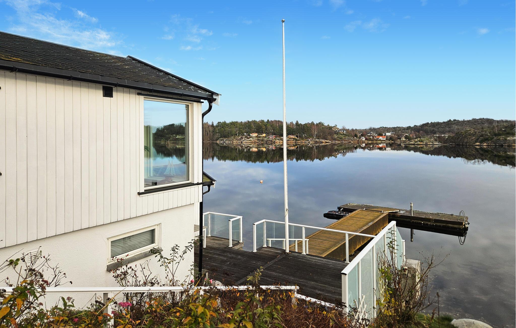 Detta vackra semesterhus på Vesterøya imponerar med sitt underbara läge med egen strandlinje och tillgång till badbryggan. Stora fönster ger dig utsikt över den glittrande fjorden och fyller vardagsrummet med öppen planlösning med ljus. En öppen spis skapar en mysig atmosfär under svalare dagar, medan de eleganta möblerna och den ljusa atmosfären får dig att känna dig välkommen. Du kan avnjuta dina måltider på terrassen med utsikt över vattnet eller bara njuta av lugnet i omgivningarna.