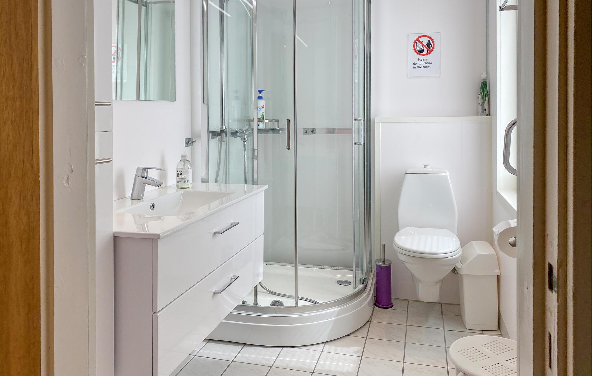 Badrum (nr. 1) - WC: Varmt och kallt vatten. Dusch