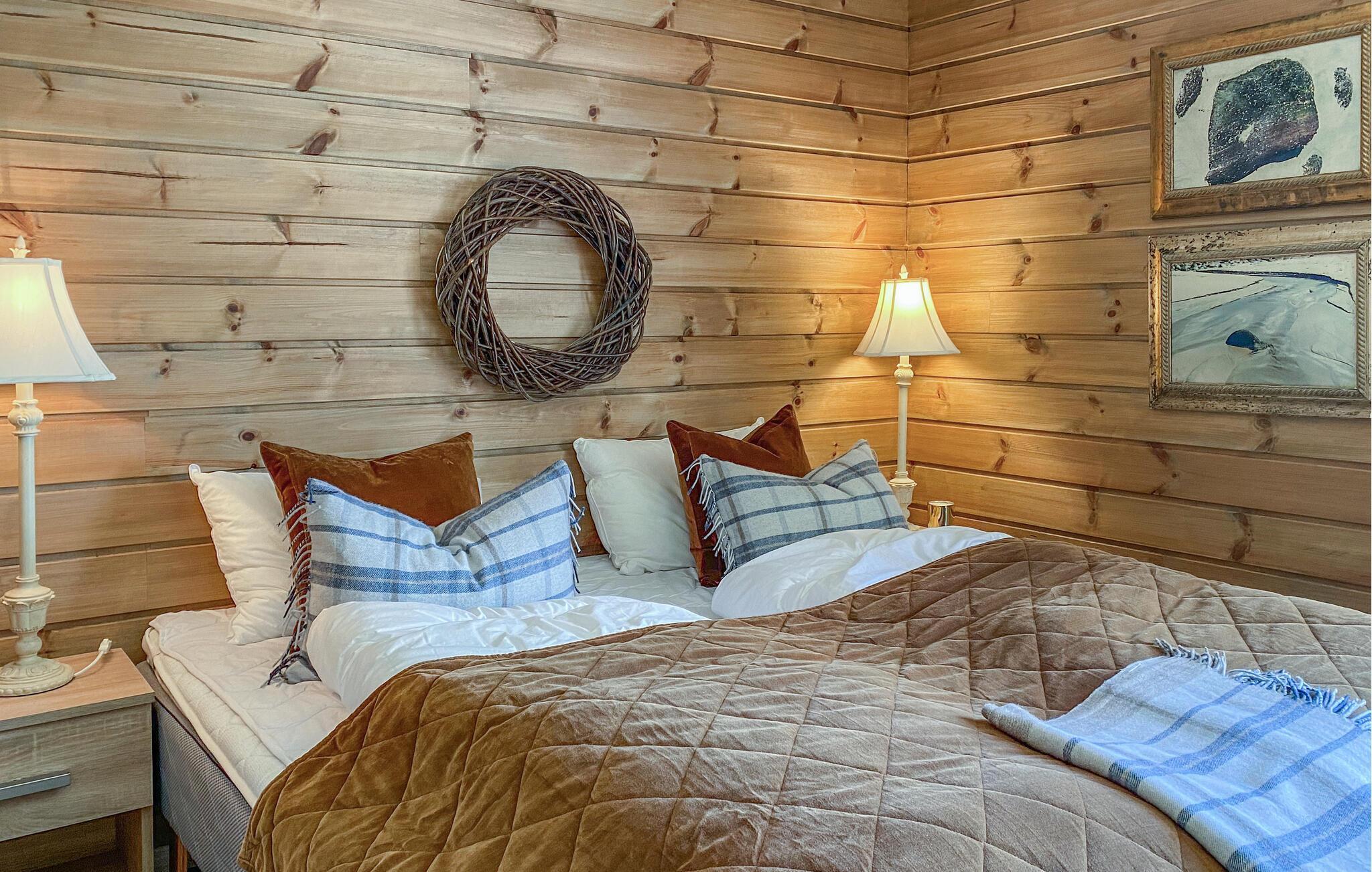 Res till Stryn och tillbringa en oförglömlig semester i detta vackra semesterhus. Huset kännetecknas av mysighet, kärleksfull dekoration och hög kvalitet. Njut av atmosfären som skapas av de stora spröjsade fönstren, ljuset och den mysiga träatmosfären. Den vedeldade kaminen erbjuder också en härlig möjlighet att mysa upp i sofforna på kvällen och ha en lång pratstund. På morgonen kan du förbereda frukost tillsammans i det välutrustade och stora köket, som du också kan njuta av på den stora träterrassen på sommaren. Andas in den friska bergsluften och koppla sedan av i bubbelpoolen med sin magnifika panoramautsikt.