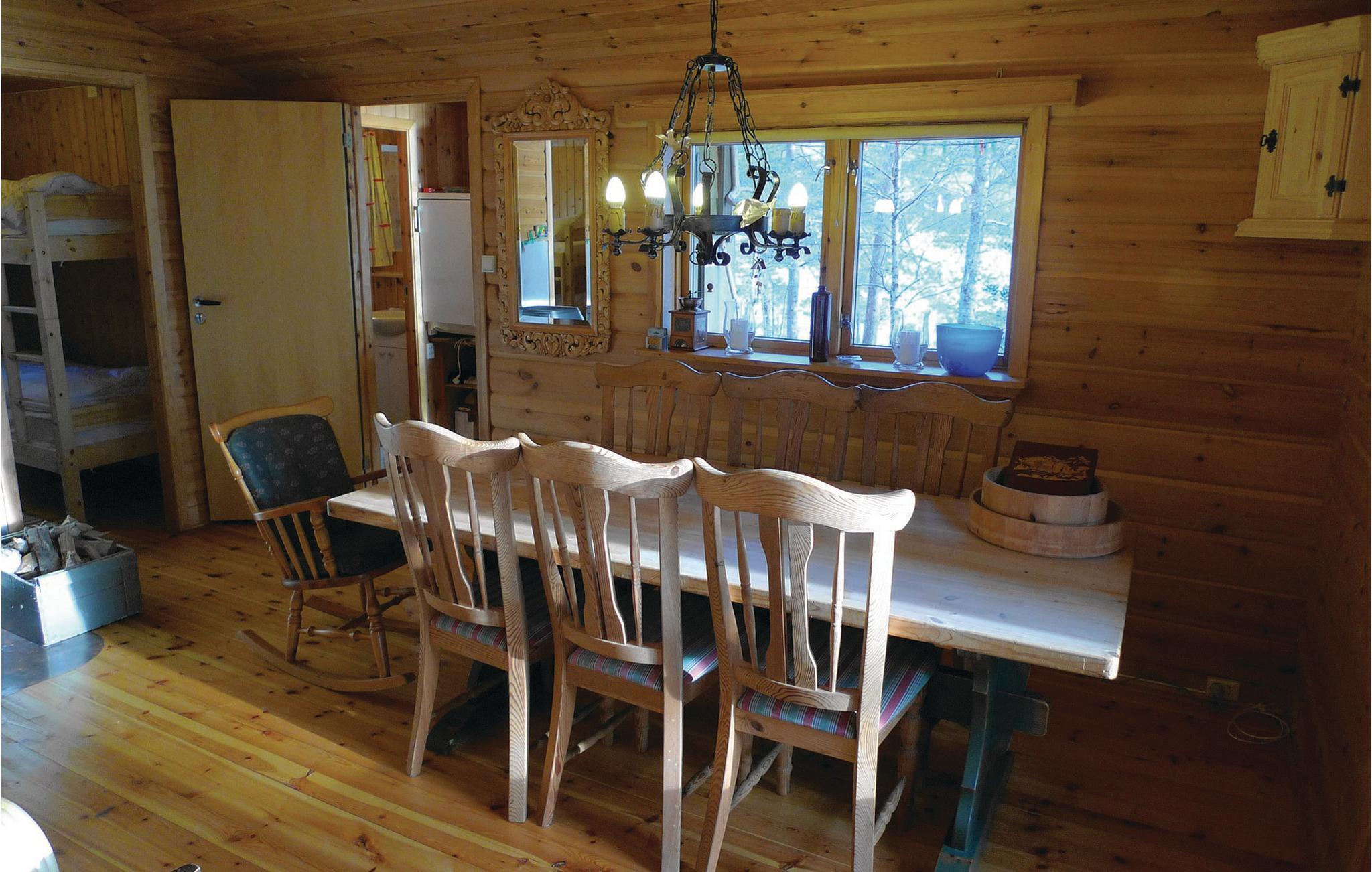 Välkommen till ditt enkelt inredda semesterhus, som erbjuder dig en paus nära naturen. Här kan du koppla av på den rymliga terrassen och njuta av solskenet. Det omgivande området är idealiskt för många aktiviteter och erbjuder direkt tillgång till naturen. Se fram emot det mysiga vardagsrummet. De rustika möblerna med träväggar skapar en varm atmosfär. En vedeldad kamin ger mysig värme under kyligare dagar. Använd det praktiska köket med öppen planlösning för att laga enkla måltider. Ni kan äta tillsammans vid det stora matbordet och njuta av utsikten över det omgivande landskapet.
