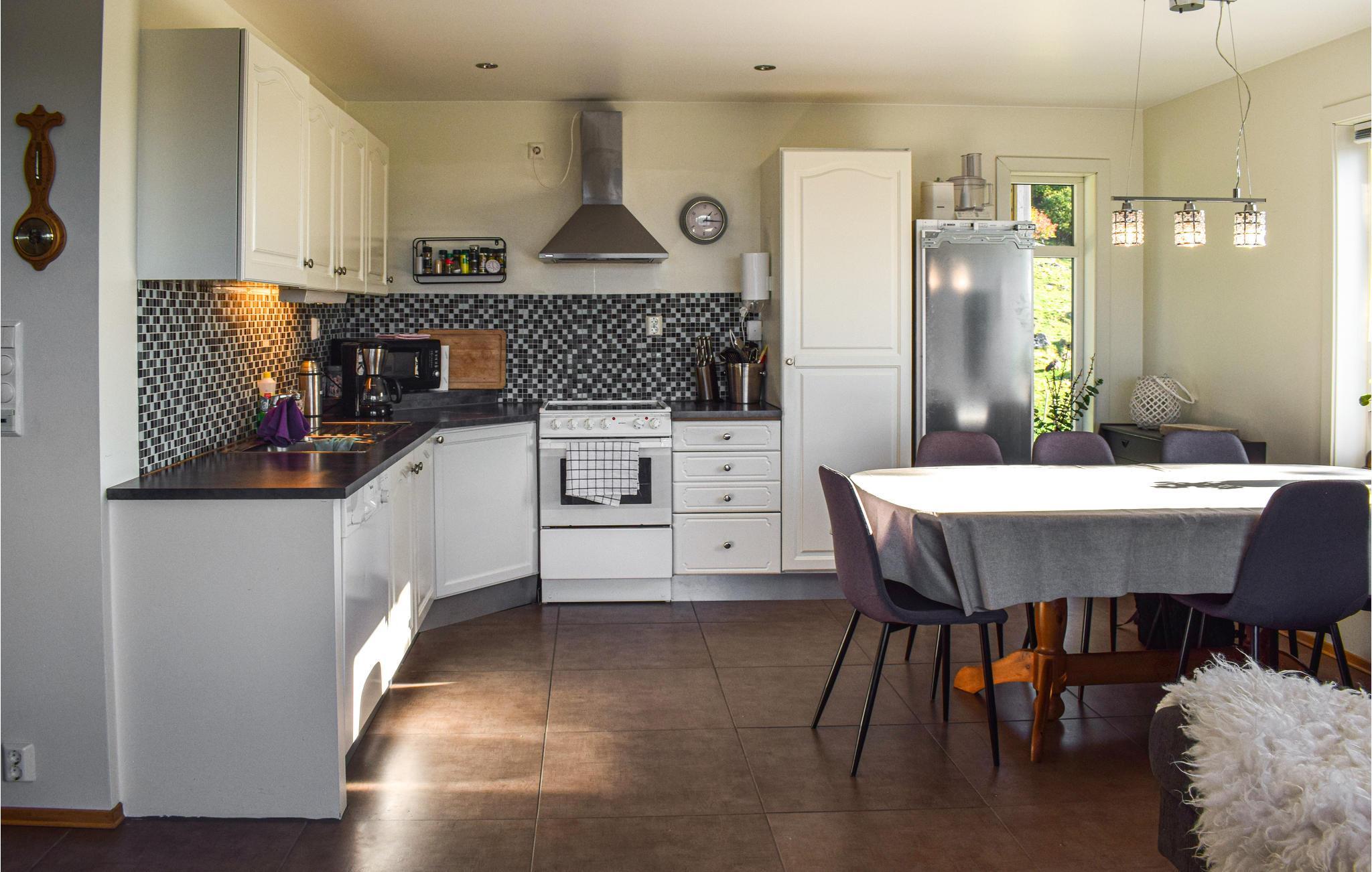 Semesterhuset är varmt och mysigt. Du kan sitta vid fönstret och njuta av utsikten över omgivningarna medan du planerar aktiviteterna för den kommande dagen. I köket kan du tillaga färsk fisk till middag och äta tillsammans vid det stora matbordet.