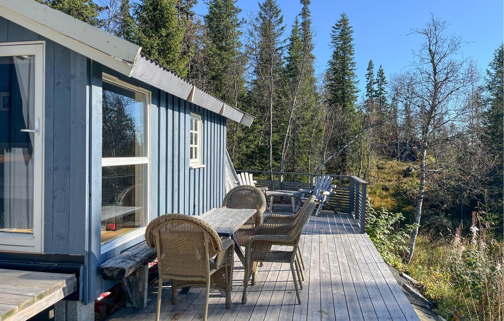 Från terrassen kan du njuta av utsikten över det omgivande bergslandskapet och njuta fullt ut av lugnet i detta unika läge på solsidan av Gaustatoppen.