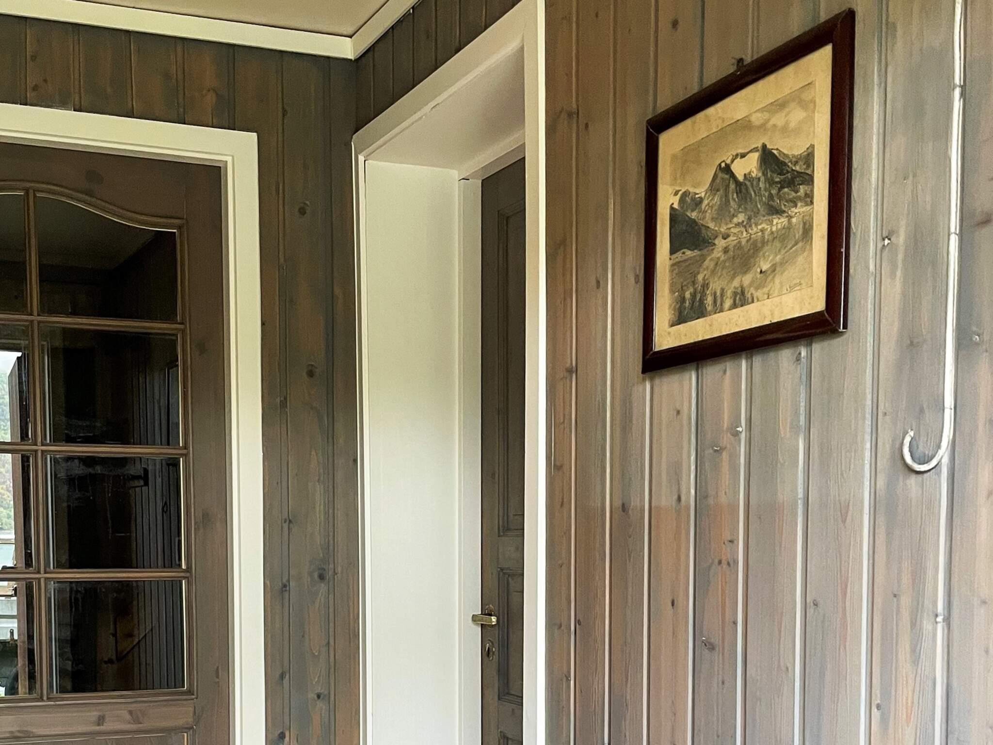 Koselig feriehus med panoramautsikt over Oppstrynsvatnet, naust og robåt.