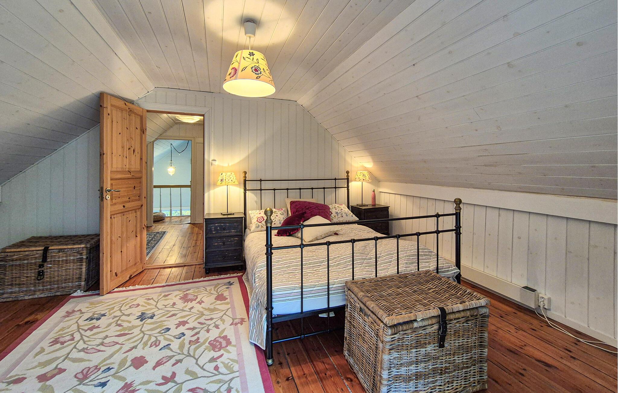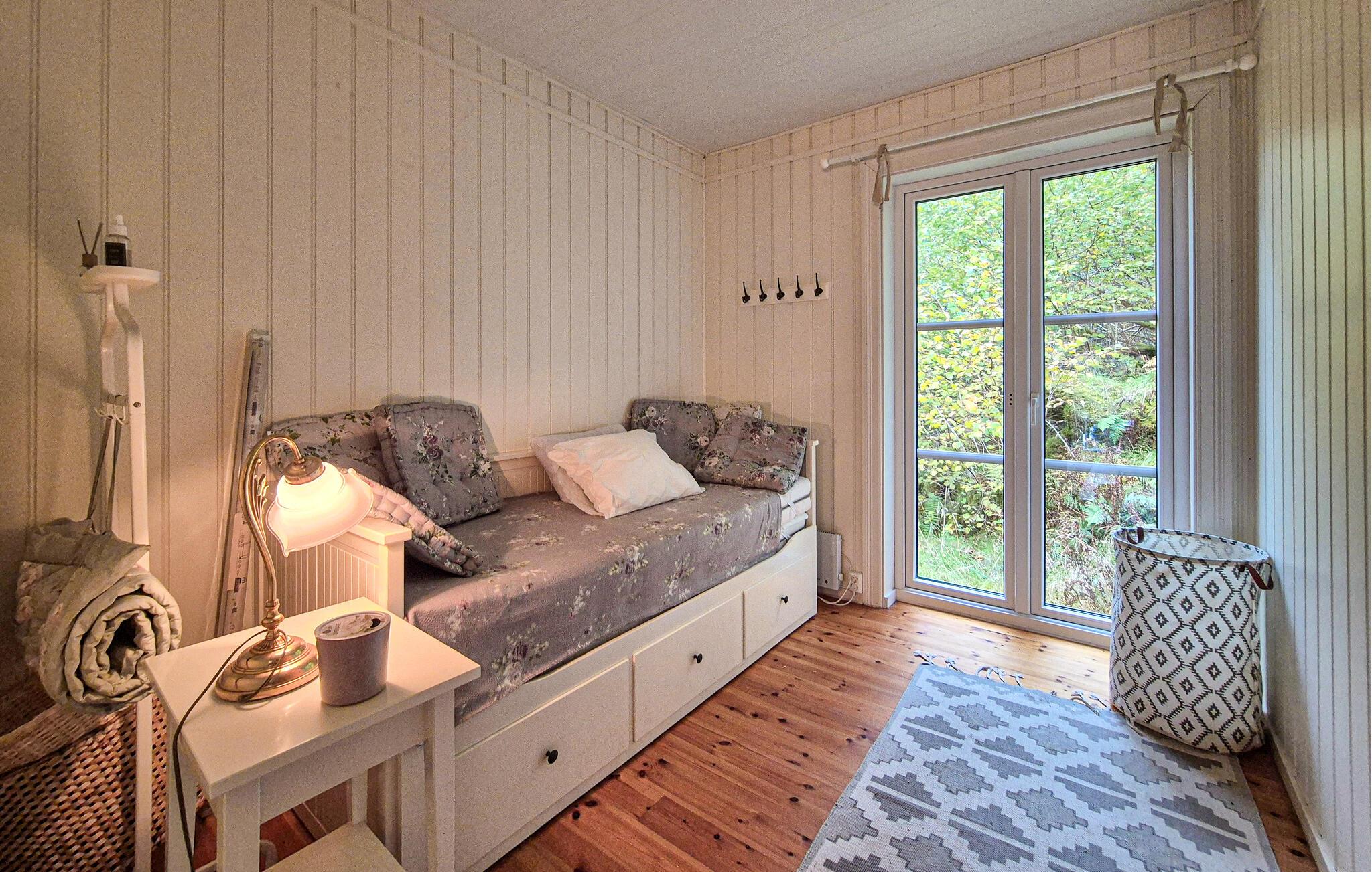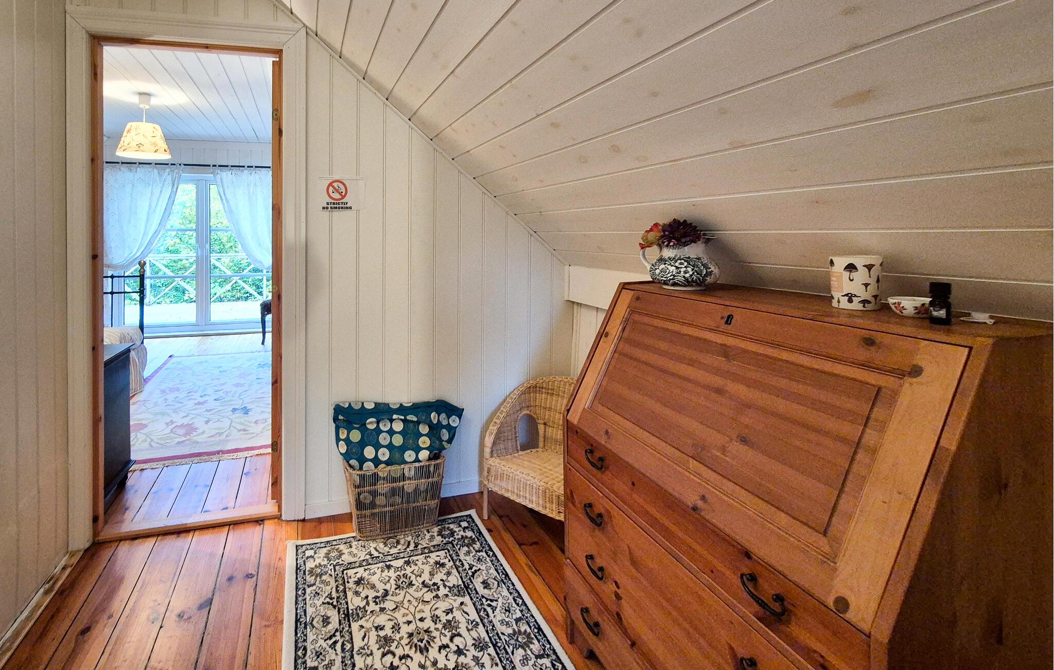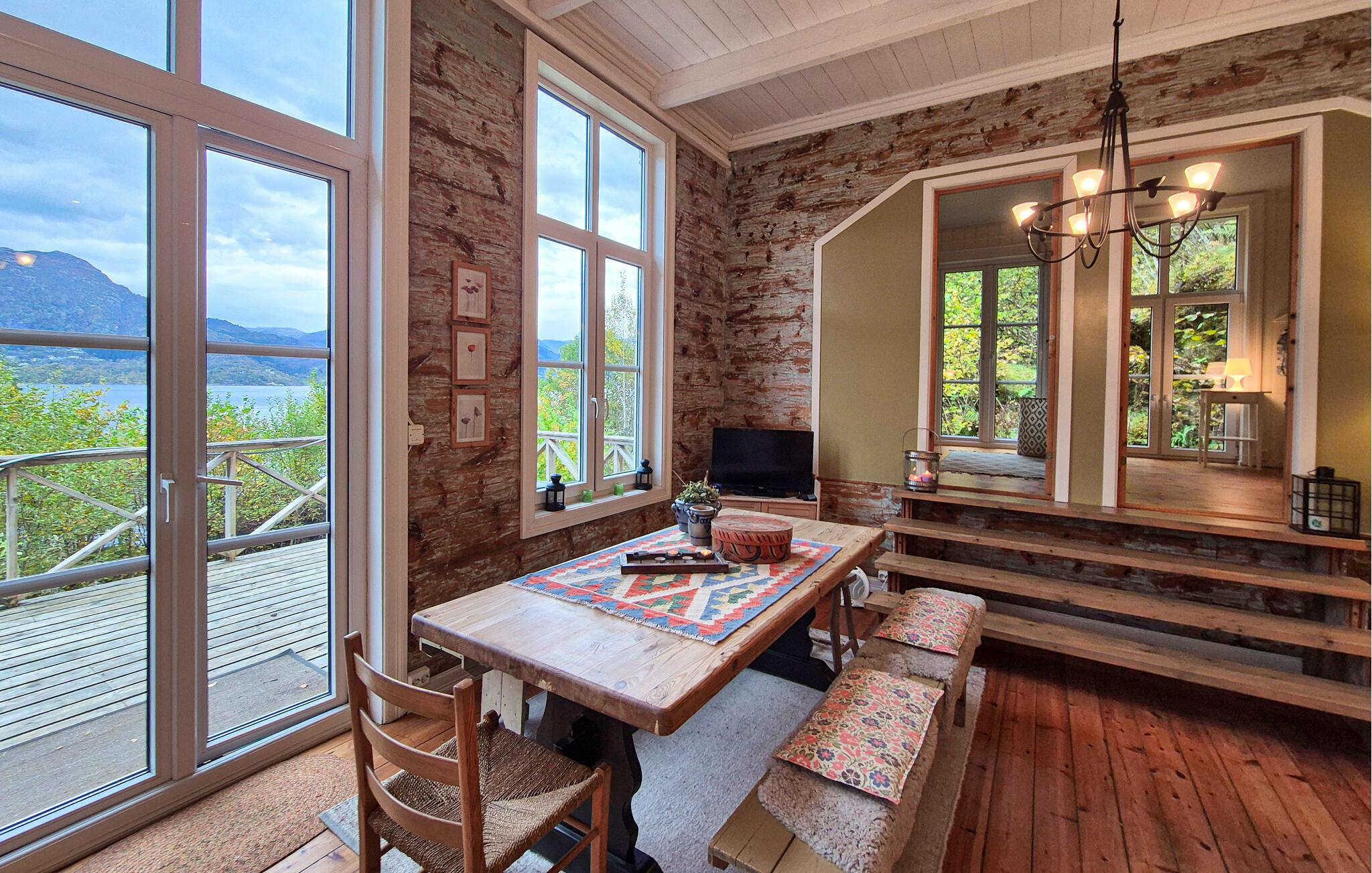 Detta kärleksfullt restaurerade semesterhus välkomnar dig med en varm och mysig atmosfär och skämmer bort dig med en förtrollande utsikt över fjorden tack vare de stora fönstren. Tillbringa trevliga kvällar med matlagning i det inbjudande köket och lyssna till det mjuka sprakandet från den norska spisen medan du njuter av harmoniska måltider. Gör dig bekväm i soffan efter en lång dag, planera dina aktiviteter eller fördjupa dig i en god bok på din favoritplats.