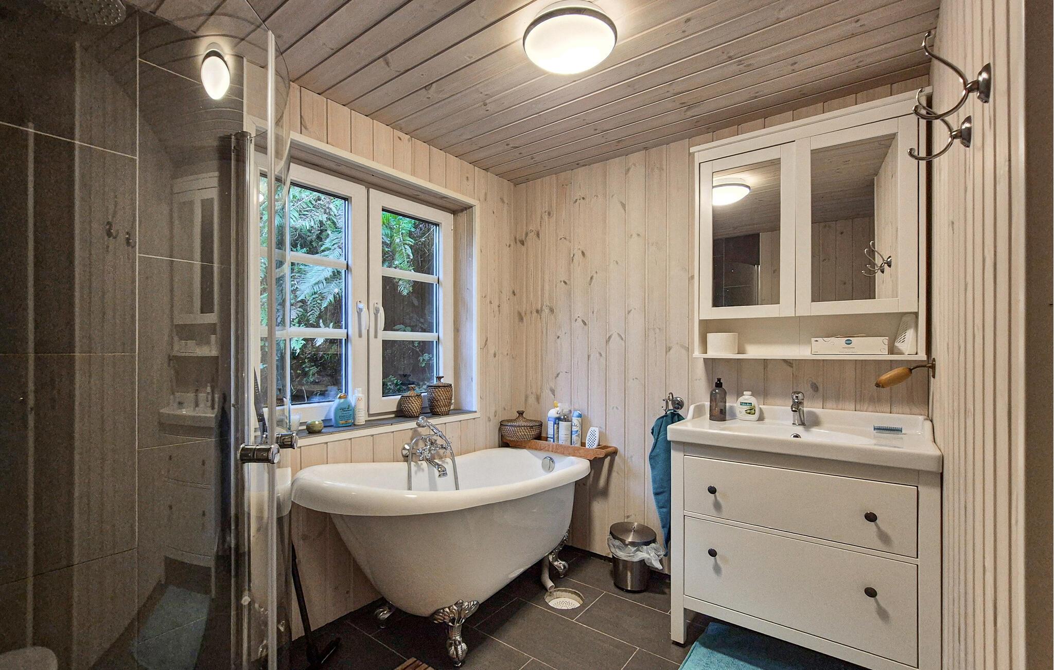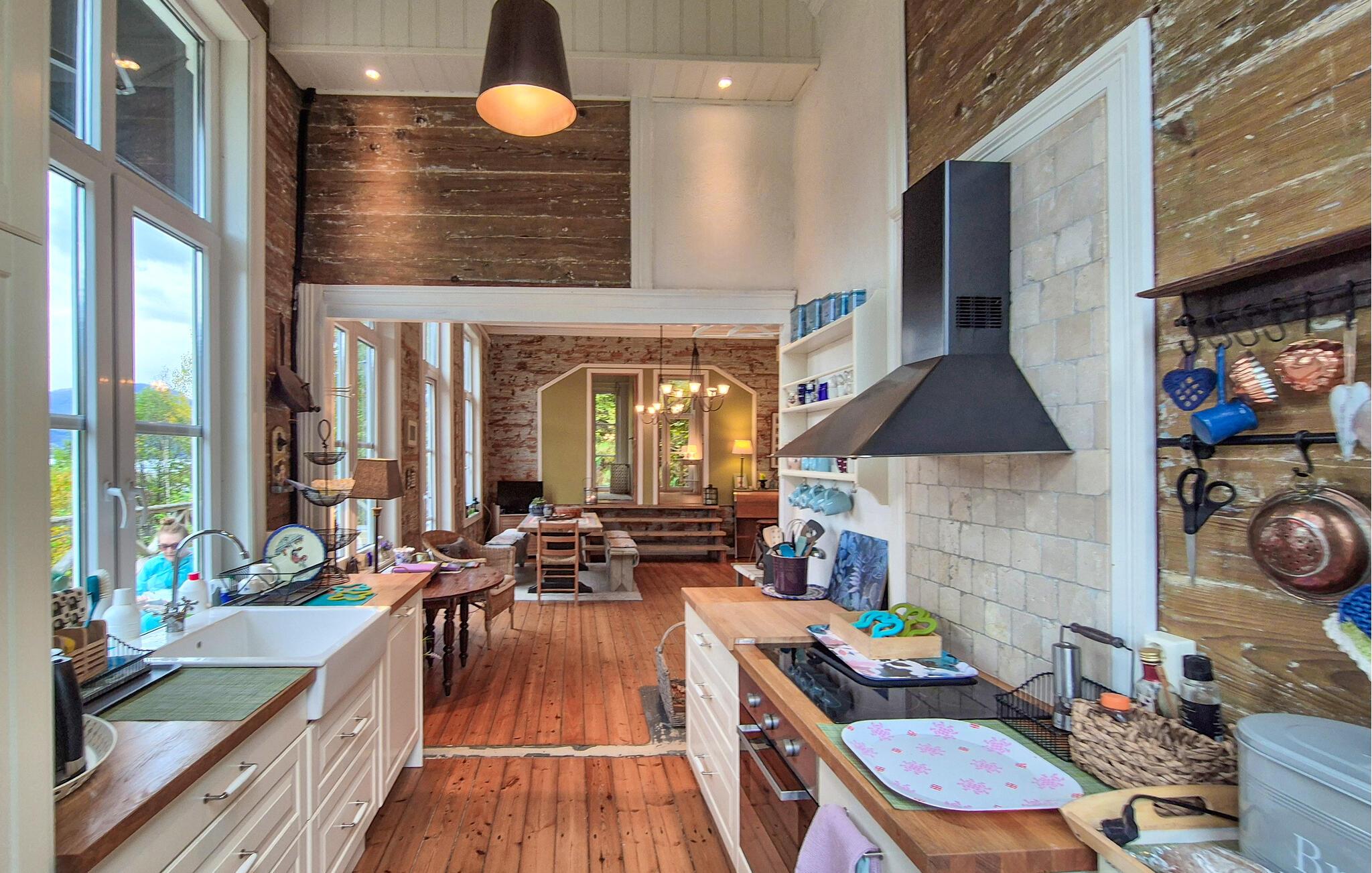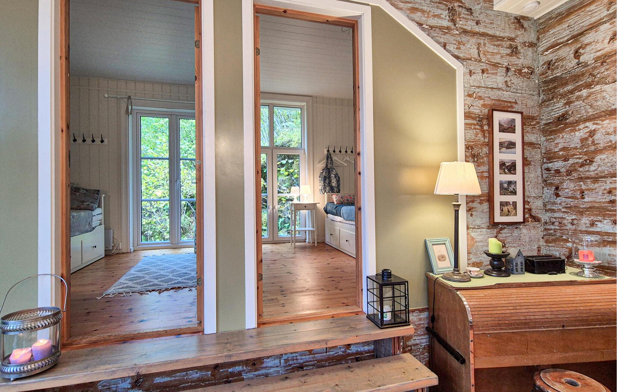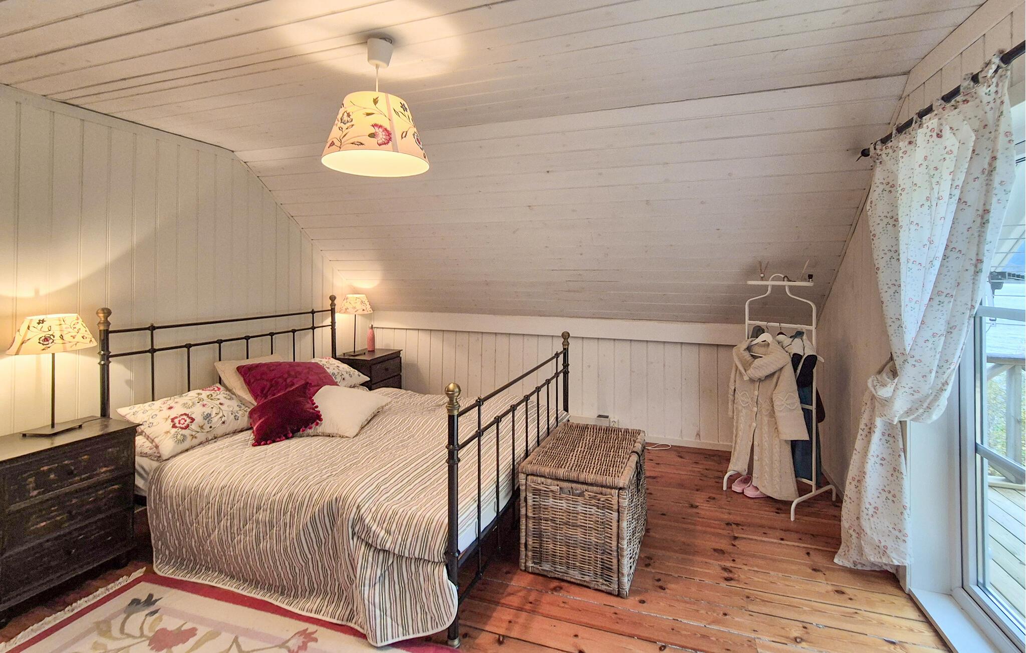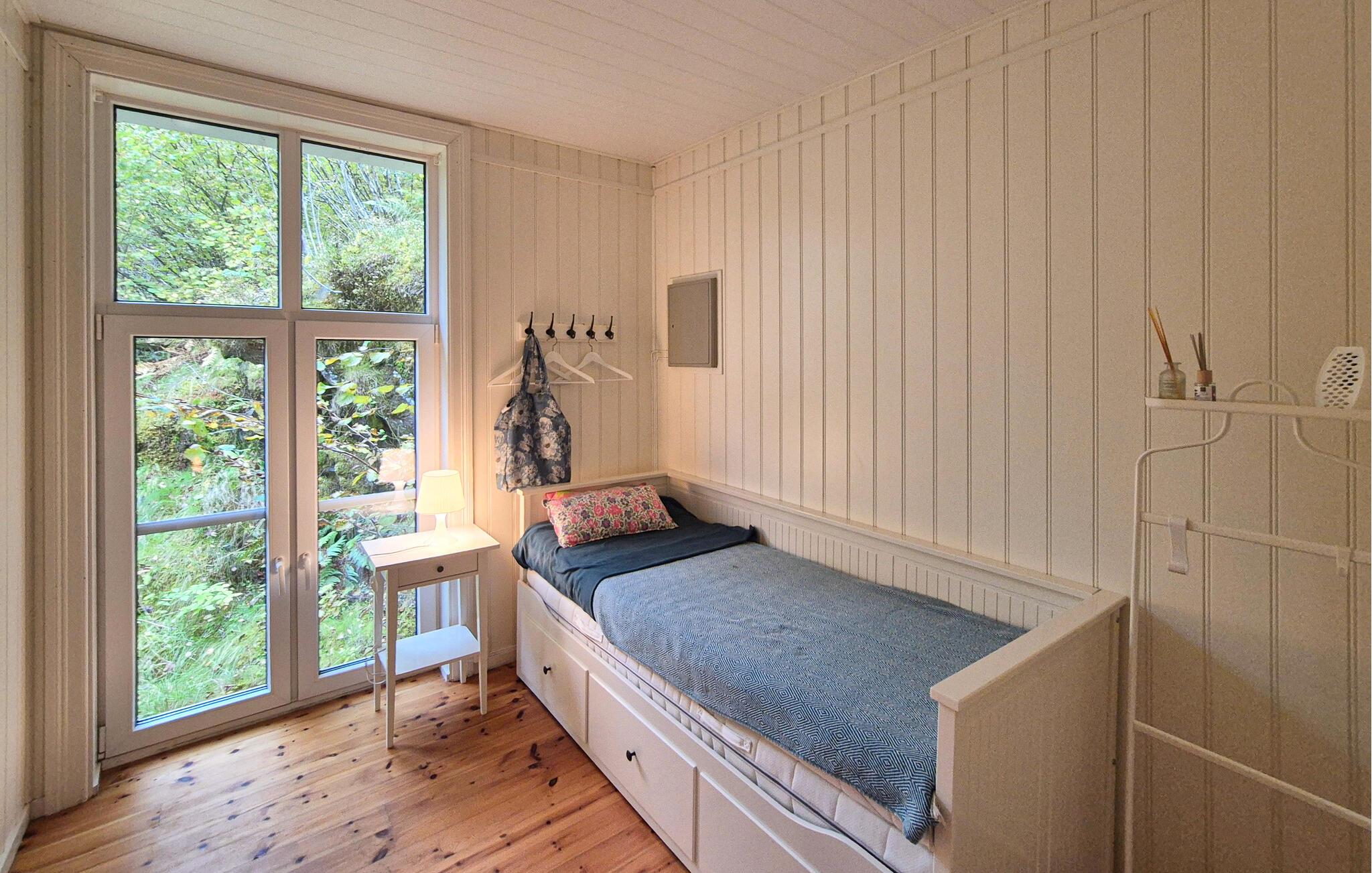 Detta kärleksfullt restaurerade semesterhus välkomnar dig med en varm och mysig atmosfär och skämmer bort dig med en förtrollande utsikt över fjorden tack vare de stora fönstren. Tillbringa trevliga kvällar med matlagning i det inbjudande köket och lyssna till det mjuka sprakandet från den norska spisen medan du njuter av harmoniska måltider. Gör dig bekväm i soffan efter en lång dag, planera dina aktiviteter eller fördjupa dig i en god bok på din favoritplats.