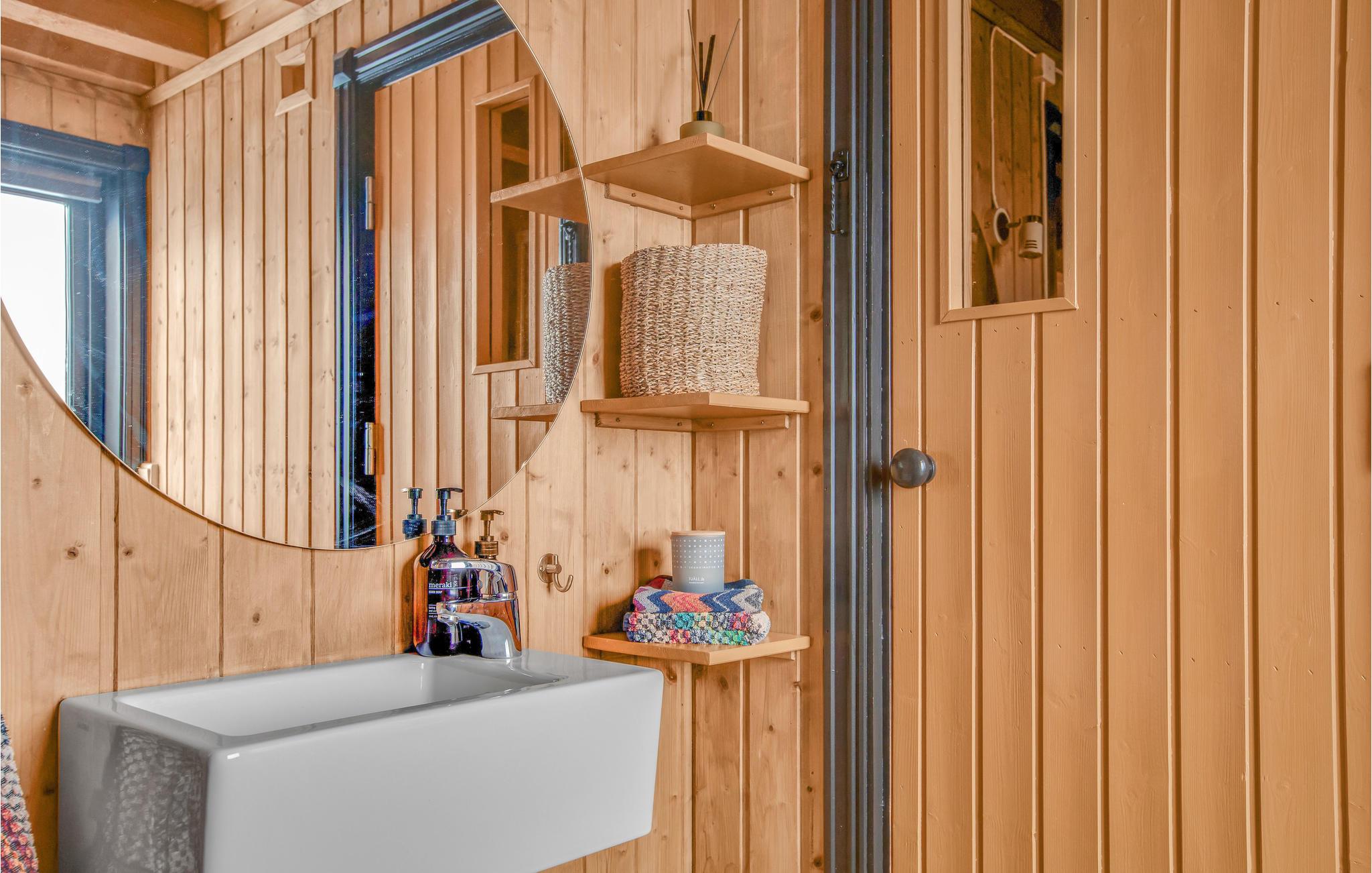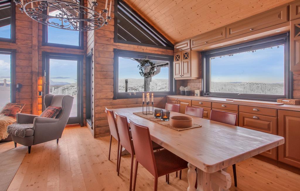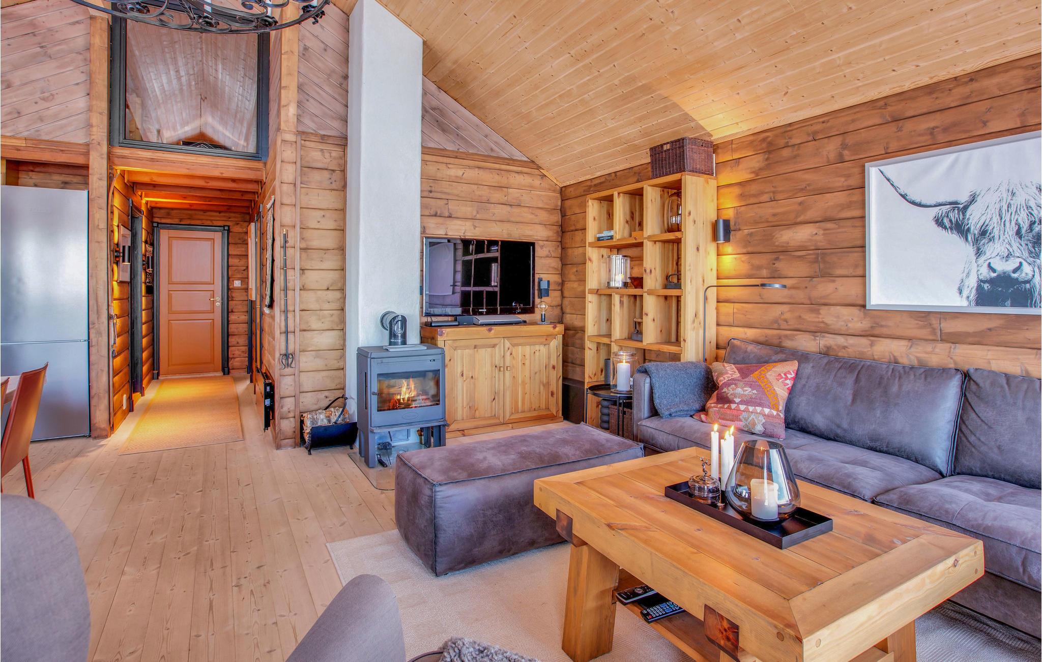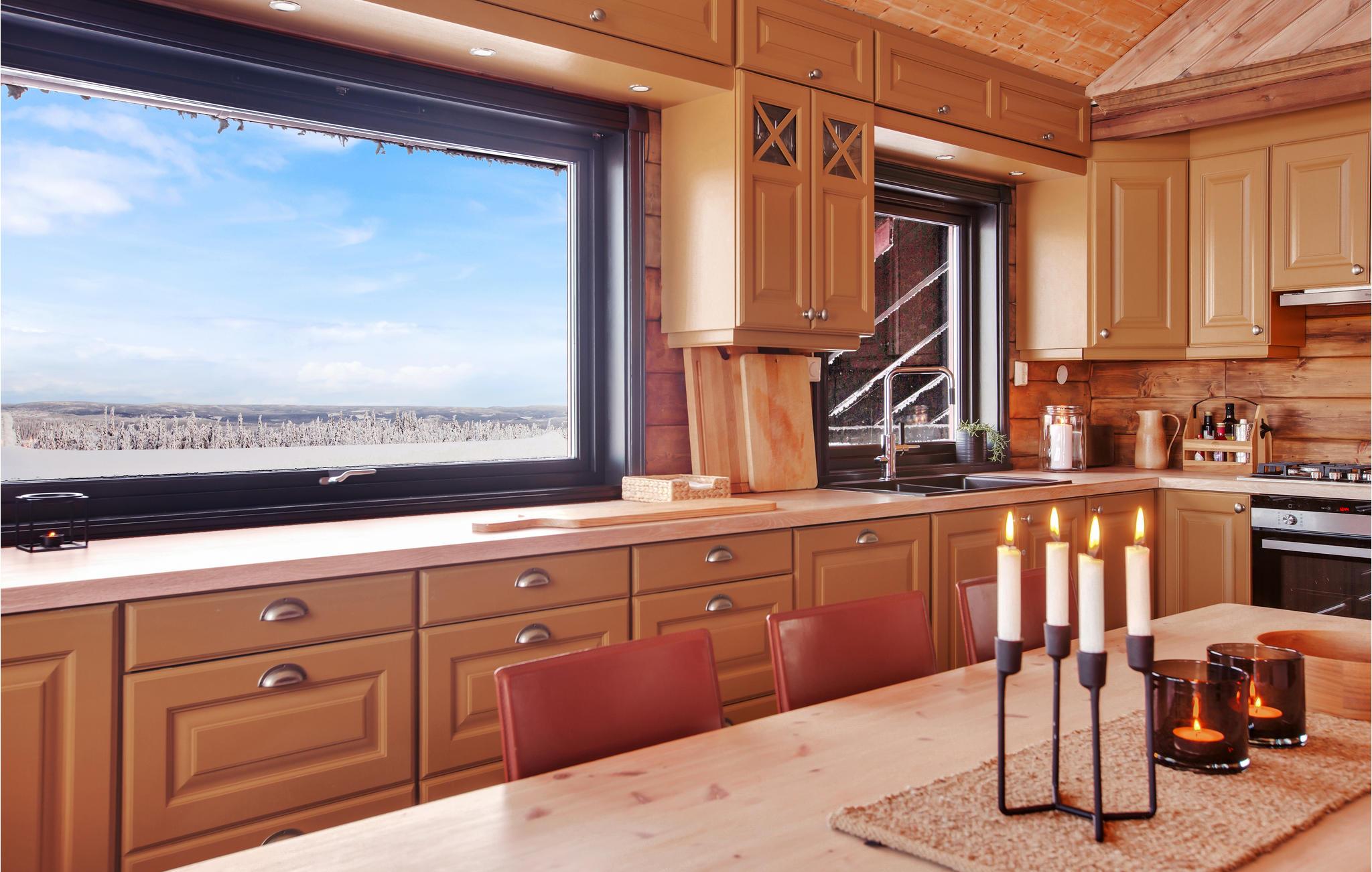 Se fram emot en underbar semester omgiven av natur med dina nära och kära. Huset ligger i slutet av en väg och är därför mycket lugnt. Med sin bekväma inredning erbjuder det de bästa förutsättningarna för en avkopplande semester, medan stora panoramafönster gör att du fullt ut kan njuta av den underbara utsikten över omgivningarna. Se fram emot gemensamma måltider vid det långa matbordet och mysiga kvällar i den rymliga soffan, skapa en särskilt mysig atmosfär med en eld i den vedeldade kaminen.