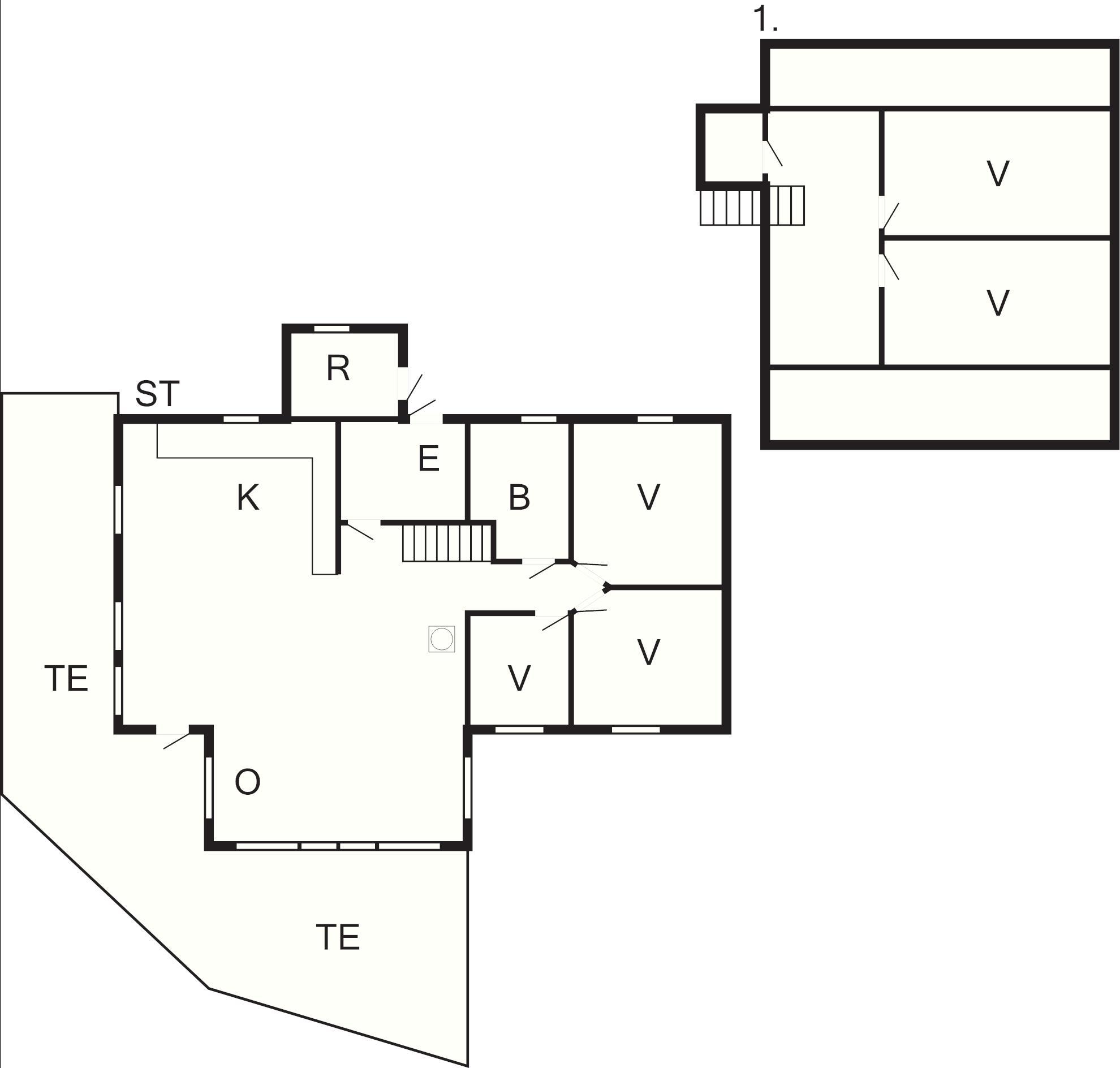 1 Vardagsrum: braskamin, TV, parabol