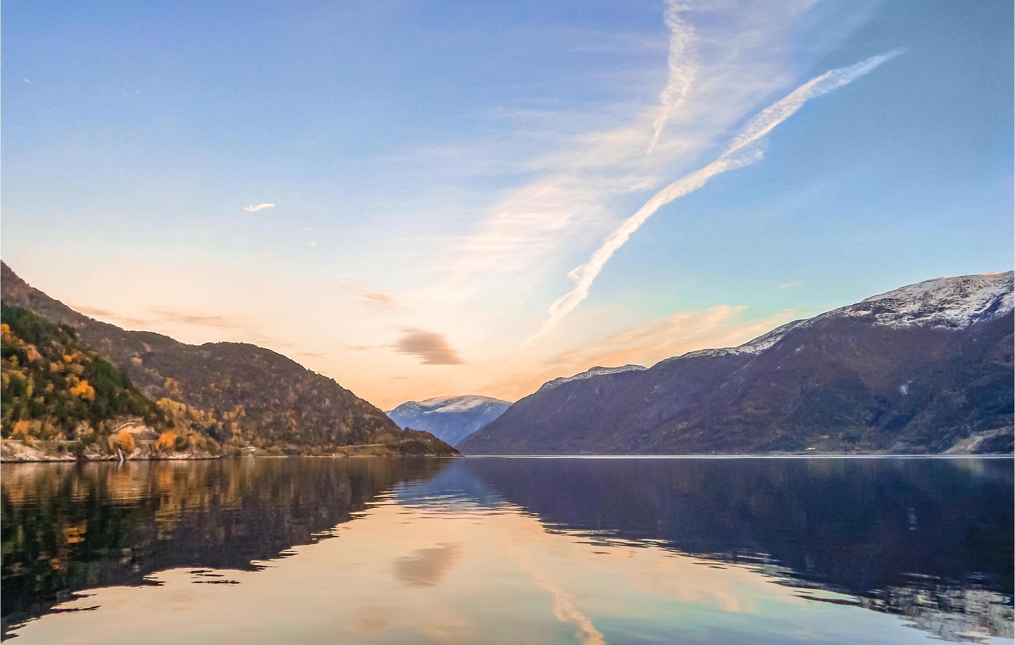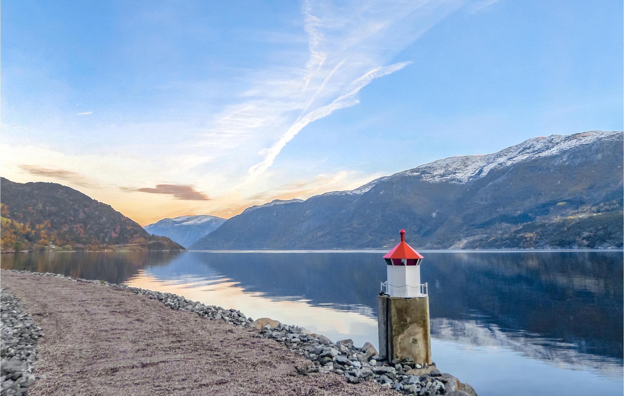 Med en fantastisk utsikt över fjorden erbjuder detta hus allt du behöver för en bekymmersfri semester. Ljusa rum, en braskamin och rustika möbler skapar en atmosfär som gör att du snabbt kommer att känna dig som hemma. Tillbringa mysiga eftermiddagar i soffan, luta dig tillbaka med ett doftande kaffe eller laga läckra måltider i köket.