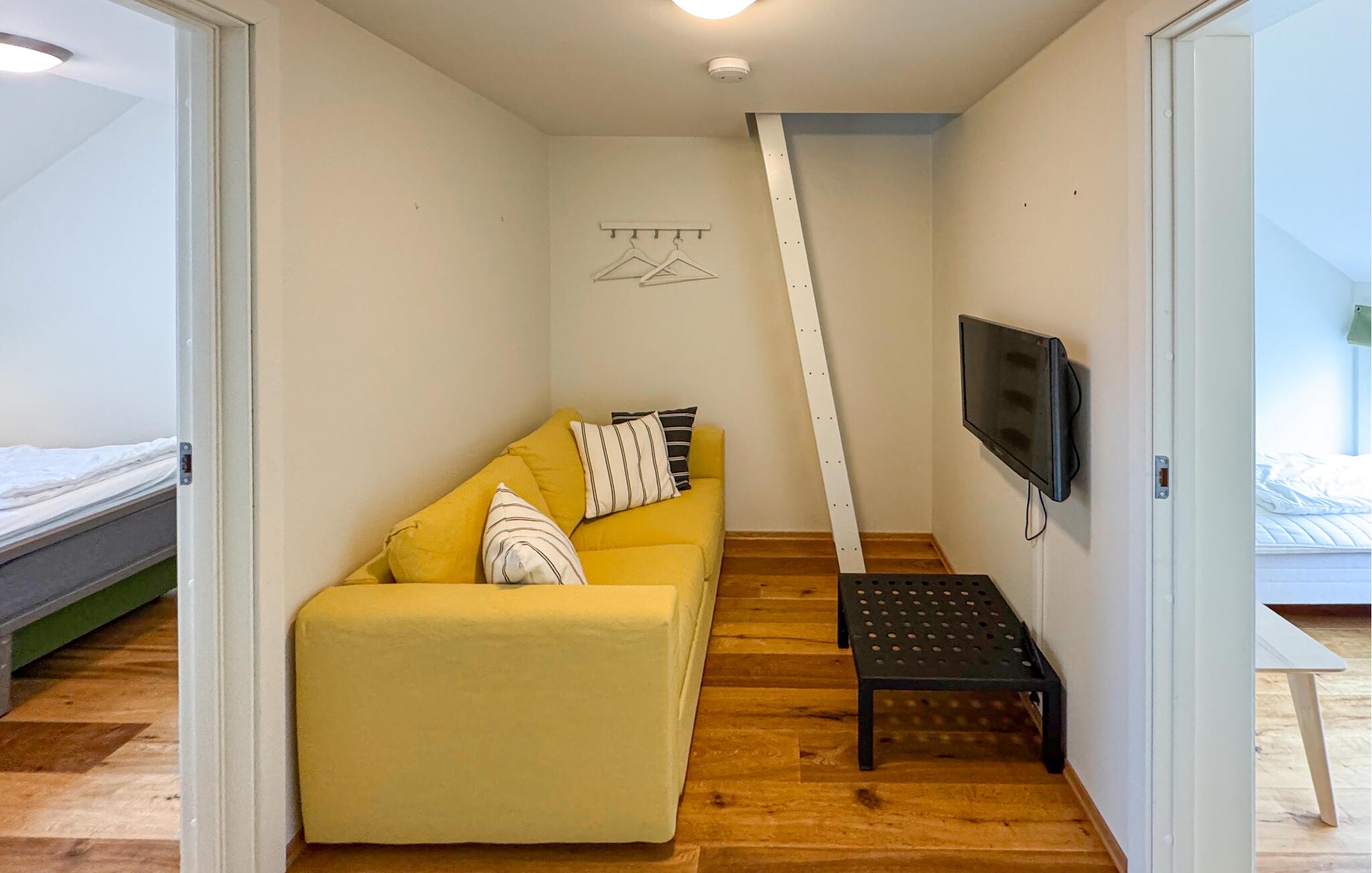 Denna luftiga och mysiga semesterlägenhet har ett skyddat läge vid hamnen på den vackra ön Ny-Hellesund och erbjuder dig ett bekvämt hem långt hemifrån under en lugn semester vid kusten. Tillaga läckra måltider efter en lång dag på vattnet och koppla av i soffan under mysiga spelkvällar med dina nära och kära.