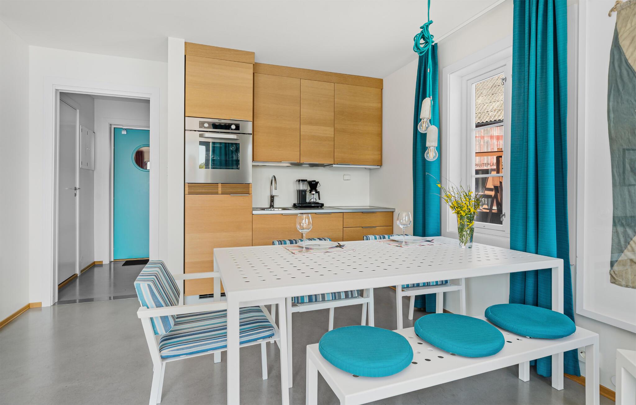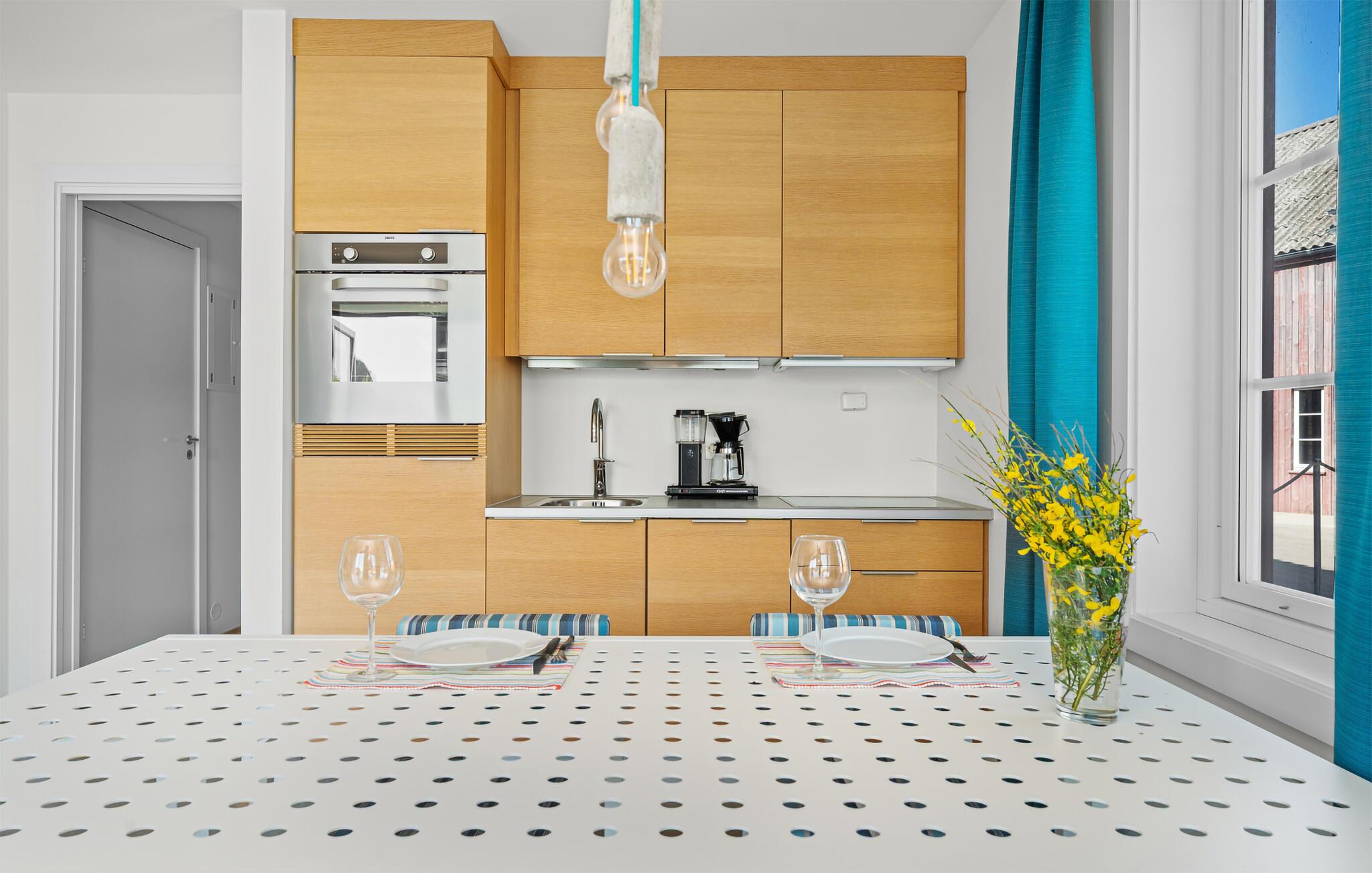 Ditt eleganta semesterhus, som ligger på en ö, erbjuder dig den perfekta miljön för en avkopplande semester vid kusten. Det lugna läget vid vattnet, den väl genomtänkta rumsindelningen och de ljusa rummen med en tydlig design garanterar en trevlig boendeupplevelse redan från början. Laga mat tillsammans i det funktionellt utformade köket och njut av dina måltider vid bordet med utsikt över det glittrande havet.