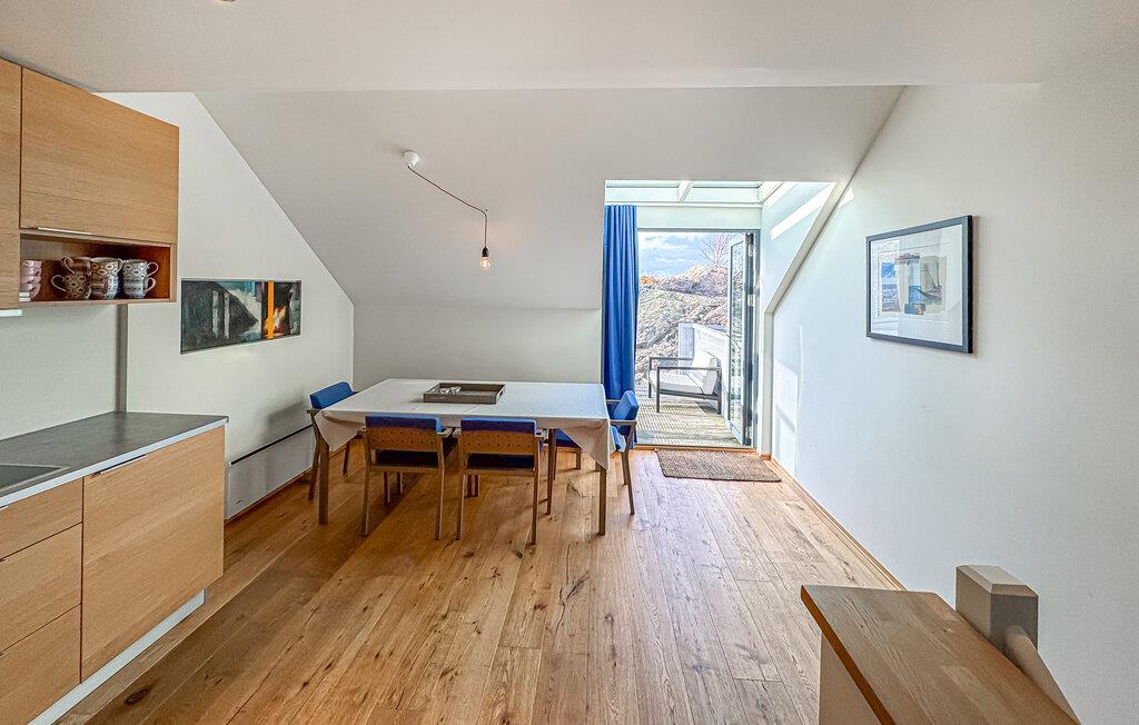 Denna ljusa och luftiga semesterlägenhet har ett skyddat läge vid hamnen på den vackra ön Ny-Hellesund och erbjuder dig ett bekvämt hem under en naturälskande semester vid havet. Laga energigivande maträtter i det vackra köket med öppen planlösning och se fram emot gemensamma måltider vid det ljusa matbordet. Ordna mysiga spelkvällar eller fördjupa dig i en spännande bok i den bekväma soffan.
