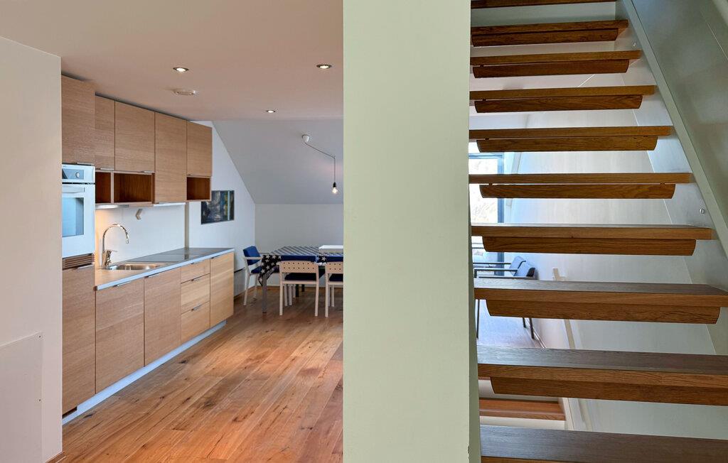 Din moderna och kärleksfullt inredda semesterlägenhet precis vid vattnet inbjuder dig att lämna vardagen bakom dig. Njut av den ljusa, vänliga atmosfären med naturliga material och tydlig design, som omedelbart garanterar avkoppling. Laga mat tillsammans i det vackra köket och avnjut era måltider vid det intilliggande matbordet. Vardagsrummet på övervåningen med bekväma sittplatser erbjuder utrymme för avkopplande timmar, läsning, spel eller ett glas vin på kvällen.
