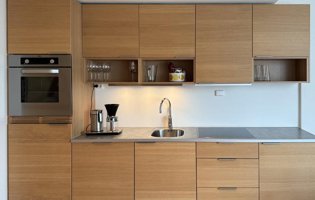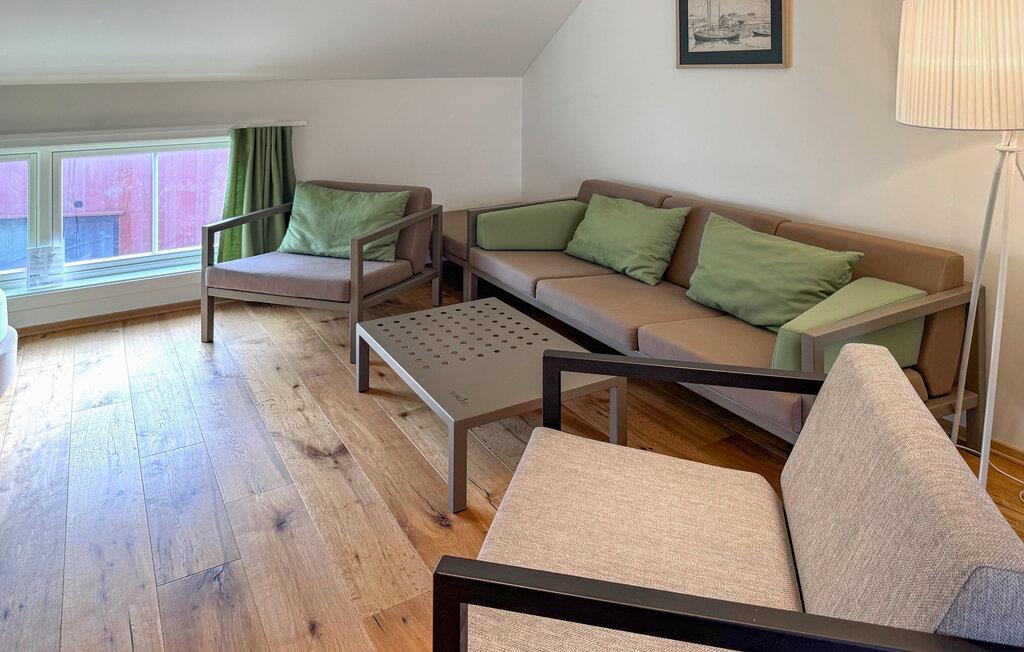 Denna ljusa och luftiga semesterlägenhet erbjuder dig möjlighet att komma bort från allt med dina nära och kära på den skyddade ön Ny-Hellesund. Naturmaterial och en harmonisk design skapar en trevlig atmosfär i den bekväma interiören. Se fram emot att laga mat tillsammans i det moderna köket och umgås vid det eleganta matbordet. Koppla av i soffan, ägna dig åt en spelkväll eller ta dig tid för ett gott samtal över ett glas vin.