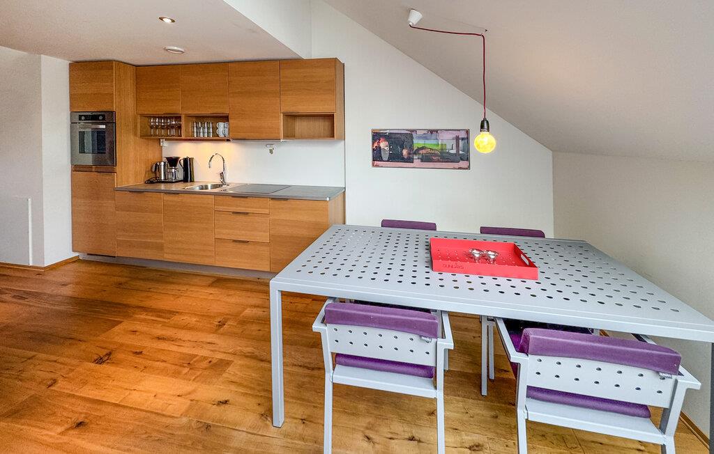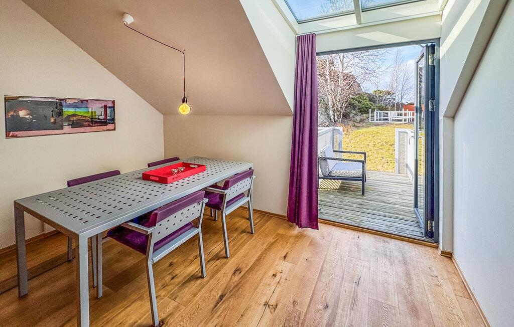 Denna ljusa och luftiga lägenhet ger dig möjlighet att komma bort från allt med dina nära och kära på den skyddade ön Ny-Hellesund. Levande färger och en harmonisk design skapar en trevlig atmosfär i den inbjudande interiören. Se fram emot att laga mat tillsammans i det öppna köket och umgås över måltiderna i en vacker miljö. Koppla av i soffan, njut av en kväll med spel eller ta dig tid för ett gott samtal över ett glas vin.