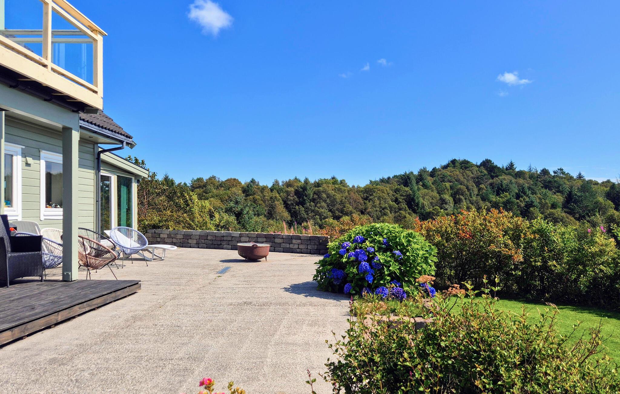 Njut av din semester i ett rymligt semesterhus med utsikt över fjorden och det mjuka landskapet.