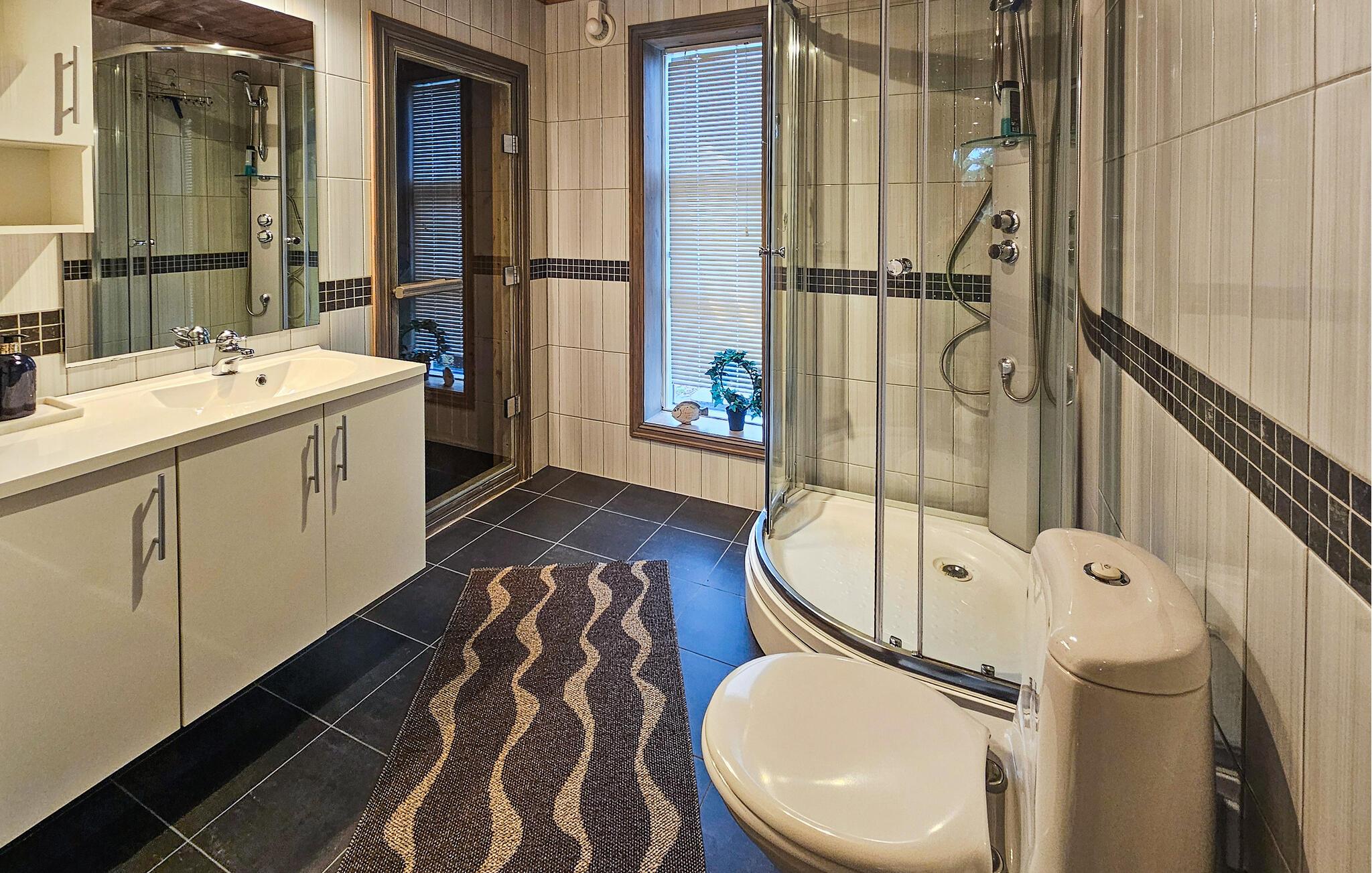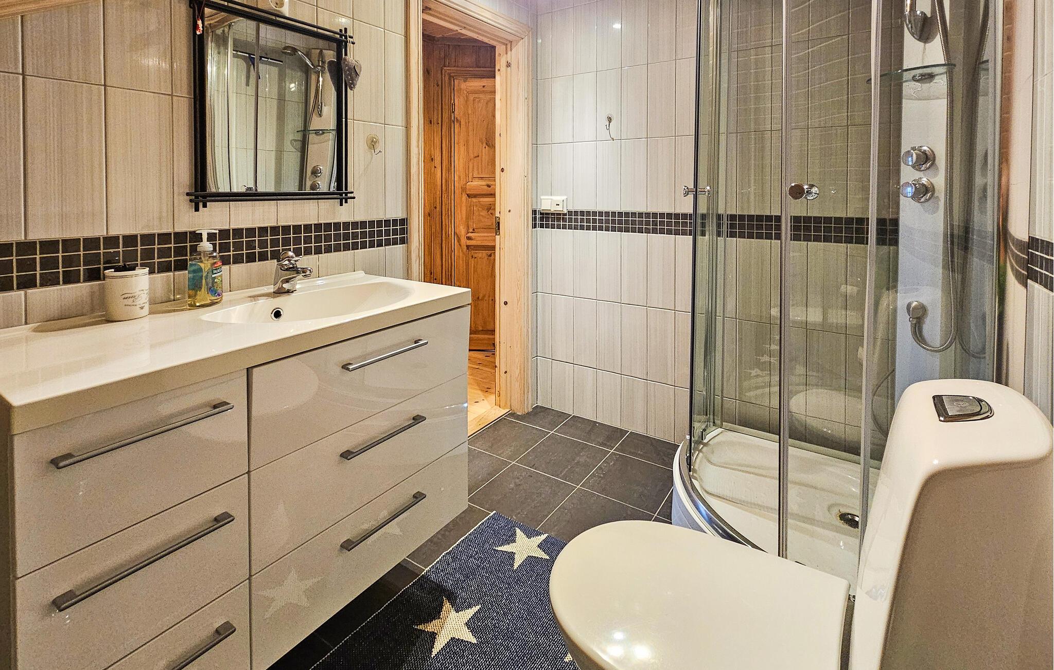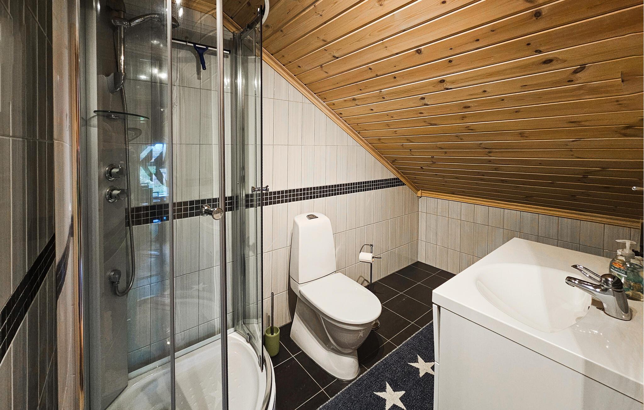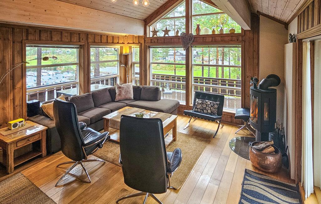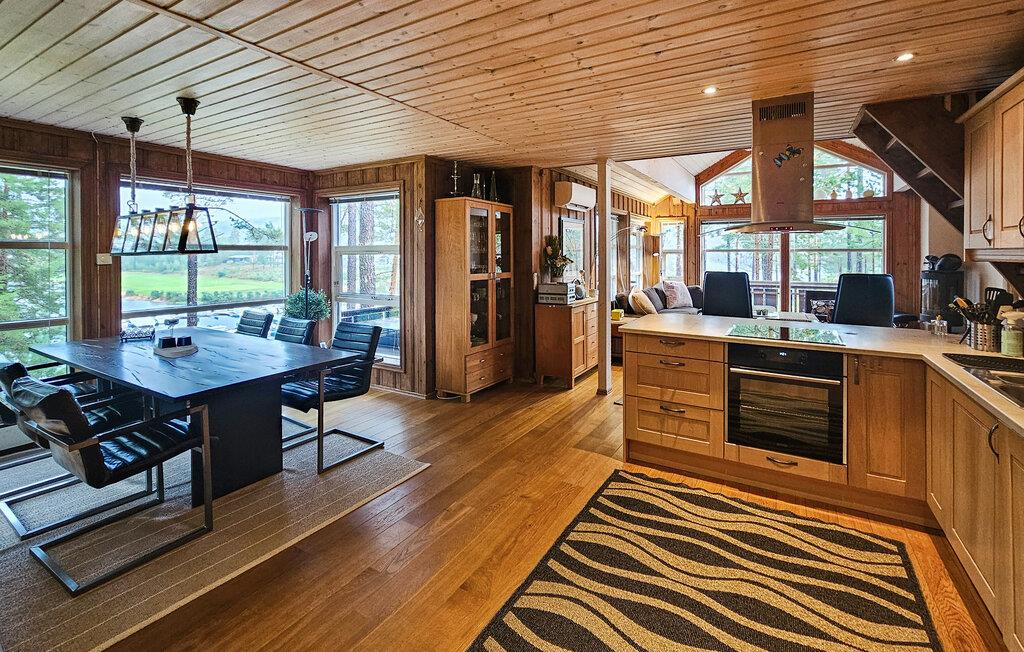 Stugan är smakfullt inredd, med vackra färger och stora fönster som släpper in mycket ljus. Vid matbordet kan du njuta av den vackra utsikten över omgivningarna samt av läckra måltider och göra upp en plan för de kommande dagarna. På första våningen finns ett vardagsrum där du kan titta på tv samt se ut över Nisser och båthamnen.