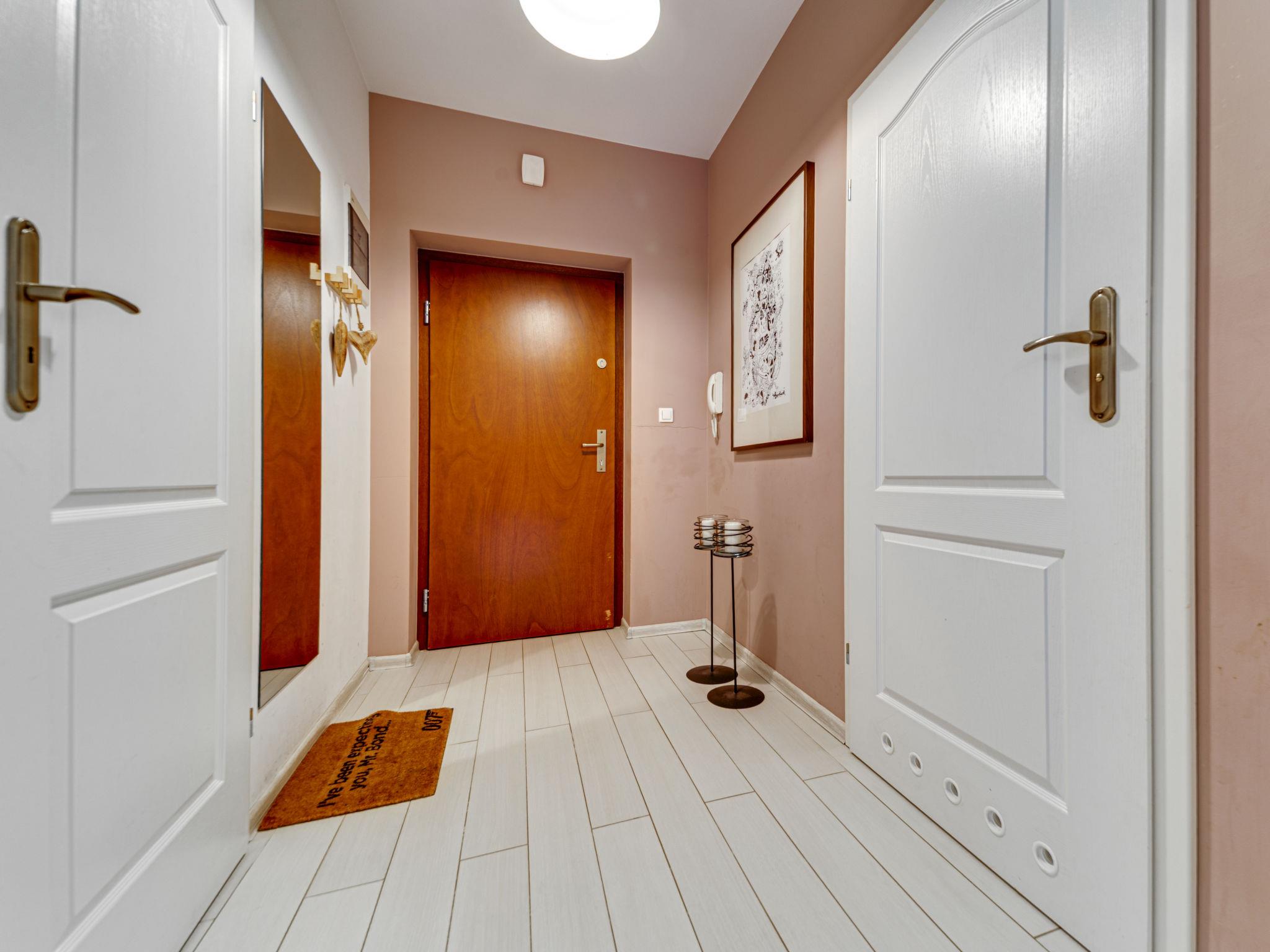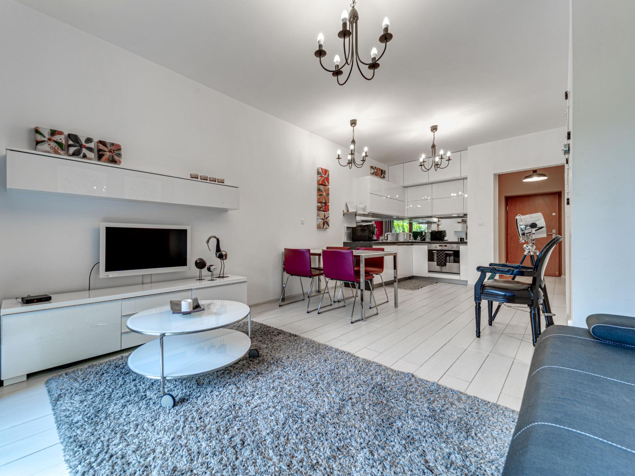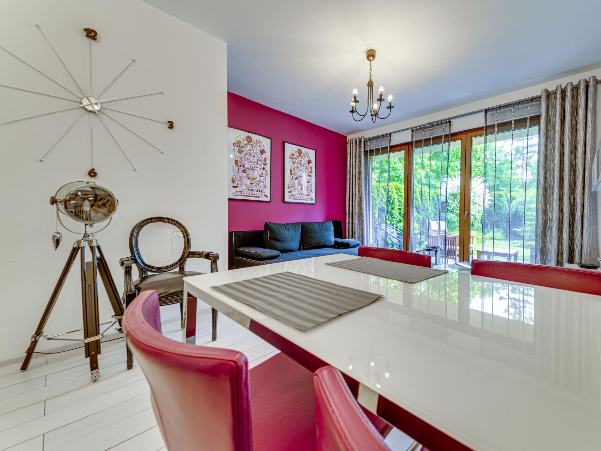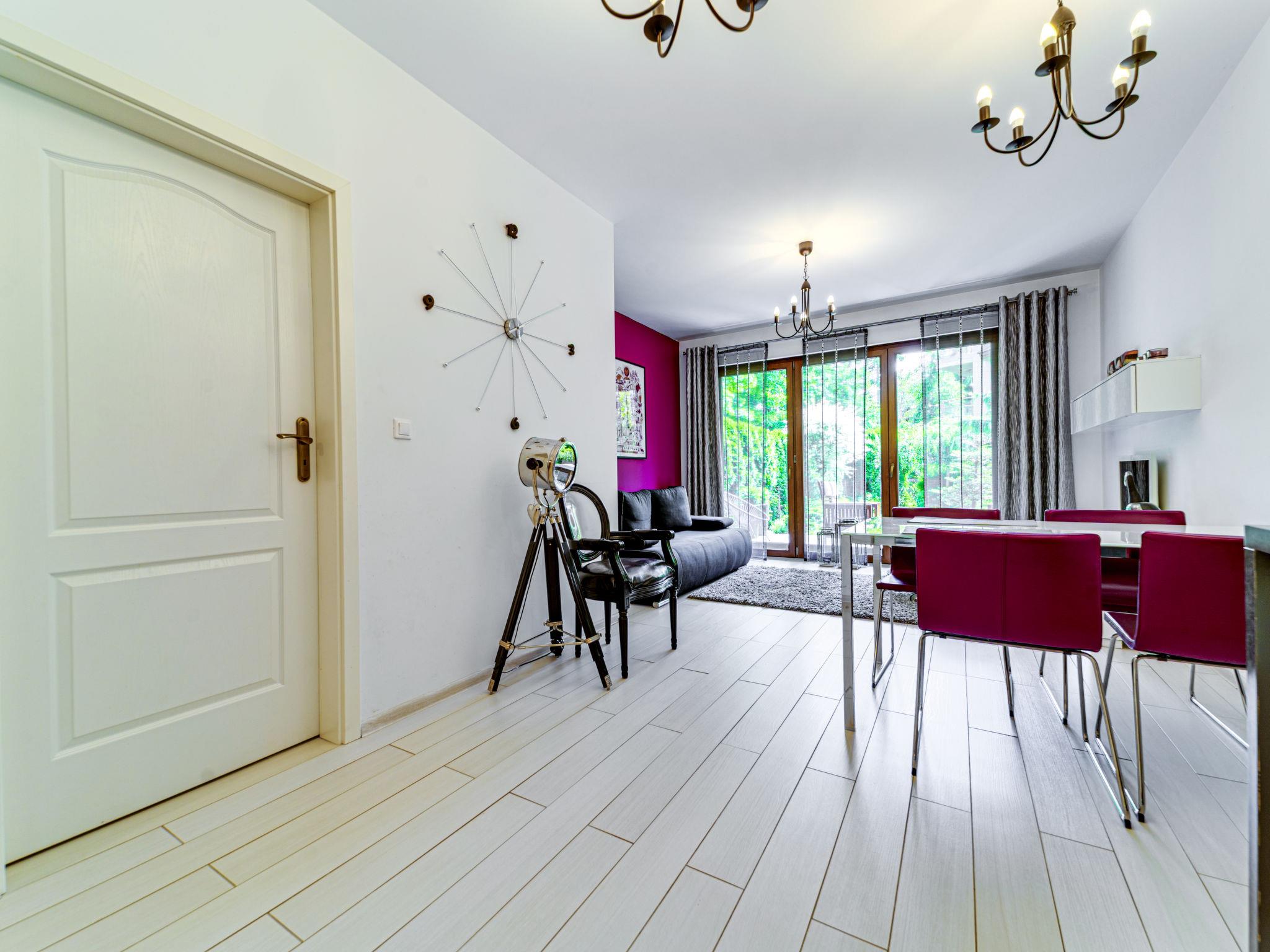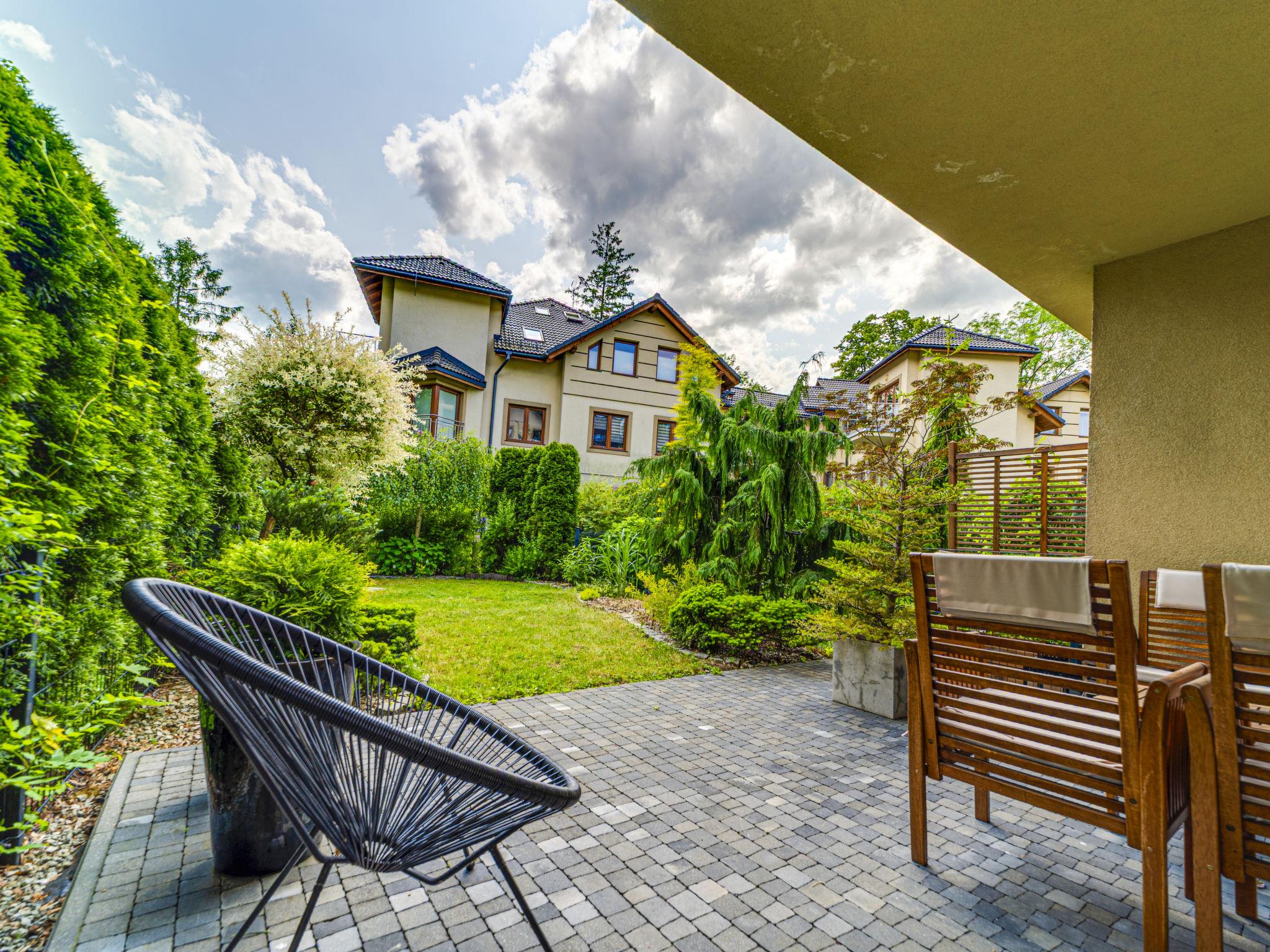 "Apartament Olszówka", 2-room apartment 50 m2, on the ground floor. Comfortable and modern furnishings: open living/dining room with 1 double sofabed (160 cm, length 220 cm), flat screen. Exit to the terrace. 1 room 12 m2 with 1 french bed (140 cm, length 220 cm). Open kitchen (oven, dishwasher, 4 induction hot plates, microwave, electric coffee machine). Shower/WC. Terrace, small garden 21 m2. Terrace furniture. Facilities: washing machine, dryer, iron, hair dryer. Internet (WiFi, free). Garage. Please note: 1 small pet/ dog allowed. TV only PL. Smoke alarm. Available: ironing board, wardrobe.