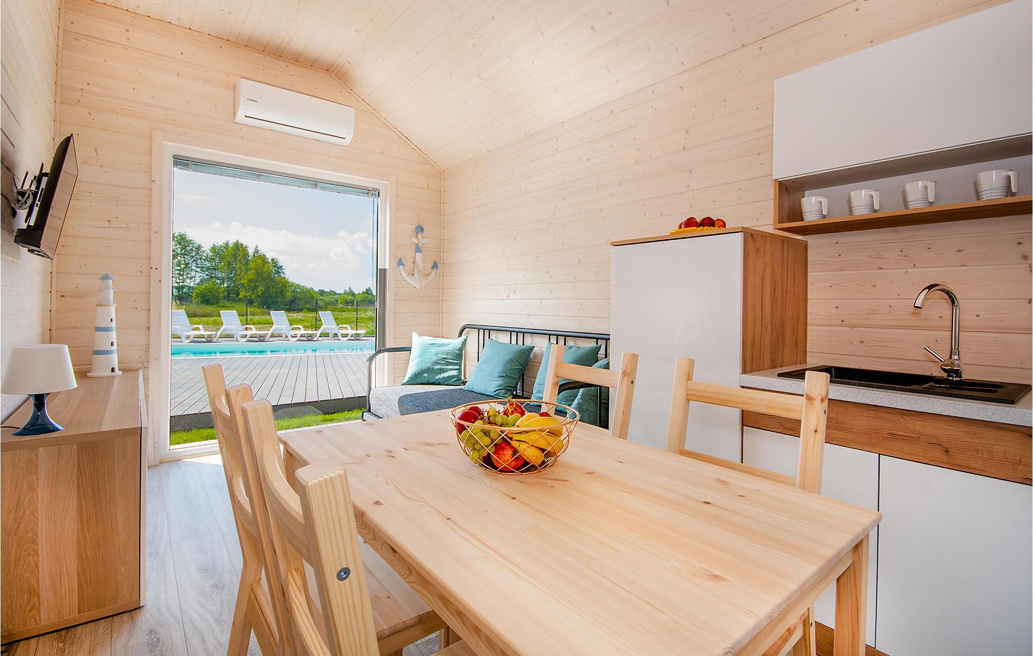 I semesterorten Bobolin, en del av spastaden Dabki, hittar du detta ljusa hus som erbjuder enkel komfort. Kom hit med din familj och känn dig som hemma från dag ett. Från vardagsrummet har du tillgång till det fantastiska poolområdet, där du kan lata dig hela dagen. De små kan tumla runt på lekplatsen. På kvällen, efter aktiviteter och utflykter, finns det inget bättre än att mysa på terrassen.