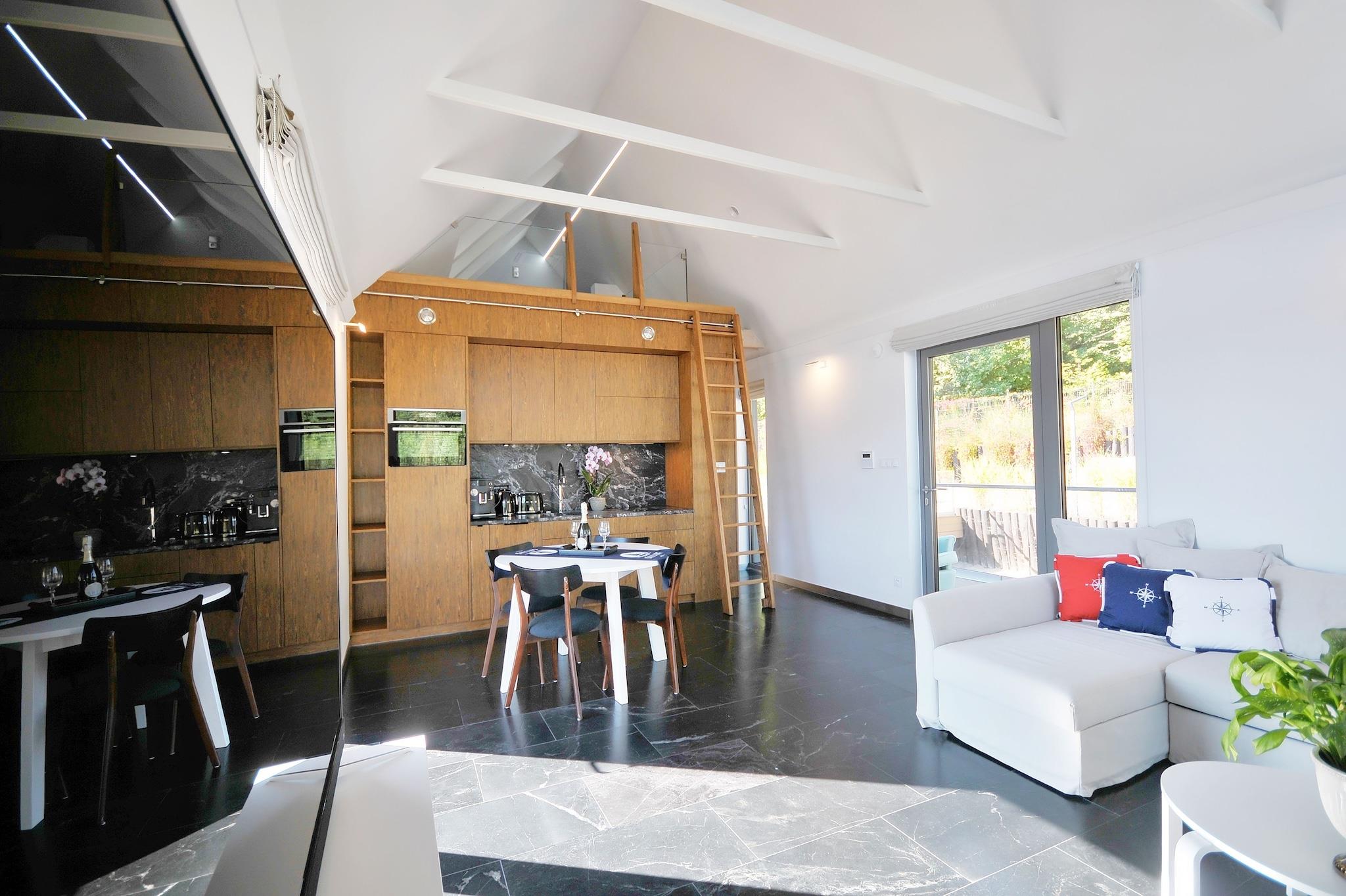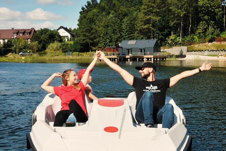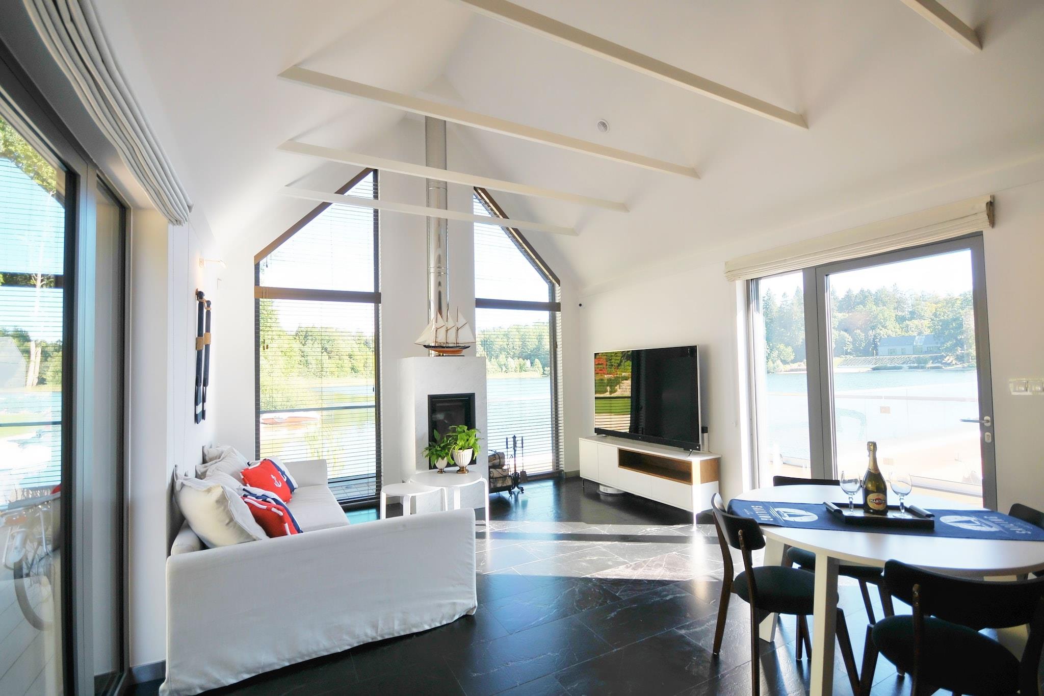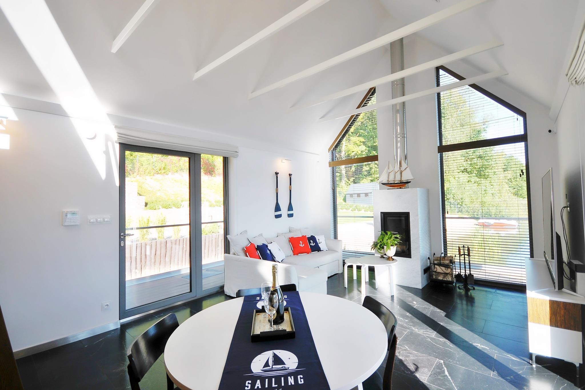 Ett unikt semesterhus byggt direkt vid sjöstranden, på ett unikt läge. Gästerna har exklusiv tillgång till en privat sjö (bad och fiske finns tillgängligt utan extra kostnad), en privat sandstrand och en stor, inhägnad tomt. Omgivningen är lugn och tyst. Staden Bytów, med sina många butiker, restauranger och kaféer, ligger cirka 2 km bort. Detta bekväma semesterhus är byggt på pålar vid en privat sjö (precis vid stranden). Det består av ett rymligt vardagsrum (bäddsoffa för två personer, TV, öppen spis och matbord), ett välutrustat kök, ett sovrum med dubbelsäng och ett badrum med dusch. Ett ytterligare sovrum med dubbelsäng ligger på mezzaninen. Huset har en stor, delvis täckt terrass med trädgårdsmöbler och en pittoresk utsikt över sjön. Tvättmaskin och torktumlare finns i ett separat tvättstuga. Luftkonditionering, elektrisk golvvärme och öppen spis finns tillgängliga (ved ingår i priset). Trådlöst internet finns tillgängligt. Den stora, välskötta privata fastigheten har en sandstrand (med trampbåt, ståpaddelbräda och många uppblåsbara vattenleksaker), en lekplats, en gasgrill och säker parkering. Två elcyklar finns också tillgängliga för gäster (gratis) och grundläggande fiskeutrustning. I priset ingår: sängkläder, handdukar, el, vatten, värme, luftkonditionering, ved, två elcyklar, trampbåt, ståpaddelbräda, hundar tillåtna (max 2), internet och parkering. Barnstol och spjälsäng finns tillgängliga på begäran (förhandsbokning krävs). Bytów-området är hjärtat av det pittoreska Kasjubien och erbjuder otaliga möjligheter till aktiv rekreation: kajakpaddling, cykling och många historiska platser (inklusive det tyska slottet i Bytów). Det finns ingen chans att du kommer att bli uttråkad här.