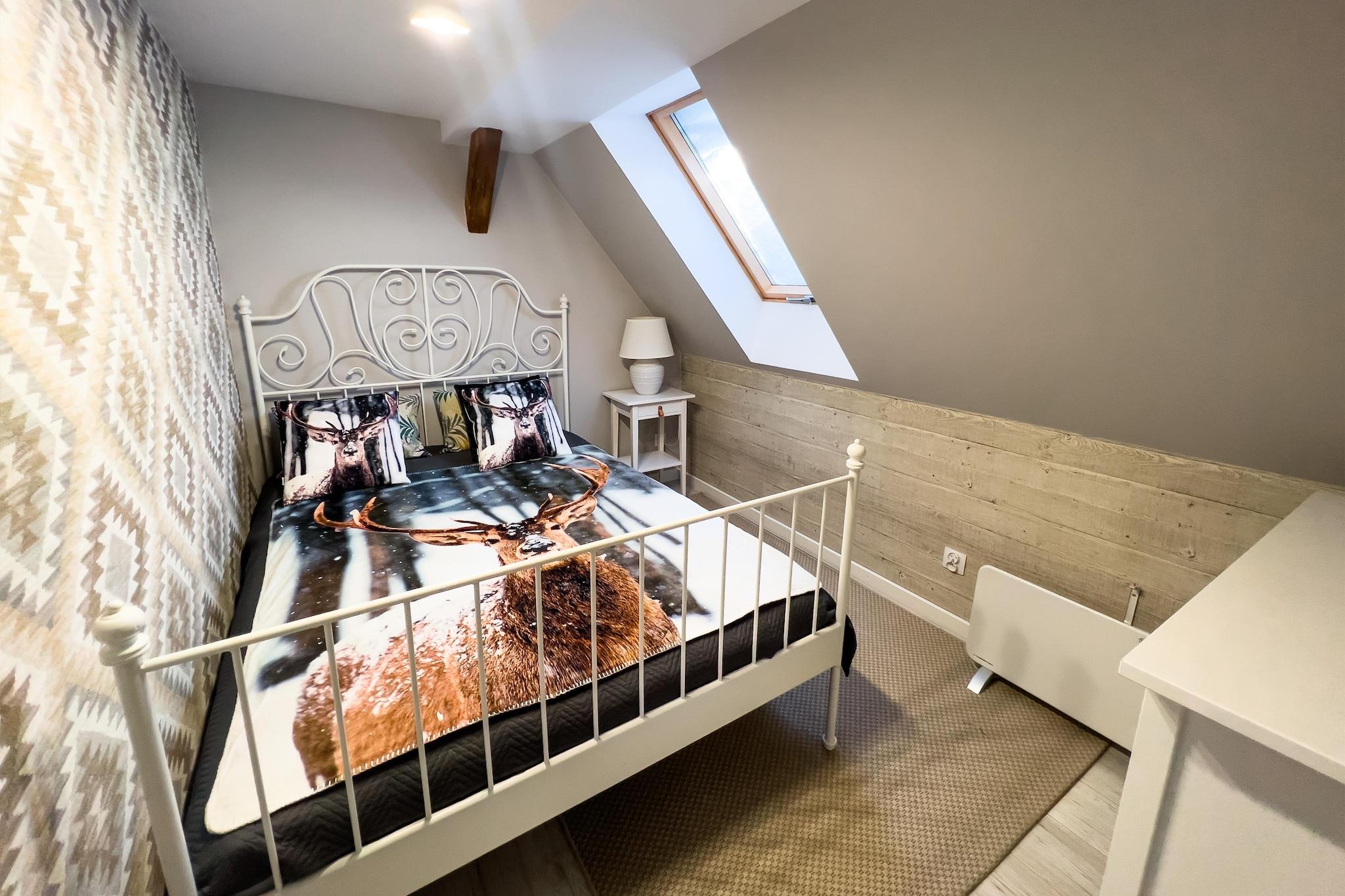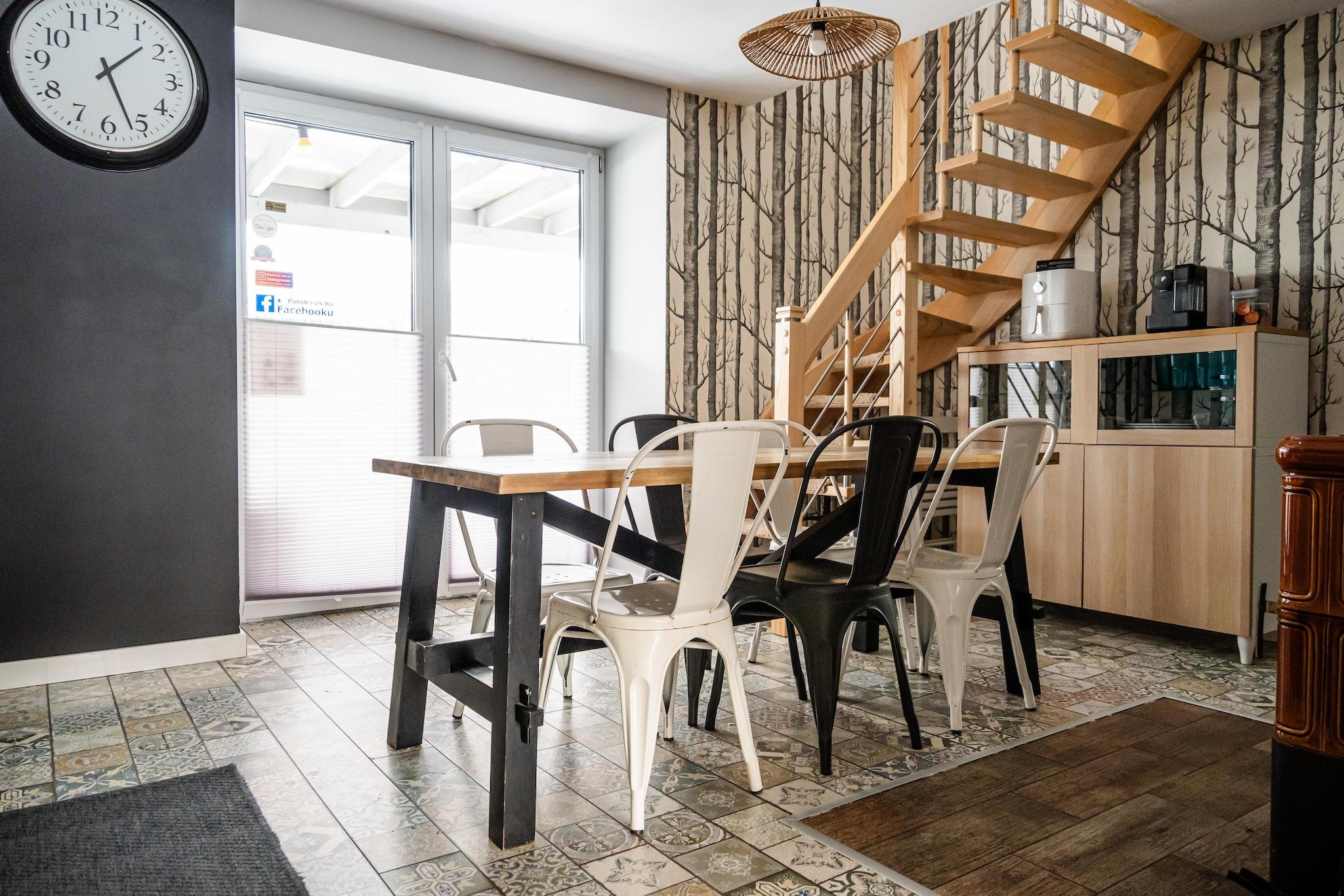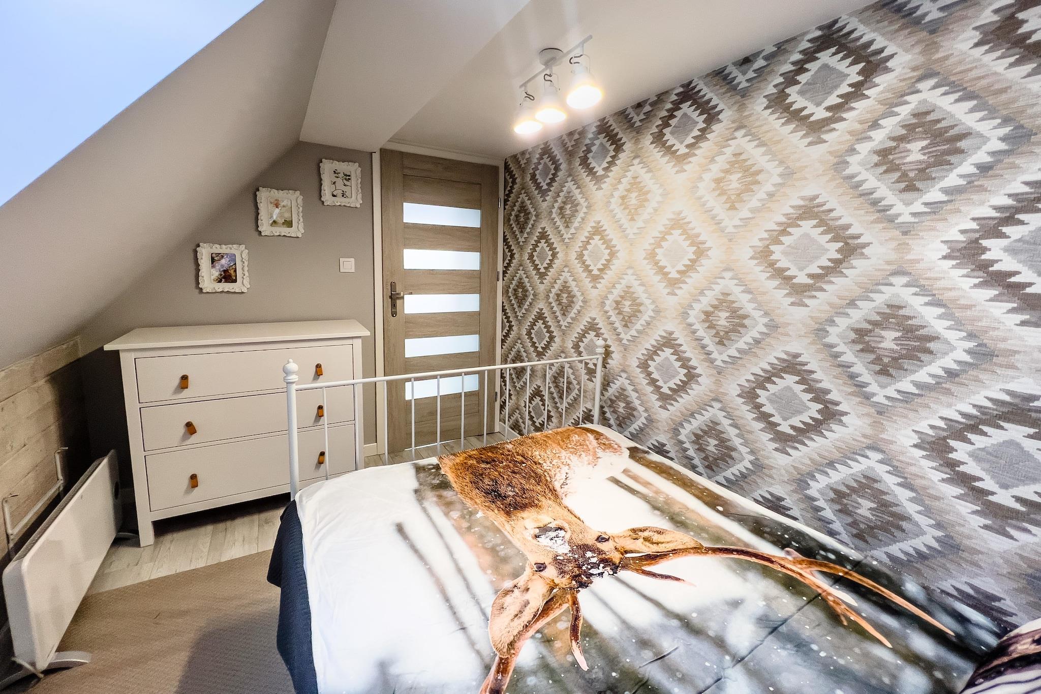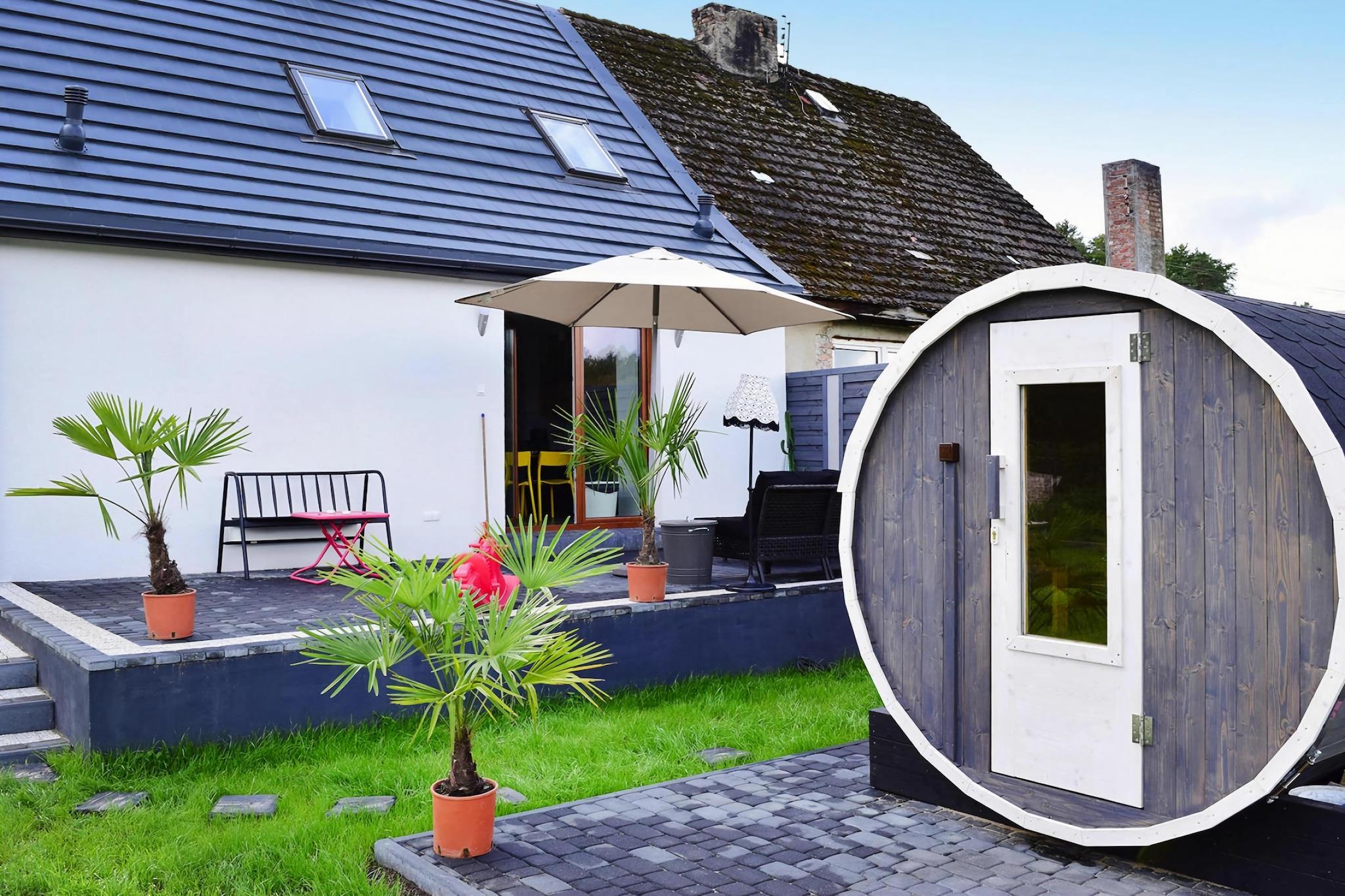 Ett bekvämt semesterhus med exceptionella fritidsfaciliteter (bastu, sommarpool), i ett vackert läge – en liten sommarort vid havet, direkt intill sjön Choczewskie (300 meter från huset). Detta stora tvåvåningshus väntar på dig på en privat, inhägnad tomt. På bottenvåningen hittar du ett vardagsrum (med TV och bäddsoffa för två personer), en matsal med öppen spis, ansluten till ett välutrustat kök (inklusive ugn, diskmaskin, kaffebryggare och tvättmaskin), ett sovrum med dubbelsäng och ett badrum med dusch. På övervåningen finns ytterligare tre separata sovrum. Huset har en täckt terrass med trädgårdsmöbler, solstolar och grillmöjligheter. Elvärme och öppen spis finns (ved ingår i priset). Trådlöst internet finns tillgängligt. På den välskötta tomten (för exklusivt bruk av gäster) finns en sommarpool (öppen från 1 maj till 15 september), en bastu och säker parkering. Ingår i priset: sängkläder, handdukar, el, vatten, värme, ved, bastu, sommarpool (1 maj – 15 september), internet, parkering och slutstädning. Spjälsäng och barnstol finns tillgängliga på begäran. Omgivningarna erbjuder ostörd avkoppling i kontakt med naturen. Det är värt att cykla (eller till och med promenera) runt den närliggande sjön och besöka flera charmiga sandstränder. Sjön är mycket ren och inbjuder till bad och fisk (gädda, ål, sutare). Du kan också besöka den större sjön, Zarnowieckie-sjön, där du kan hyra vattensportutrustning. Stranden vid havet ligger 12 km bort. Härlig avkoppling garanteras, eftersom det inte finns några folkmassor även under högsäsong. Och utsikten är enastående, särskilt i området kring Lubiatowskie-dynerna.