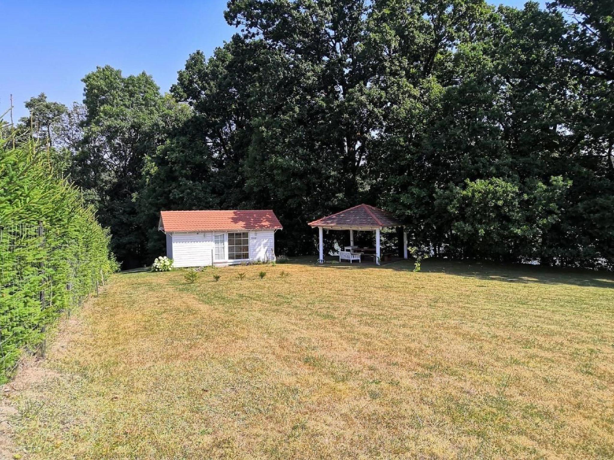 The outside of the property is a large, fenced plot with direct access to the lake, a fire pit and a covered pavilion. This is the perfect place to spend a day relaxing reading a book in a hammock, sharing the space with nothing but nature. A private jetty allows easy access to the lake, providing even more opportunities to spend time in nature.