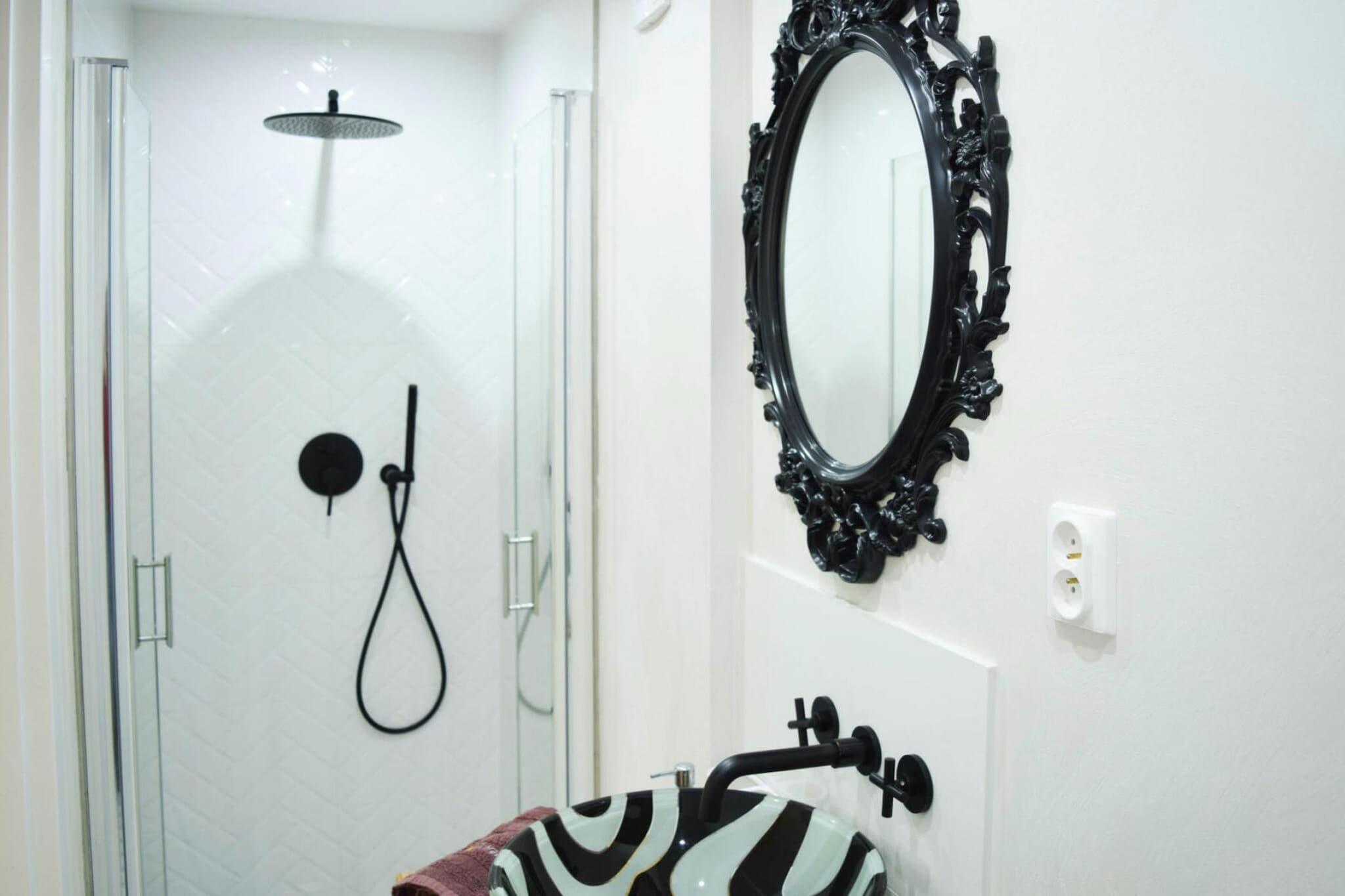 Bottenvåningen: (öppet kök(Kokplattor(Spis med 4 kokplattor, keramisk), vattenkokare, kaffebryggare, ugn, grill, mikrovågsugn, diskmaskin, kyl och frys), Vardags- och sovrum(bäddsoffa, TV(satellit)), badrum(dusch, toalett )) På våning 1: (sovrum(tillgängligt via anslutande rum)(dubbelsäng, bäddsoffa), sovrum(dubbelsäng), badrum(badkar, toalett )) Vindsvåning: (sovrum(via en ganska brant trappa)(dubbelsäng)) torktumlare, badtunna, bastu, tvättmaskin, värme(golvvärme), terrass(tak), trädgårdsmöbler, swimmingpool(privat), barnstol, baby crib(free)