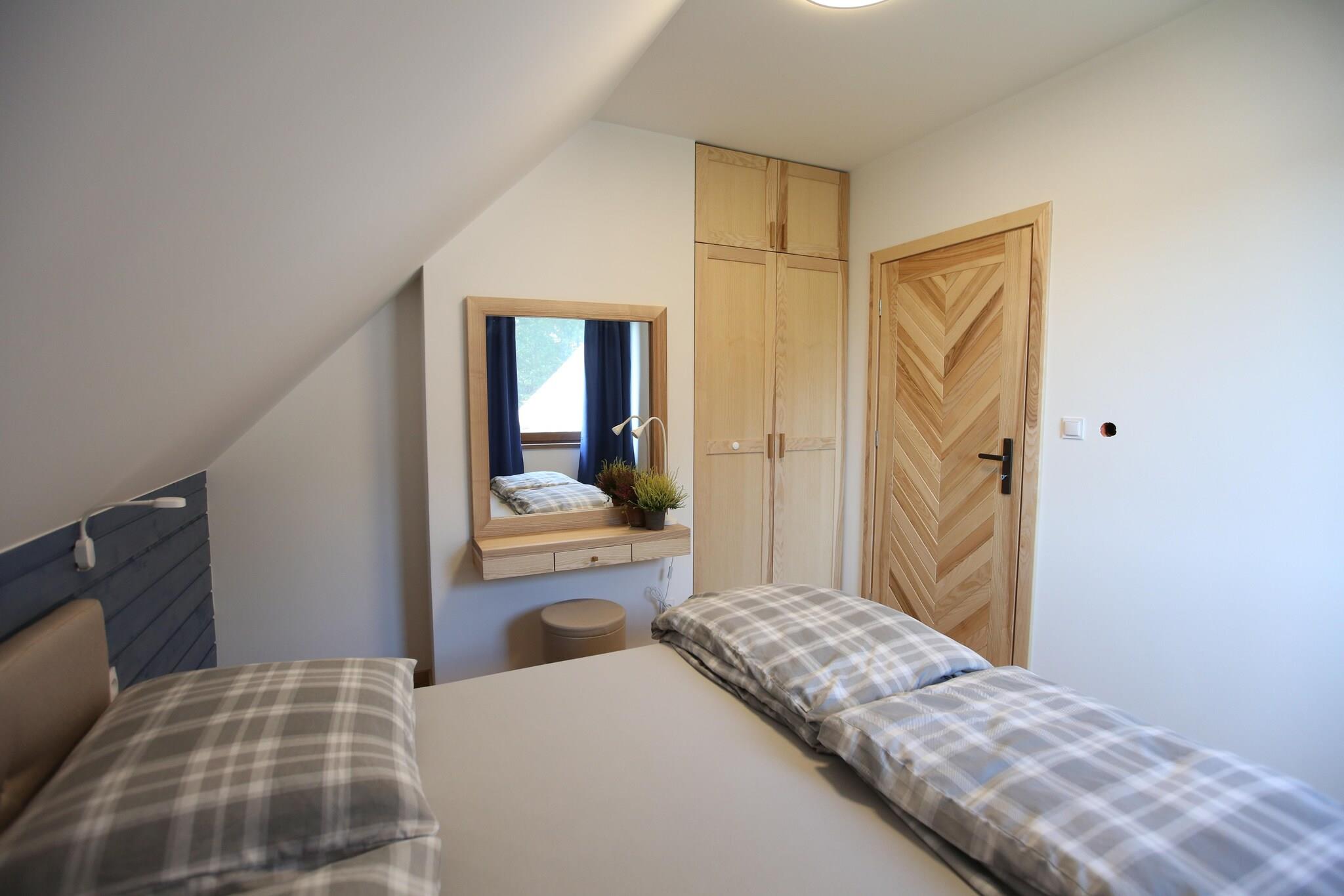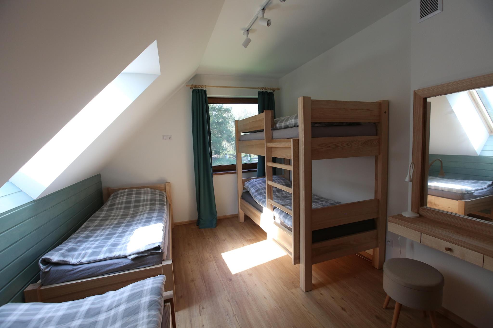 Nya semesterbostäder året runt i hjärtat av Kasjubien, med utsikt över en sjö i byn Dabie nära Bytów (Pommerns vojvodskap). Detta är den perfekta platsen att koppla av både sommar och vinter, och erbjuder komfort och kontakt med vacker natur – skogar och sjöar. Vårt erbjudande inkluderar: Bekväma bostäder med en yta på cirka 100 m², Övervåning: 2 dubbelrum (föräldrarnas sovrum), 1 fyrbäddsrum med våningssäng (en stor attraktion för barn), Badrum med dusch, tvättmaskin, hårtork och strykjärn, Bottenvåning: rymligt vardagsrum med öppen spis, kök med matplats och extra badrum, Täckt terrass med trädgårdsmöbler. Köket är fullt utrustat med diskmaskin, mikrovågsugn, ugn, kylskåp, induktionshäll och en uppsättning tallrikar och köksredskap. För att komplettera din avkoppling finns följande tillgängliga på plats: - bastu (betalning endast för el enligt mätaravläsning), - bubbelpool med utsikt över sjön (550 PLN per vistelse). Golvvärme och en pelletskamin ger värme året runt, medan den täckta terrassen är den perfekta platsen att koppla av utomhus. Det är den perfekta platsen för en avkopplande semester, kvällar tillsammans vid brasan eller grillning på terrassen. De omgivande skogarna frestar med sina frukter och svampar, och för de som uppskattar passiv avkoppling erbjuder vi ett bad i trädgårdens bubbelpool och en bastu.
