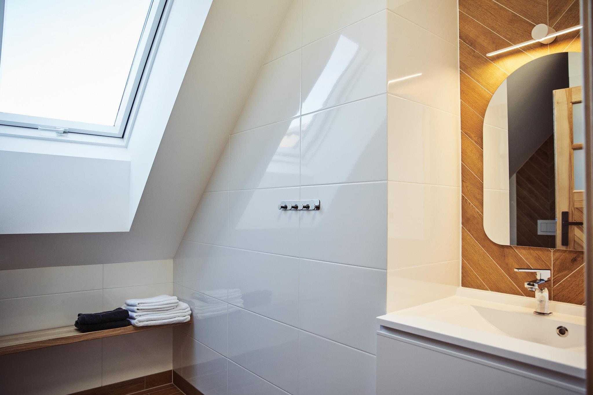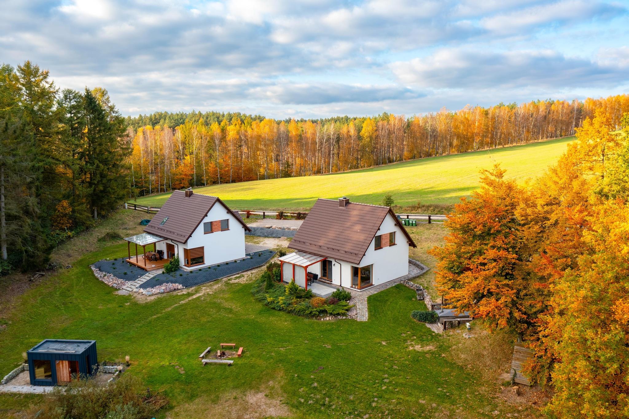 Nya semesterbostäder året runt i hjärtat av Kasjubien, med utsikt över en sjö i byn Dabie, nära Bytów (Pommerns vojvodskap). Detta är den perfekta platsen att koppla av både sommar och vinter, och erbjuder komfort och kontakt med vacker natur – skogar och sjöar. Vårt erbjudande inkluderar: Bekväma bostäder med en yta på cirka 100 m². Övervåning: 2 dubbelrum (föräldrarnas sovrum), 1 fyrbäddsrum med våningssäng (en barnlek). Badrum med dusch, tvättmaskin, hårtork och strykjärn. Nedervåning: ett rymligt vardagsrum med öppen spis, ett kök med matplats och ett extra badrum. En täckt terrass med trädgårdsmöbler finns tillgänglig. Köket är fullt utrustat med diskmaskin, mikrovågsugn, ugn, kylskåp, induktionshäll och en uppsättning tallrikar och kastruller. För att komplettera din avkoppling kan du njuta av: en bastu (betalning endast för el enligt mätaravläsning), en bubbelpool med sjöutsikt (550 PLN per vistelse). Golvvärme och en pelletskamin ger värme året runt, och den täckta terrassen är den perfekta platsen att koppla av utomhus. Det är den perfekta platsen för en avkopplande semester, kvällar tillsammans vid elden eller grillning på terrassen. De omgivande skogarna frestar med sina frukter och svampar, och för de som gillar passiv avkoppling erbjuder vi ett dopp i trädgårdsbadet och en bastu.