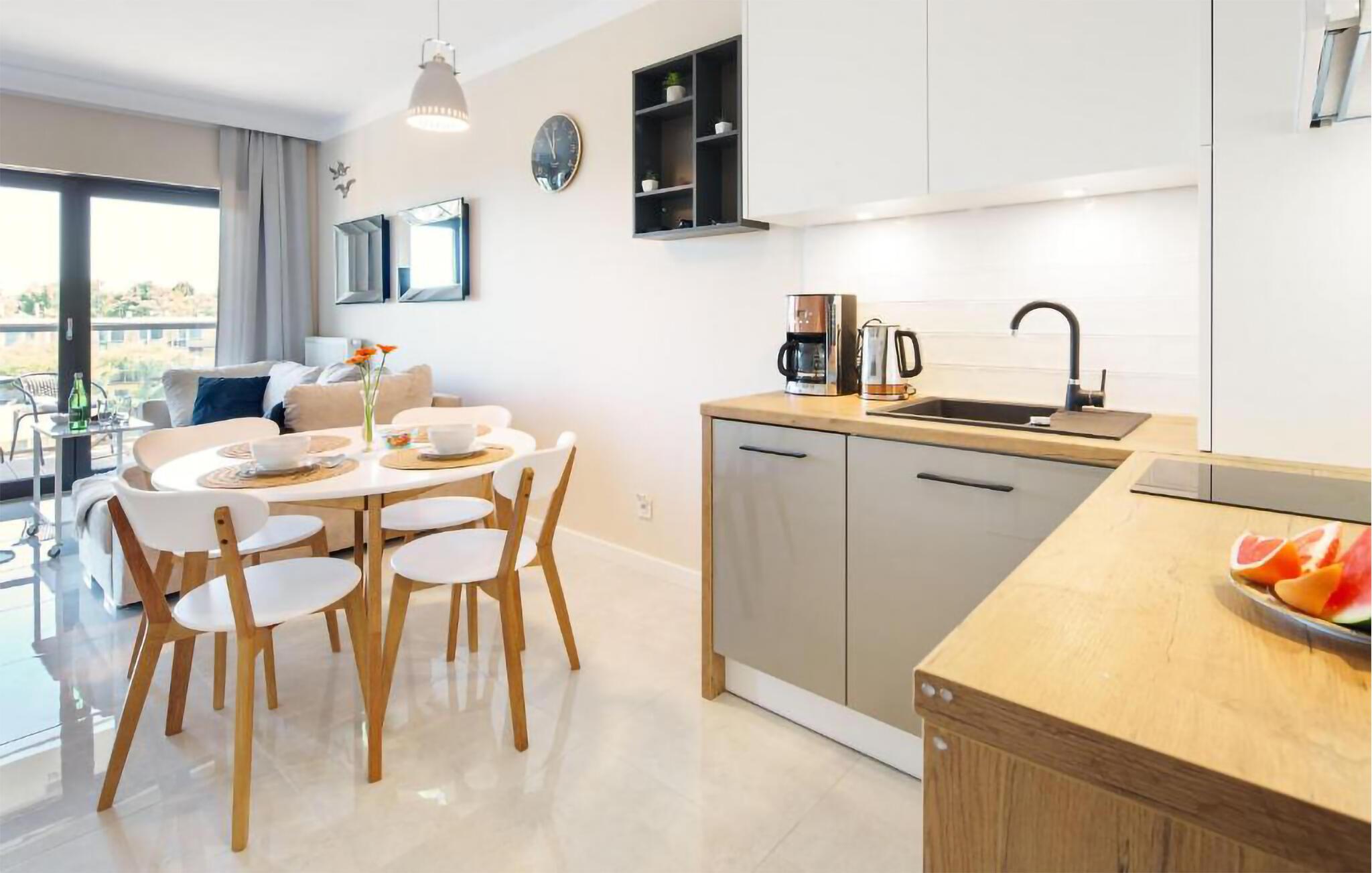 Välkommen till denna bekväma och kompakta semesterlägenhet i ett lyxigt flerfamiljshus på första raden mot havet. De attraktiva möblerna och den härliga inredningen ger dig en fantastisk feelgood-upplevelse. Här kan du koppla av med familjen eller njuta av en avkopplande semester med ett par vänner. Bredvid den vackra lägenheten hittar du en balkong där du kan njuta av din måltid och utsikten över Östersjön.