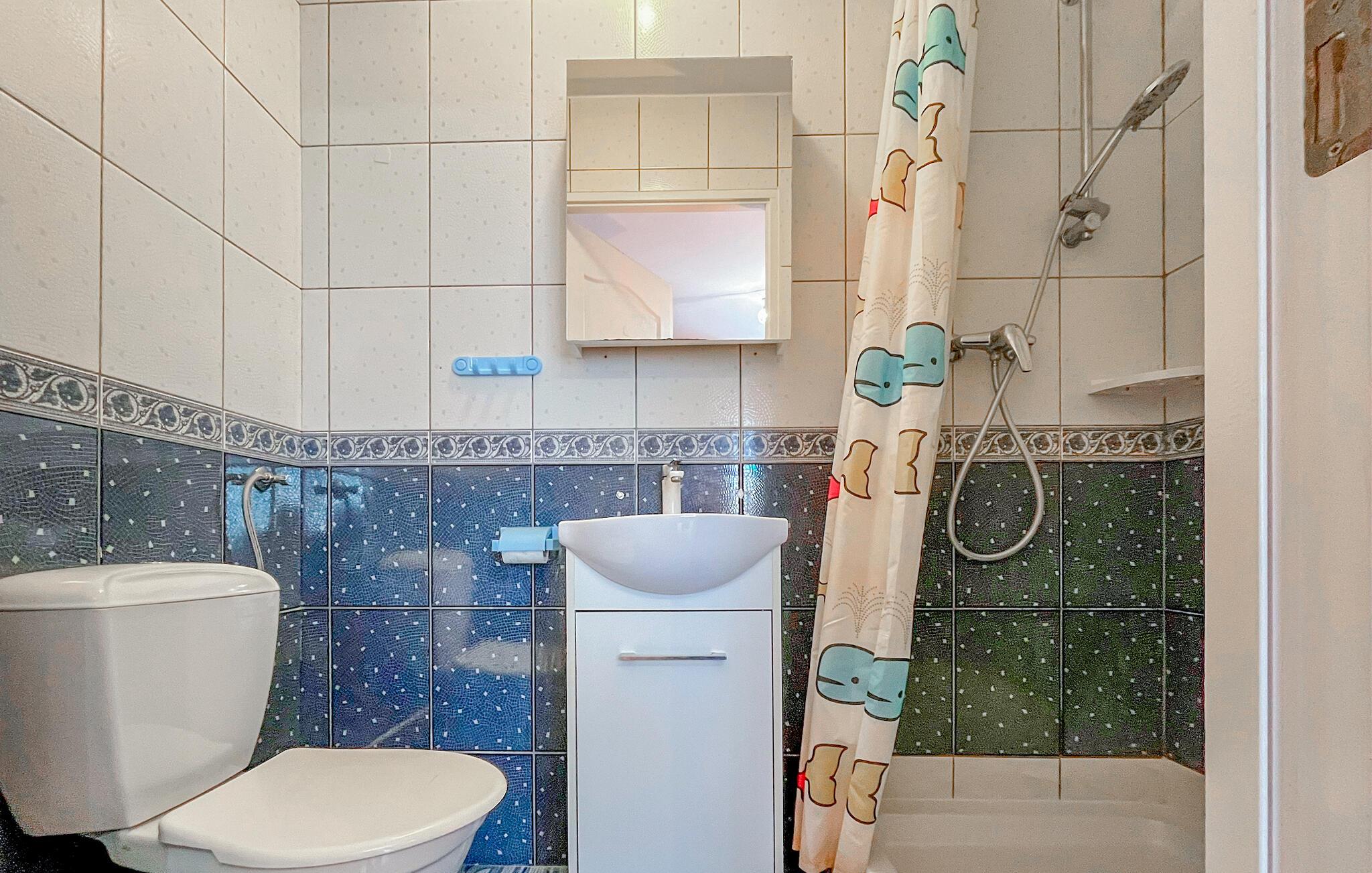 - WC med varmt och kallt vatten, Dusch