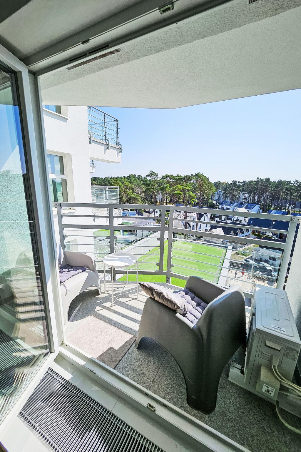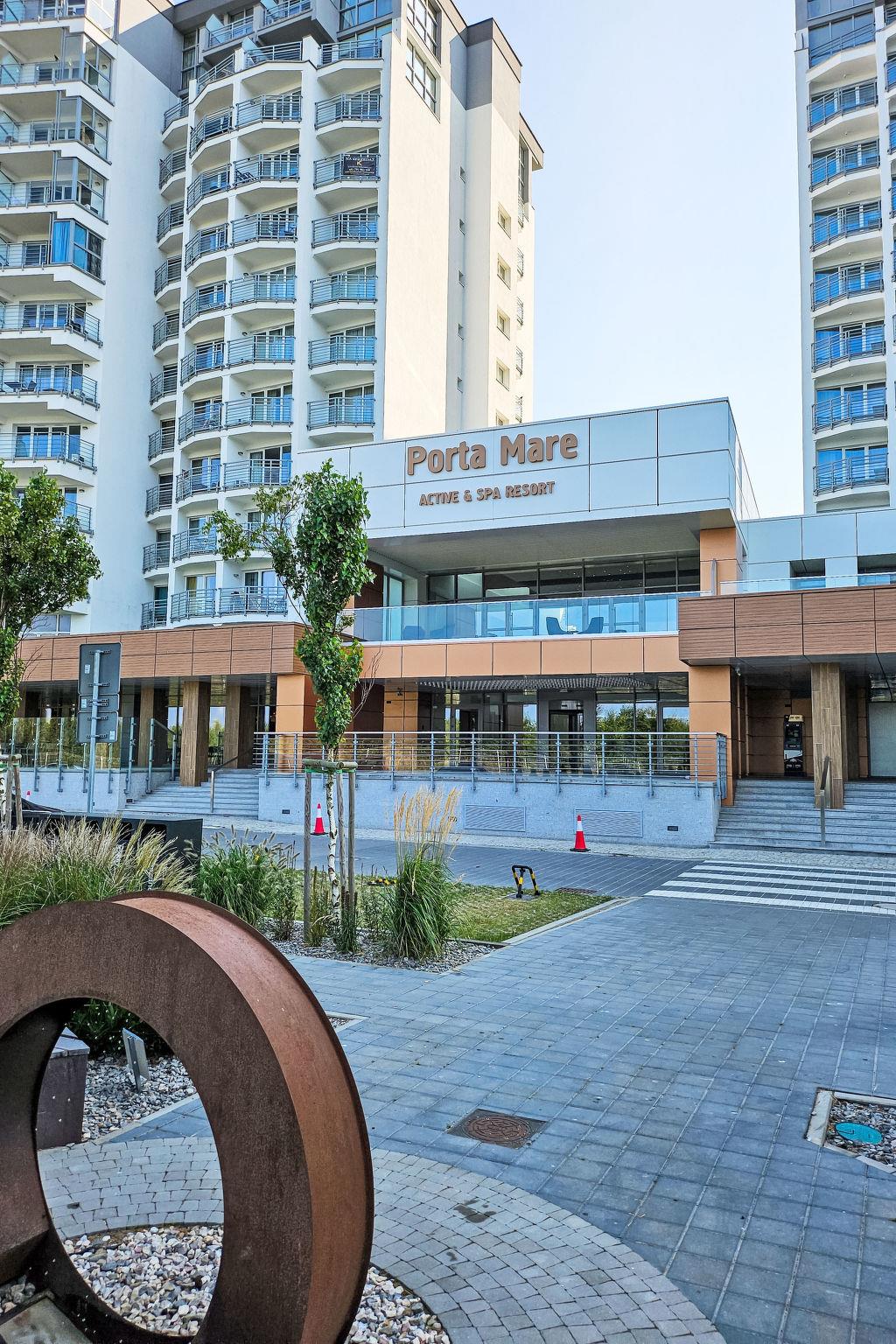 "Mistral Porta Mare", 3-room apartment 45 m2 on 6th floor. Modern and tasteful furnishings: living/dining room with 1 sofabed and satellite TV. Exit to the balcony. 1 room with 1 french bed. 1 room with 1 double bed. Open kitchen (dishwasher, 1 induction hot plates, microwave, electric coffee machine). Shower/WC. Balcony. Terrace furniture, deck chairs. View of the forest and the bay. Facilities: washing machine. Internet (WiFi). Parking at the house. Please note: maximum 1 pet/ dog allowed. Smoke alarm. NOTE: Check-in and check-out are fully automatic. There is no person responsible for the keys on site - keys are collected from a locker and keys should be left in this locker when leaving the apartment.