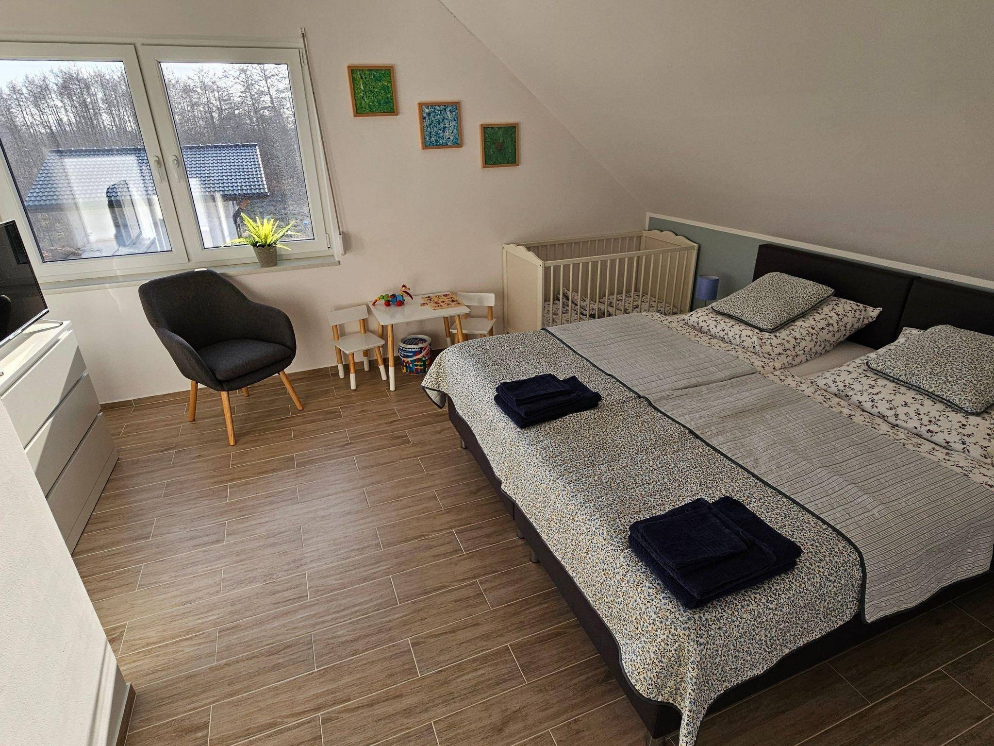 Villa Koprowo has 6 spacious bedrooms. Each room has its own advantages: one has access to a large terrace from ground level, one has been designed as a family room with a cot, and one has a fantastic view of the lake. Each bedroom has comfortable hotel-quality beds, which can be set up singly or joined to form a double bed, depending on individual needs. There are mosquito nets in all rooms. In addition to a large TV in the fully equipped living and dining area, each room has Smart TVs with German TV channels and Internet access via Wi-Fi available on the premises. You can store your luggage in the dressers or wardrobes in your room. To make your stay even more enjoyable, we have purchased six new bicycles for you. Together with four people from the old stock, you can now explore the beautiful areas around the island of Wolin in a large group of up to 10 people.