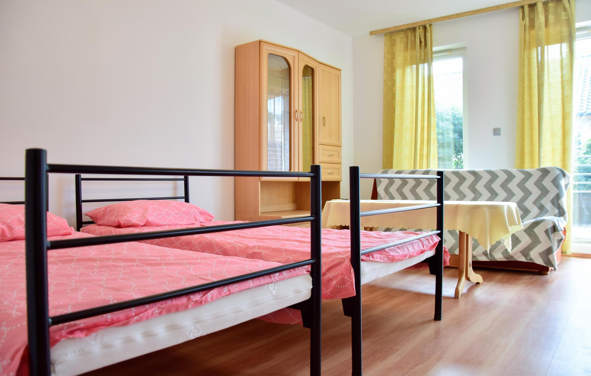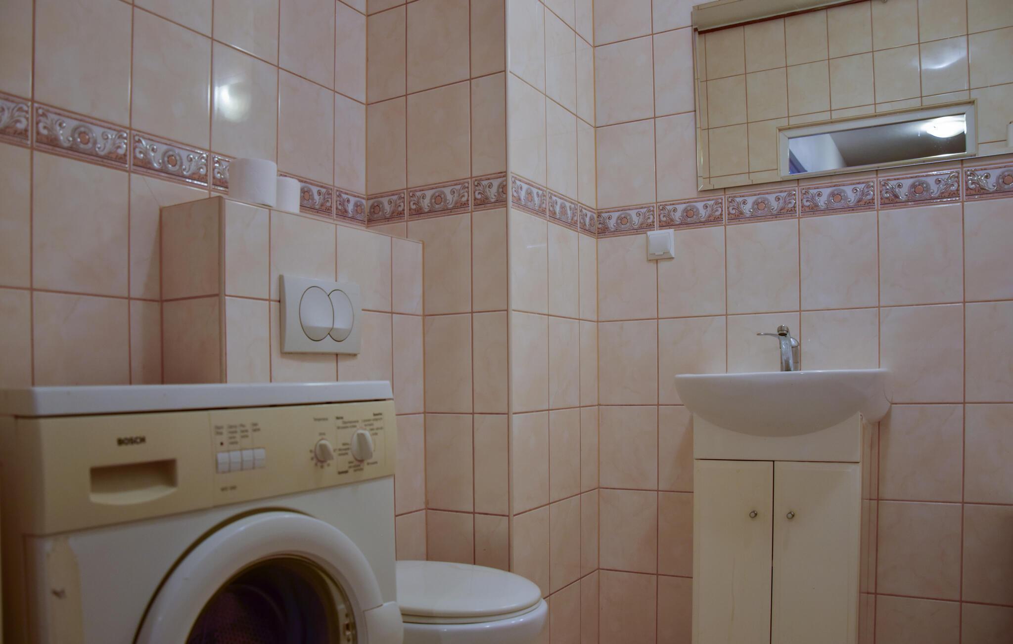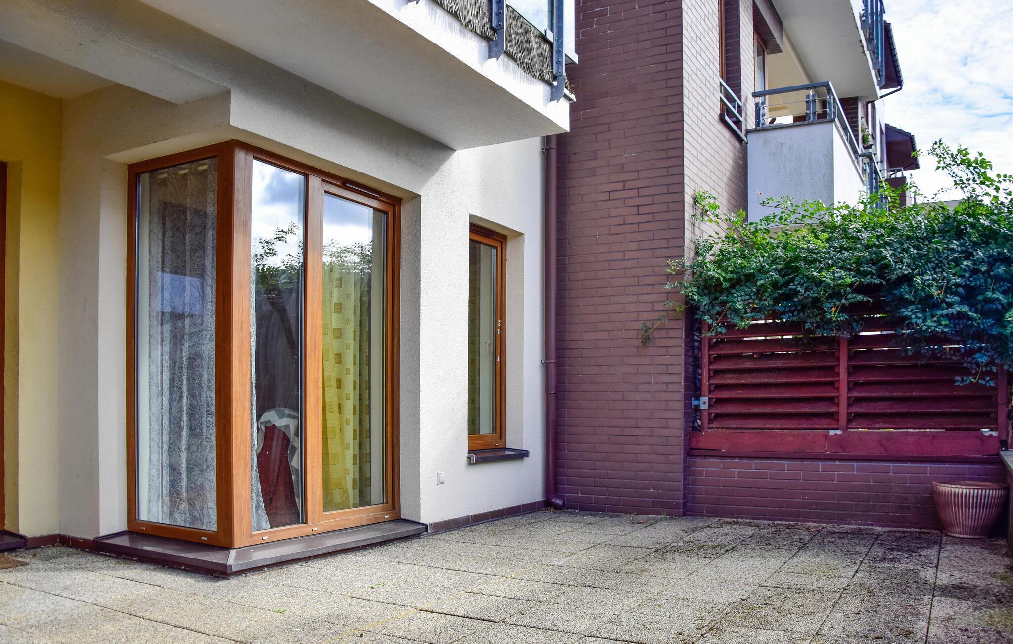 Den ljusa och inbjudande lägenheten på bottenvåningen välkomnar dig med moderna och mysiga möbler som skickligt kombinerar stil och komfort. Generösa fönster släpper in mycket naturligt ljus och skapar en vänlig atmosfär som inbjuder dig att känna dig som hemma. De smakfullt inredda rummen erbjuder gott om plats för avkoppling och den direkta tillgången till terrassen är en höjdpunkt för att dröja sig kvar både inomhus och utomhus vid vackert väder. Här kan du varva ner och njuta av din semester till fullo.