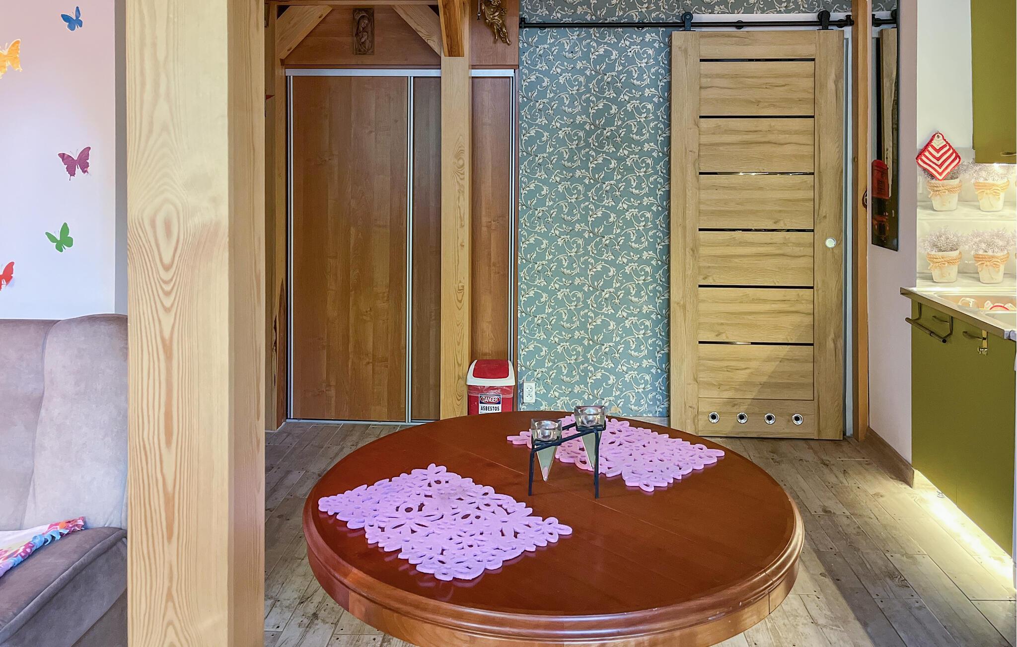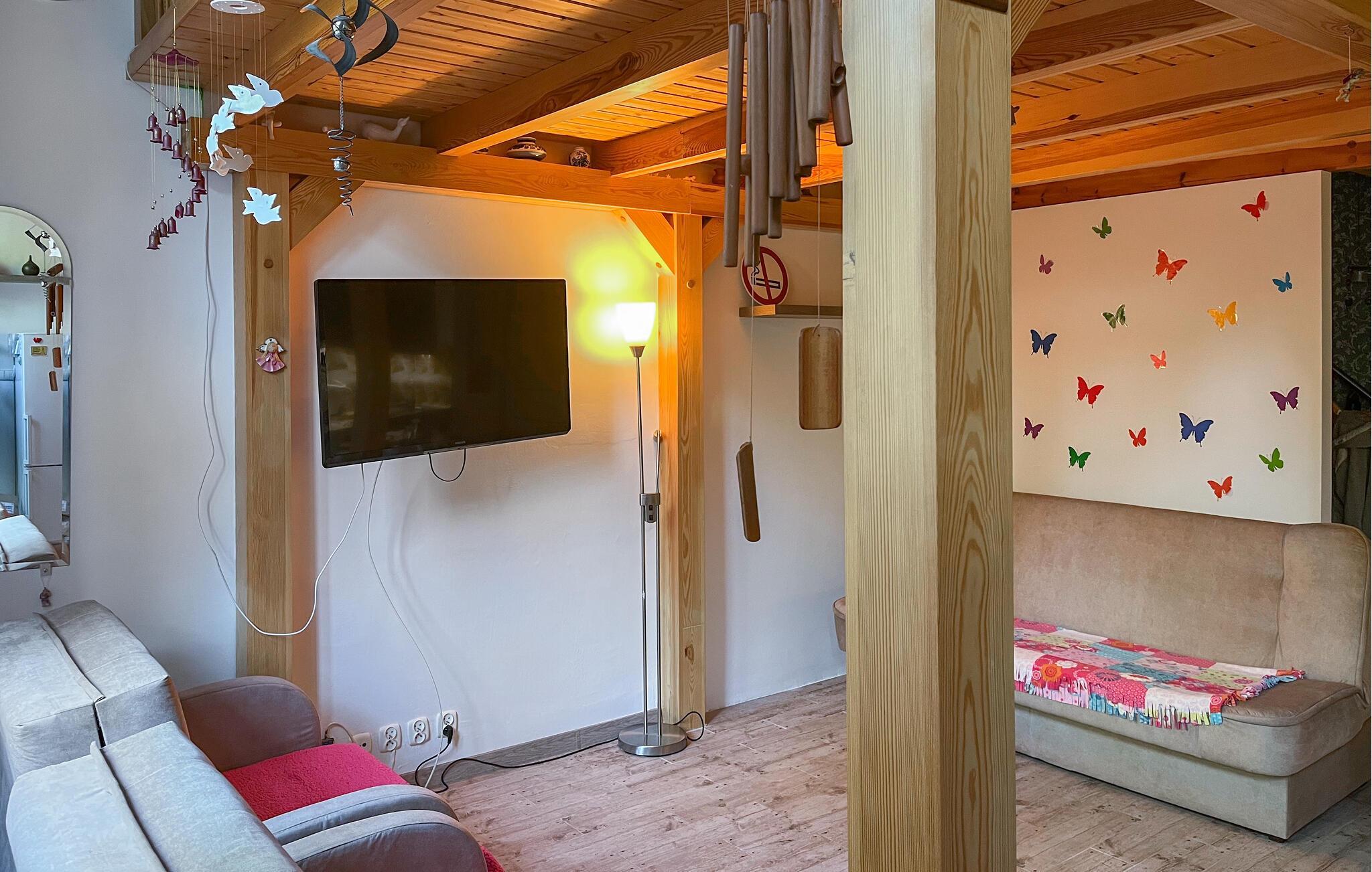 Den inbjudande lägenheten ligger idealiskt nära stranden och är perfekt för en semester med härliga timmar vid havet och spännande utflykter och upplevelser i omgivningen. Mycket trä och tilltalande färger i inredningen skapar en mysig atmosfär i rummen. Njut av tid tillsammans och trevliga kvällar i det inbjudande vardagsrummet med bekväma sittmöbler.