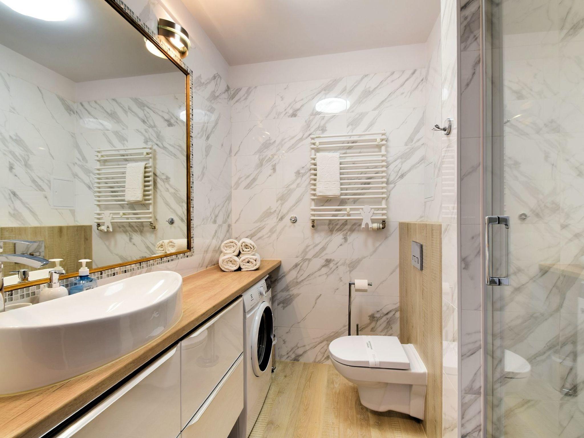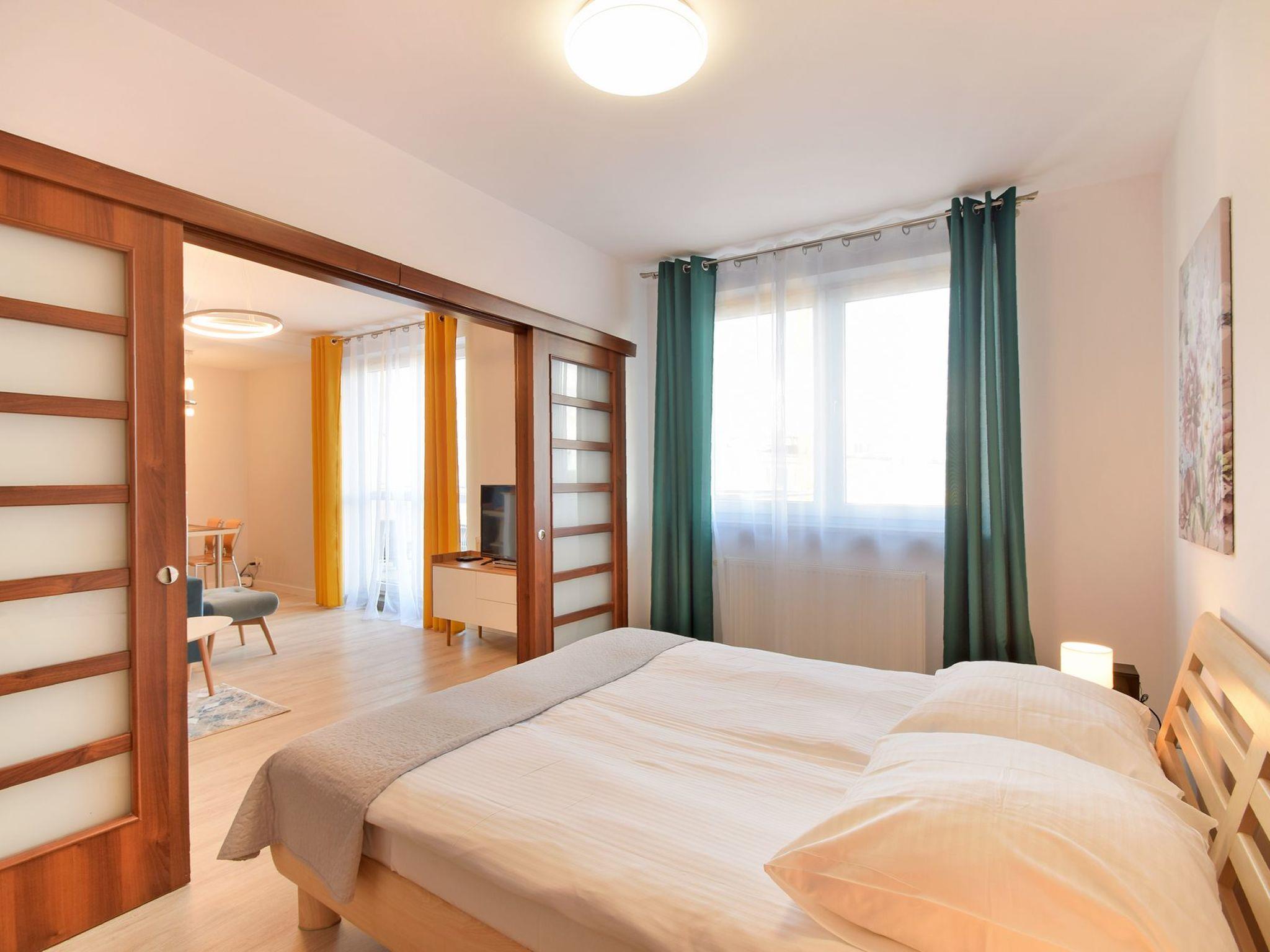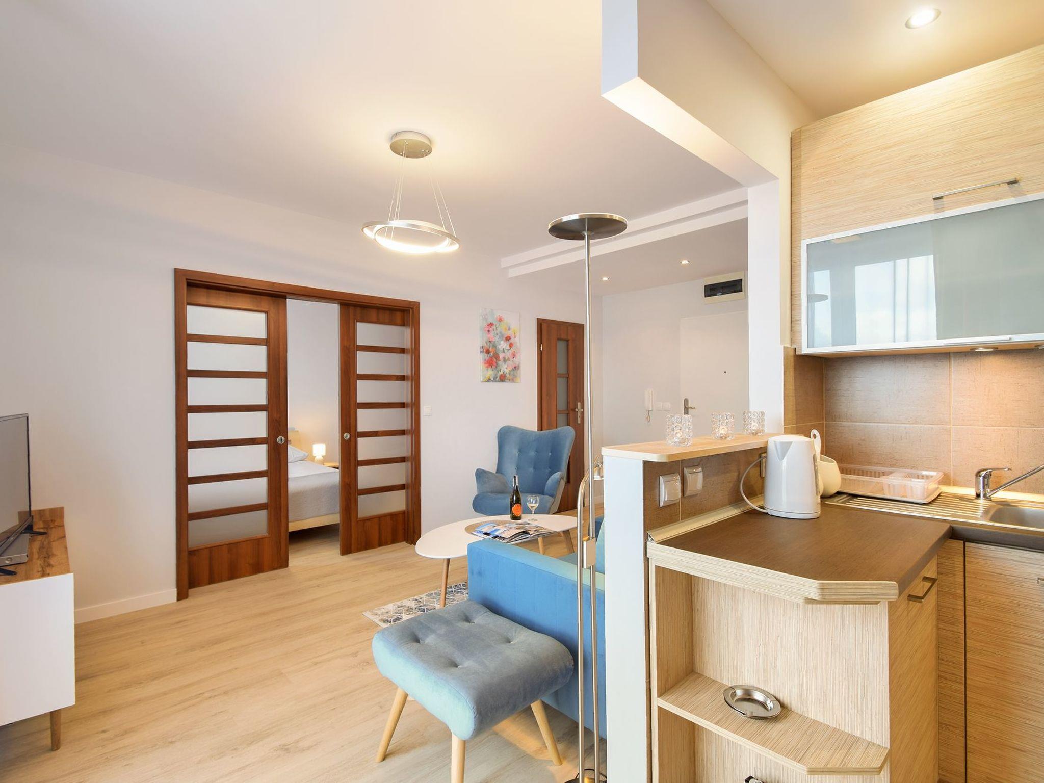 KASPROWICZA apartments are located in the spa city of Kolobrzeg, in the immediate vicinity of Seaside Park, about 500 meters from the sea. Our apartments are located in the new, fourth-storey building with 2 lifts and has a scenic terrace-seating on the roof, where in summer the sun beds can be nice to hang out. Active leisure provides close proximity to the base recreation - surgical spa, tennis courts, miniature golf, playground to play basketball, volleyball, a big SPA & Wellness base, swimming pools, bicycle paths, etc. Nearby is the chapel where Masses are celebrated. You can leave the car in front of the apartment (less seats) and one of the three guarded parking lots located within 100-300m from the apartment building.Short descriptionOther : Non-smoking houseShort description 1Number of kitchens : 1Other rooms : little room for luggageLiving room 1Other living room features : Living room, where there is a large double sofa, easy chair, stool, LCD TV, satellite TV, DVD player and intercom opening exterior doors;Bedroom 1Other bedroom furniture : Bedroom with large double bed (160x200cm) and a large wardrobe-dressing-room for clothes, and her beach equipment, iron and ironing board and folding laundry dryer. The bed is a CD tuner with alarm;Kitchen 1Other kitchen equipment : Fully equipped kitchenette with ceramic hob, fridge, microwave, coffee maker, toaster, electric kettle, cutlery, crockery, pots and pans, cutlery, etc. The kitchen has a table and chair set;SurroundingNearby sports facilities : Bike tours, Diving, Fishing, Football area, Riding possibilities, Sailing, Sport center, Tennis