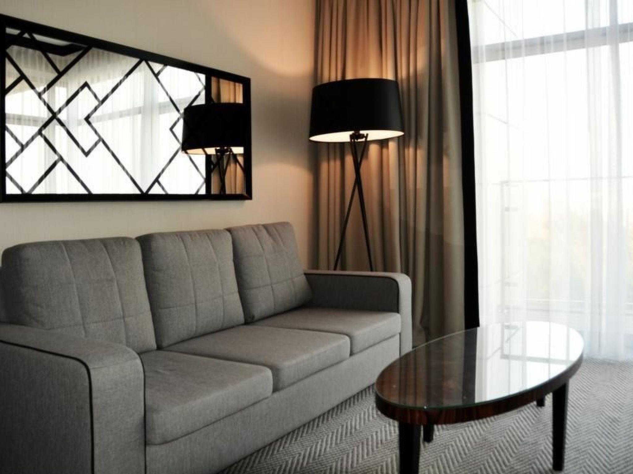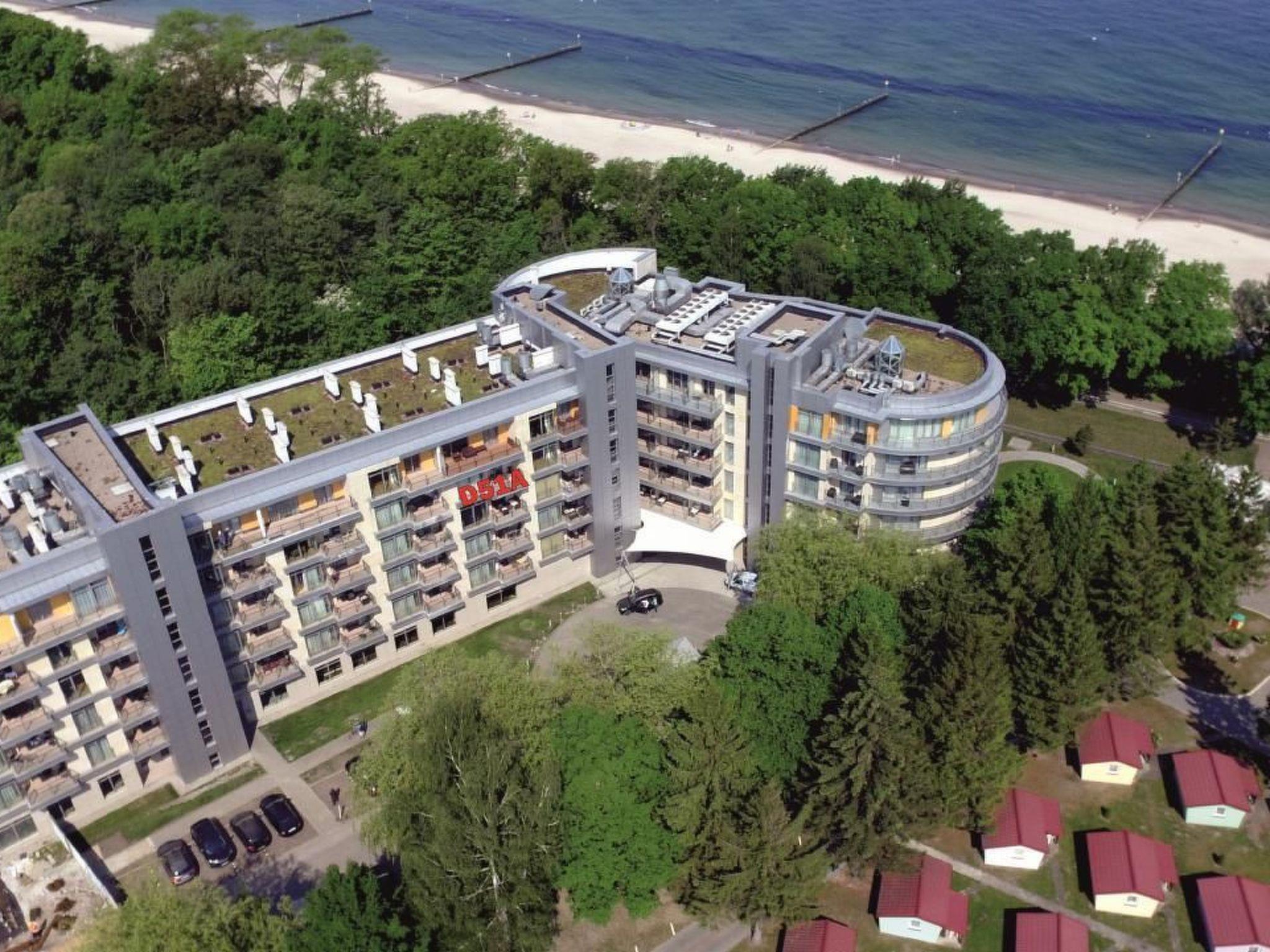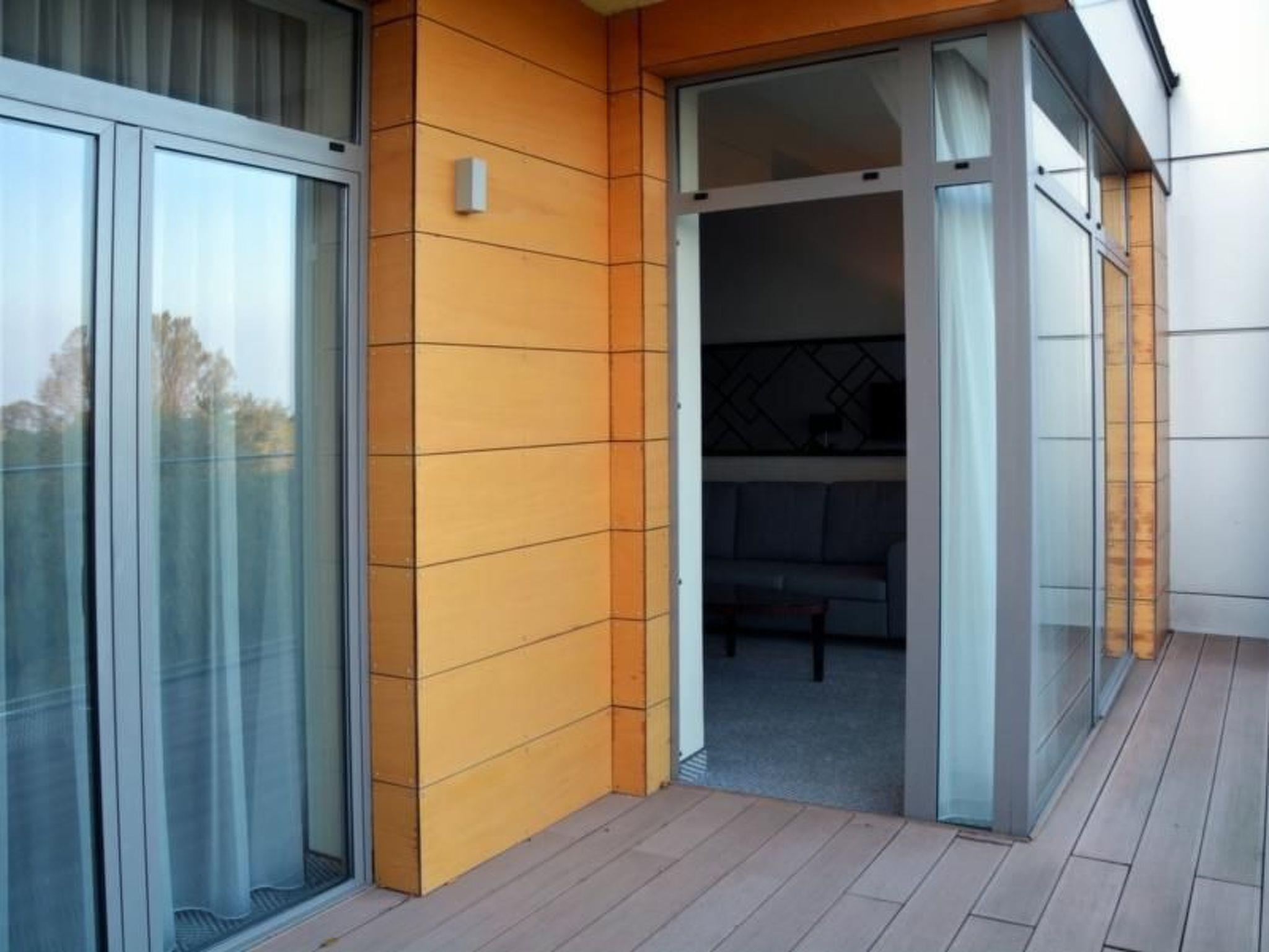 Our luxury flat DIUNE D69A has been furnished and prepared to the standard of the 5-star flat DUNE Hotel ***** & Resort. It is a typical hotel suite without a kitchen or kitchenette. Guests of our flat have chargeable access to the hotel restaurant or outside establishments, of which there are plenty in the area. Our clients have unlimited free access to the indoor swimming pool, paddling pool for the youngest, jacuzzi overlooking the park, sauna, baths, tepidarium and brine graduation tower, as well as to the fitness club and children's playroom located on the premises. Parking spaces and an underground garage are located on the premises at the guests' disposal - payable additionally at the hotel. The windows of our flat face east. The flat is located on the highest floor of the building and thus has a view of the sea above the branches of the coastal trees. The flat consists of: Living room with a large double sofa bed (140cm x 200cm), LCD TV, desk, chair; Bar annex equipped with mini-bar, Tchibo pressure coffee machine (15bar), electric kettle, coffee tableware; Bedroom with a large double bed (160cm x 200cm) with a set of professional hotel damask bedding, chest of drawers and LCD TV; Bathroom with a shower cubicle, washbasin, toilet, hairdryer, cotton towels; Large balcony-terrace with a small table and chairs; entrance from the living room and bedroom; from the balcony there is a sea view; In addition, the flat has beach equipment (deck chairs, screen), iron and ironing board.