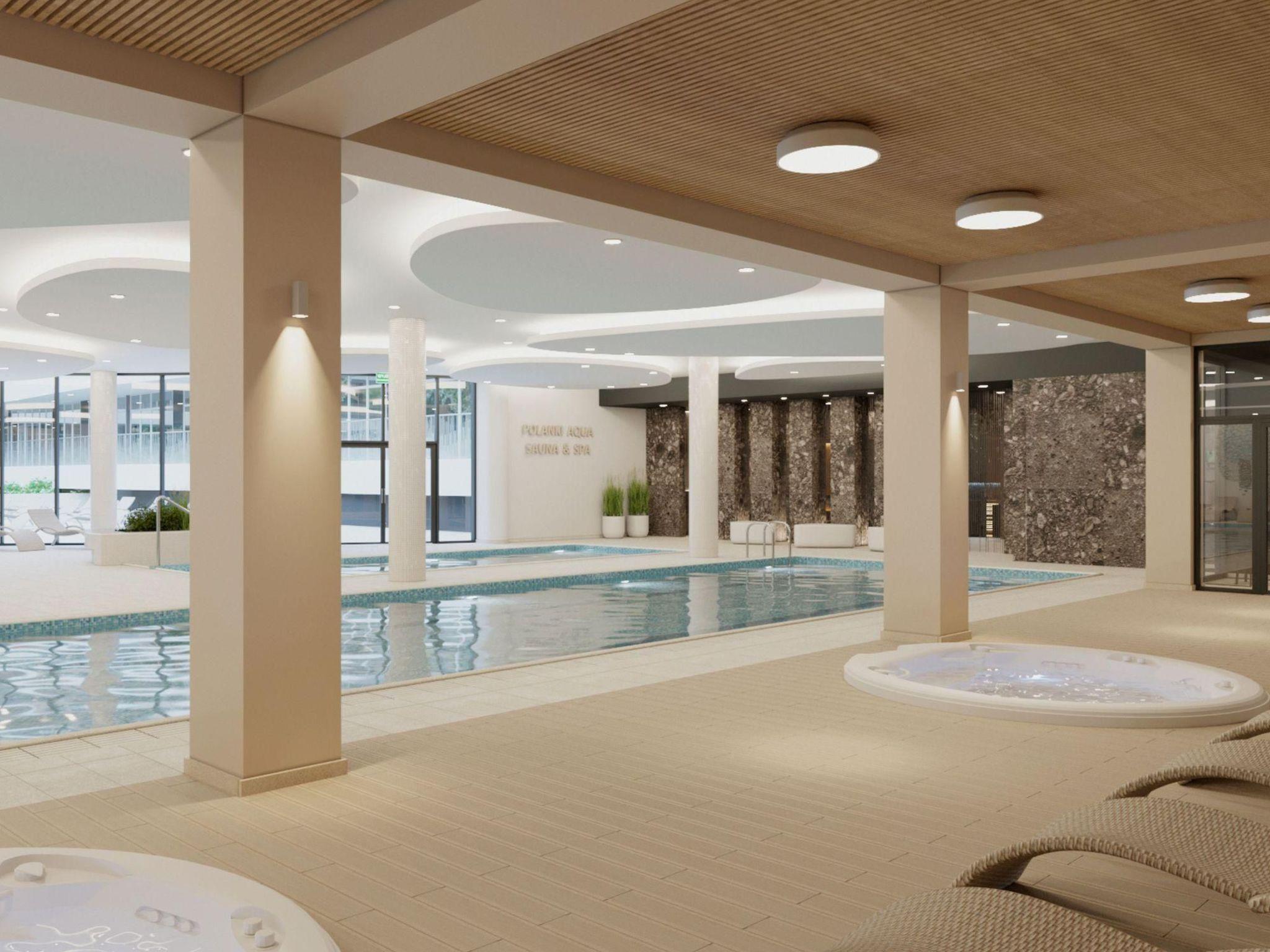 In terms of recreational offerings, the Polanki Aqua Complex is second to none. Guests can enjoy the indoor and outdoor swimming pool and sauna area, including a 25 m long sports pool, jacuzzi, water massages, steam and dry saunas, a water playground for children and heated benches. In addition, for those wishing to be active outdoors, there is a fitness centre, a playroom, a playground and an outdoor relaxation and activity zone, providing the ideal conditions for relaxation and entertainment.