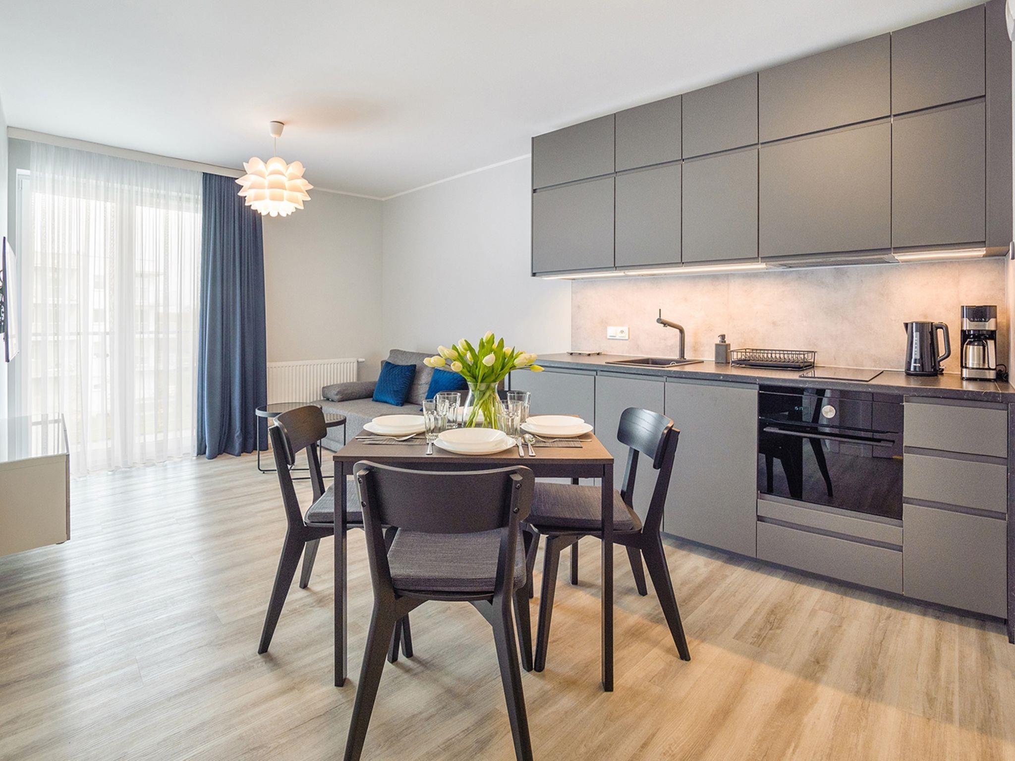Modern, cosy apartment block "Porta Mare". In a quiet, sunny position, 900 m from the sea, 900 m from the beach. For shared use: children's playground. In the house: WiFi, lift, central heating system. Parking (limited number of spaces, extra). Grocery 400 m, restaurant 700 m, bus stop 2.6 km, railway station 2.5 km. Nearby attractions: Oceanarium 3 km, Port Jachtowy 3.7 km, Latarnia Morska 4 km. Please note: the photograph shows a typical example. Additional accommodations can be booked. The apartment can be located on the ground floor, first floor or second floor. Some apartments with sea view/partial sea view. Additional fee for on-site parking. Child up to 3 years old accepted (over the limit).