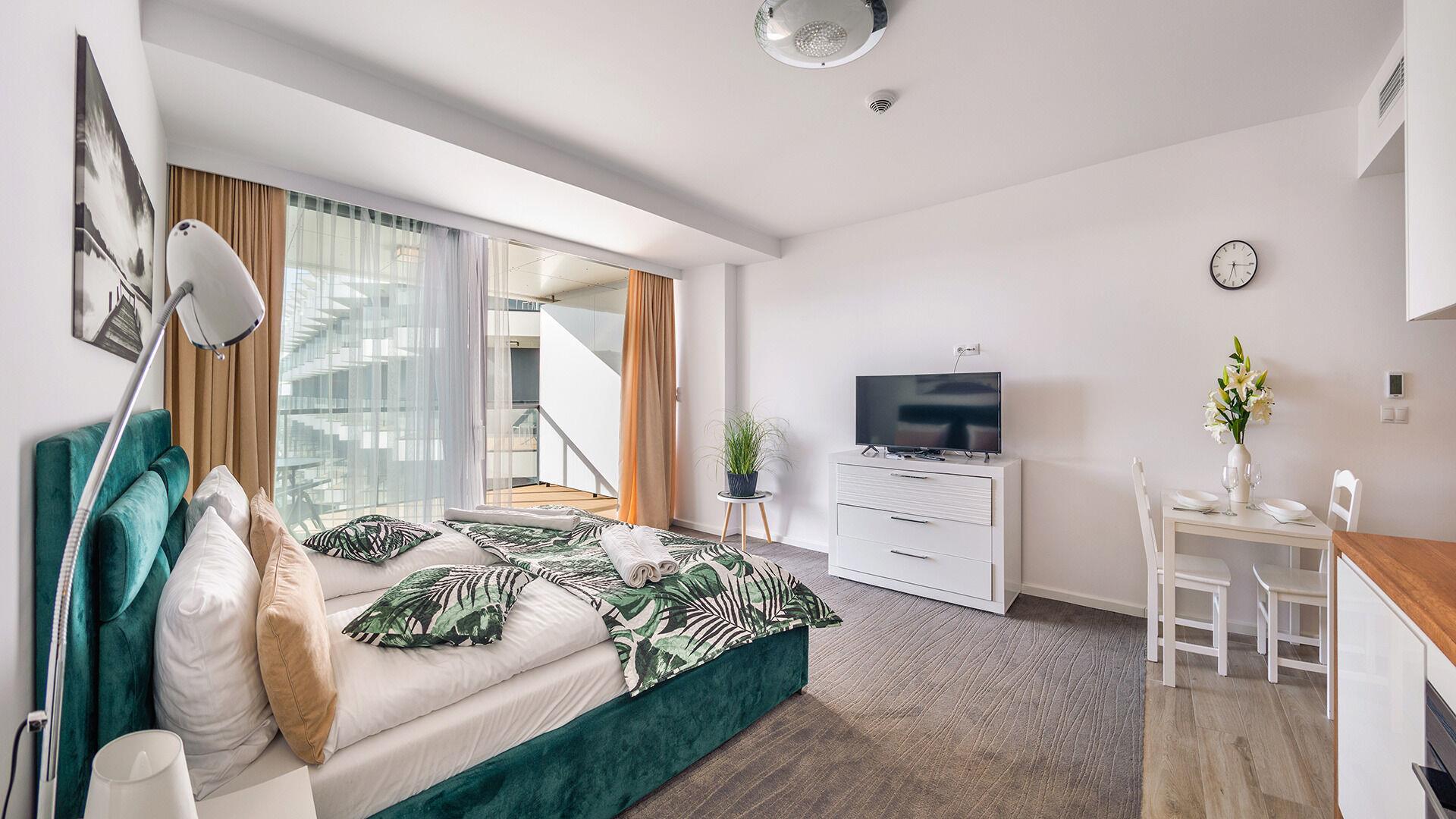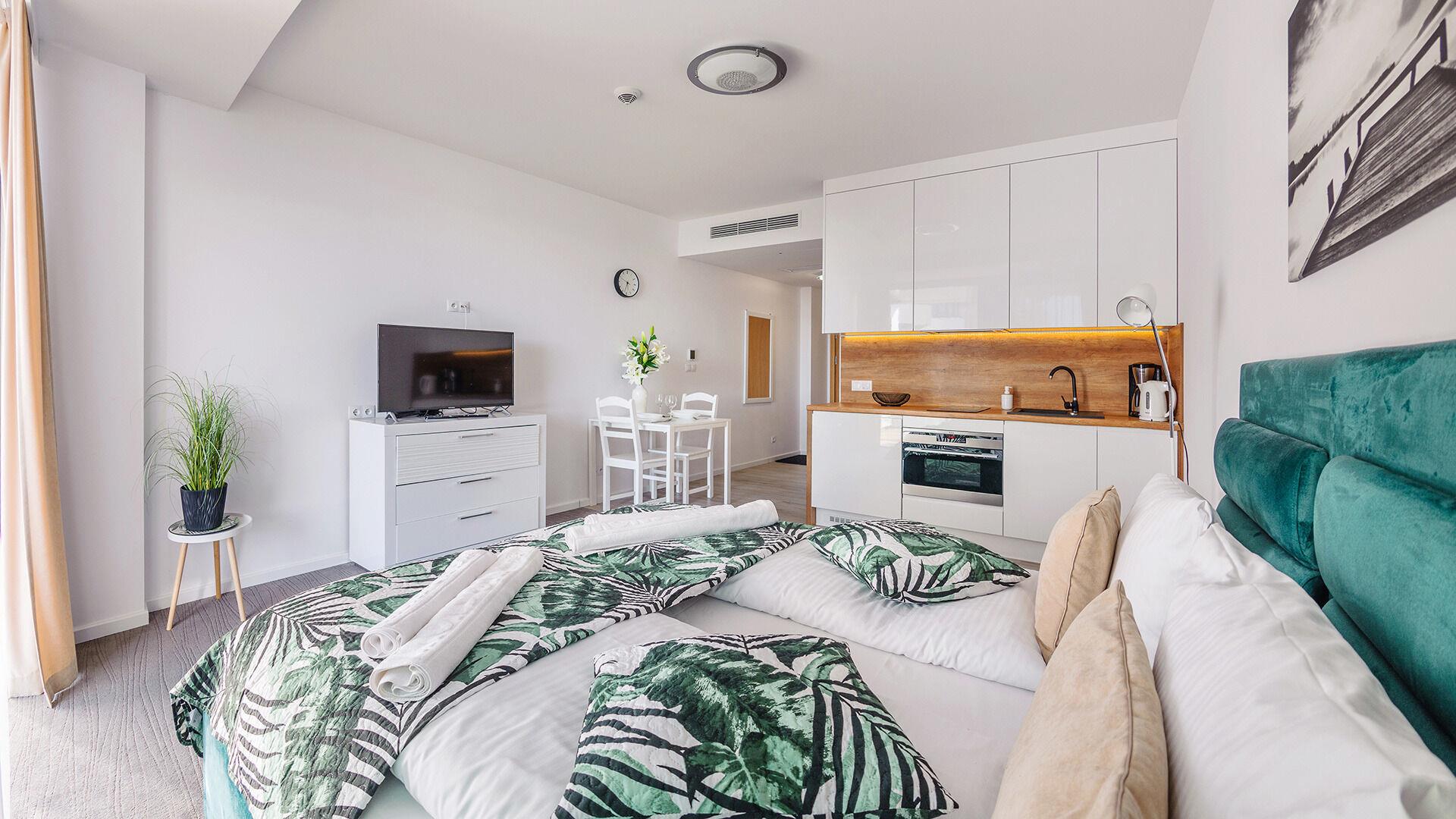 • Die Apartments sind mit Bettwäsche und Handtüchern ausgestattet.
