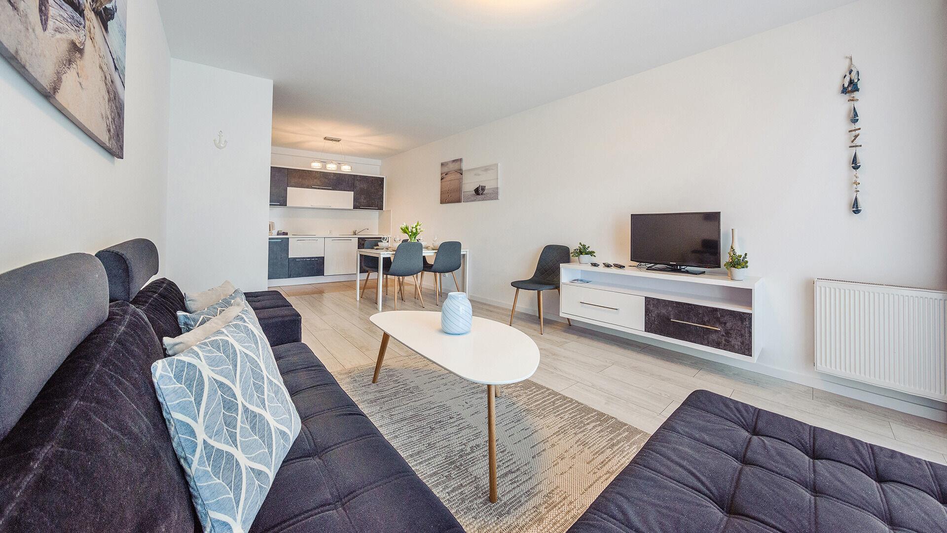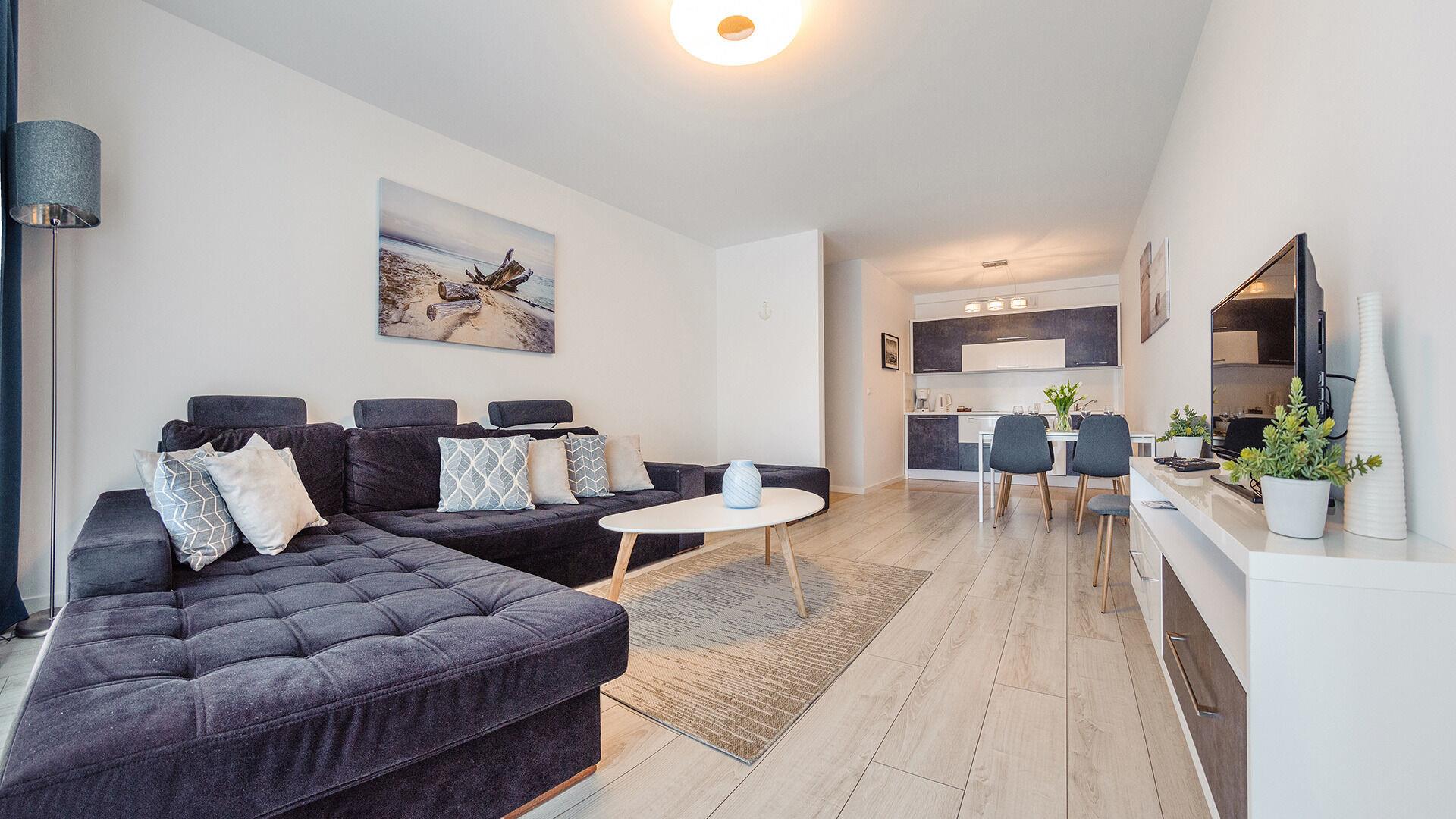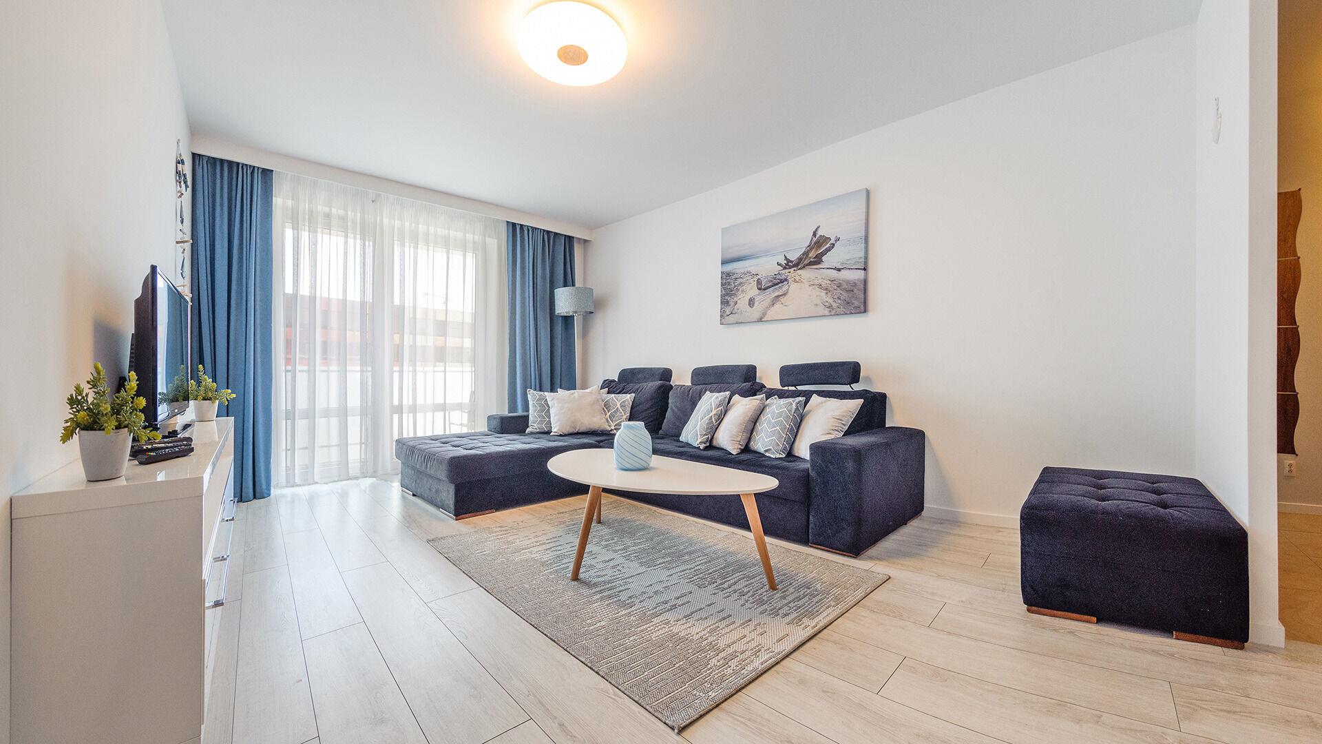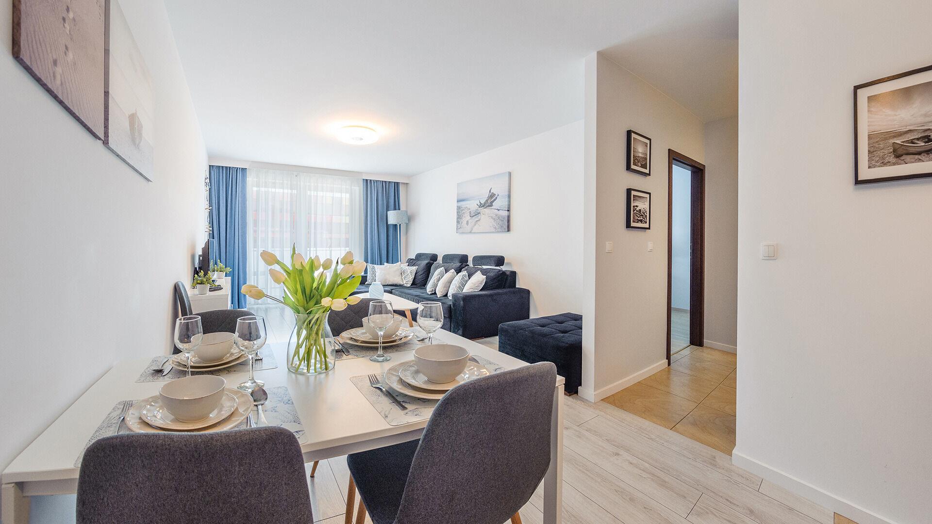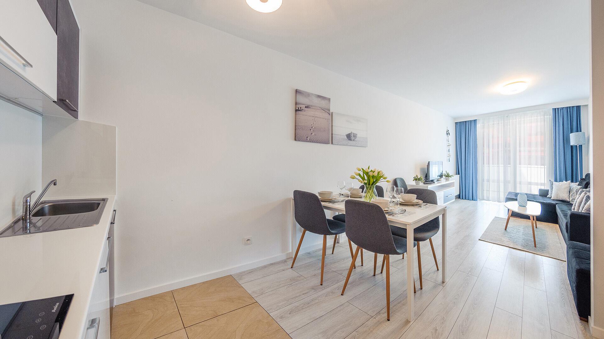 • Haustiere sind in der ausgewählten Wohnung erlaubt. Die Kosten für den Aufenthalt mit einem Haustier betragen 40 PLN pro Tag.