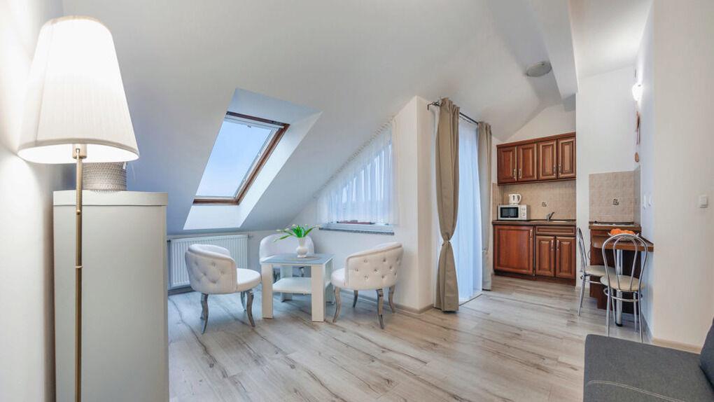 Olymp ist eine außergewöhnliche Unterkunft im Herzen des Kurviertels von Kolobrzeg, in der Kosciuszki-Straße 5. Die Apartments genießen eine hervorragende Lage, nur 150 Meter vom wunderschönen Sandstrand entfernt. Die Umgebung ist grün und ruhig – ideal zum Entspannen.