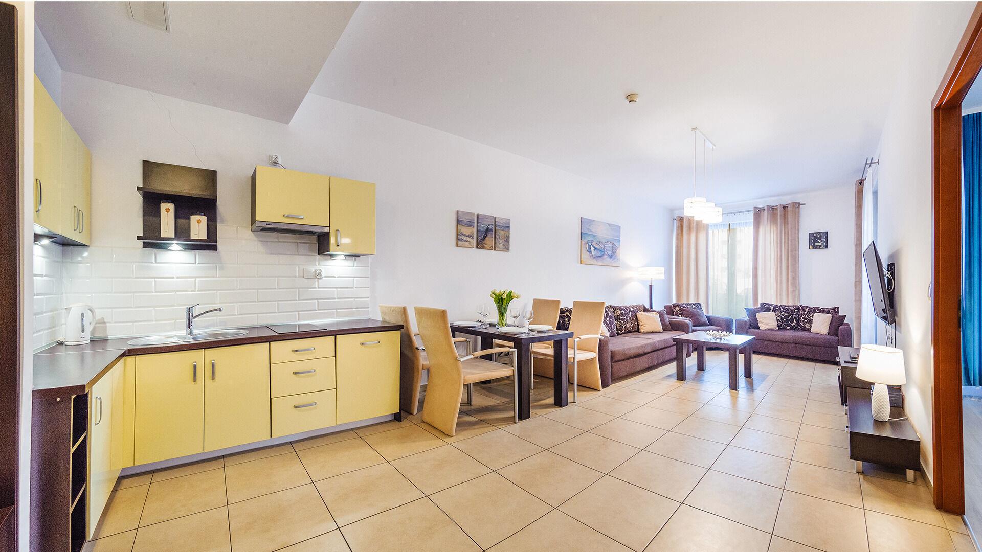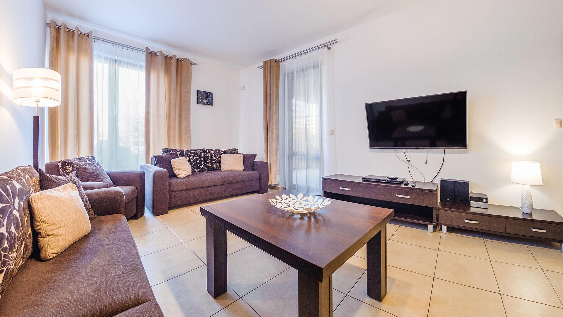 • Haustiere sind in der ausgewählten Wohnung erlaubt. Die Kosten für den Aufenthalt mit einem Haustier betragen 40 PLN pro Tag.