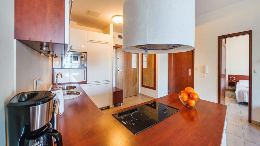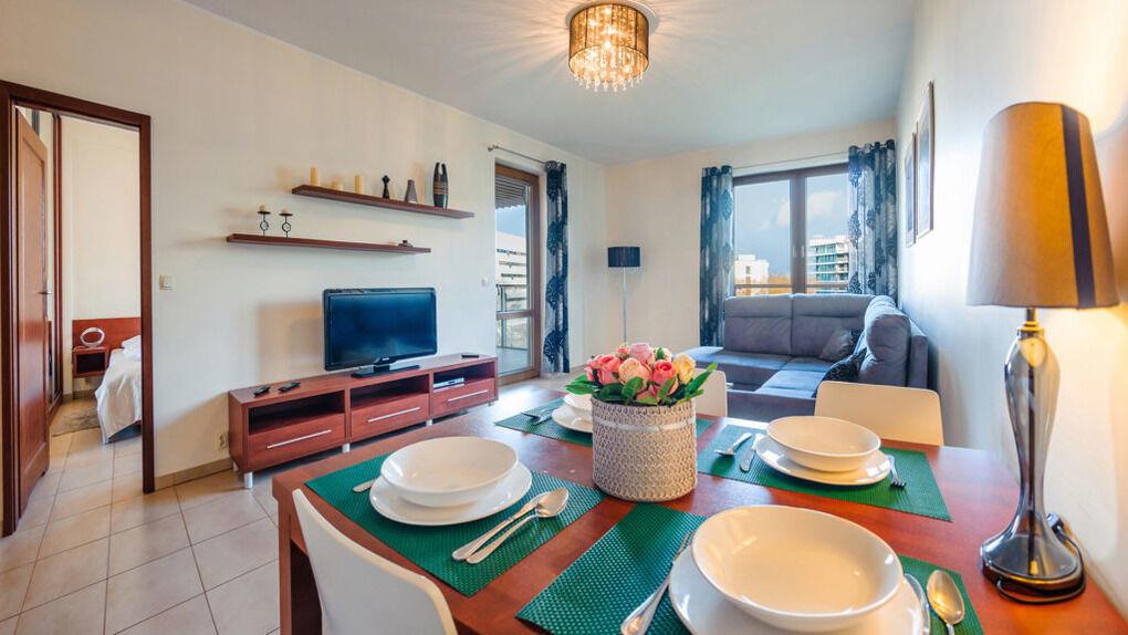 • Haustiere sind in der ausgewählten Wohnung erlaubt. Die Kosten für den Aufenthalt mit einem Haustier betragen 40 PLN pro Tag.