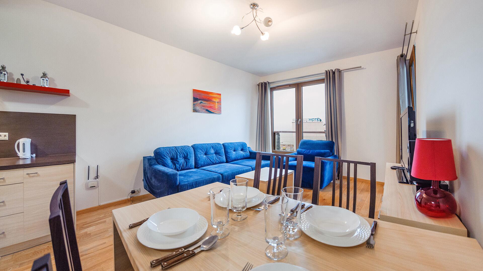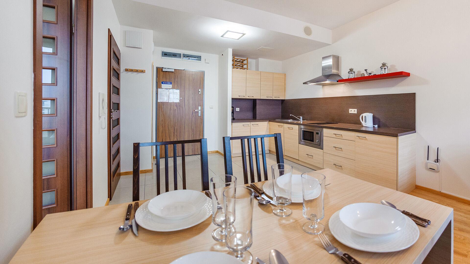 • Haustiere sind in der ausgewählten Wohnung erlaubt. Die Kosten für den Aufenthalt mit einem Haustier betragen 40 PLN pro Tag.