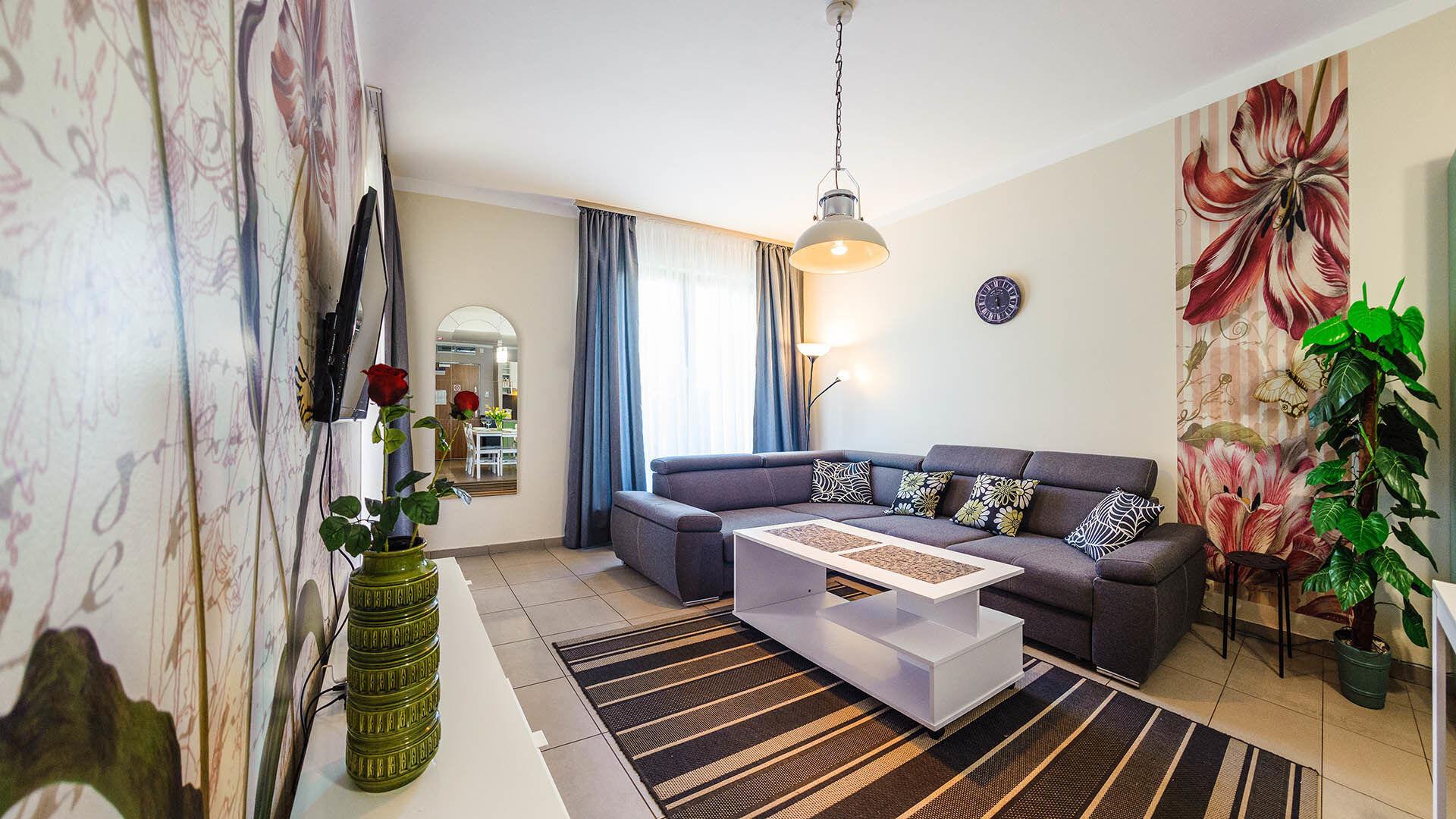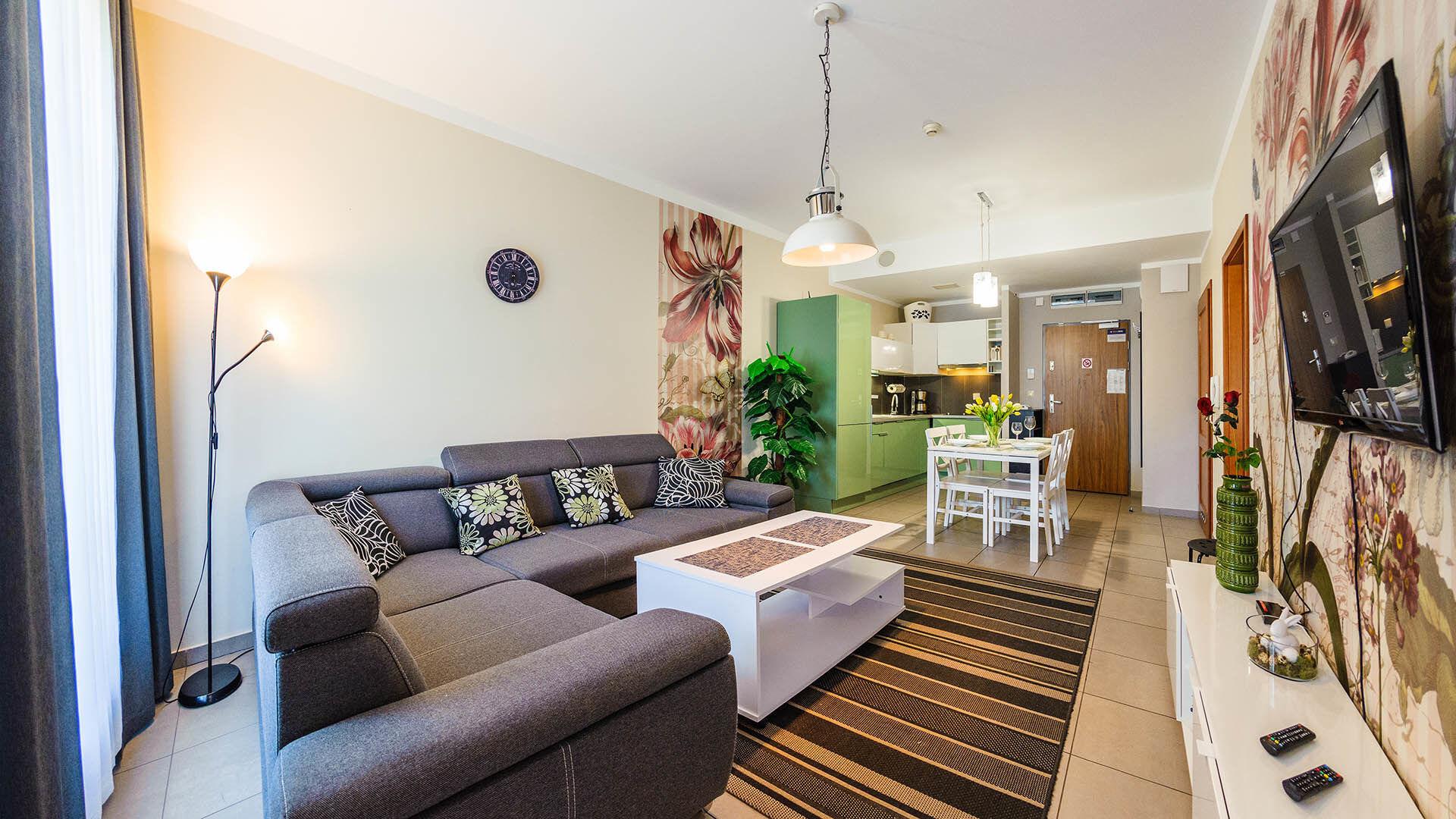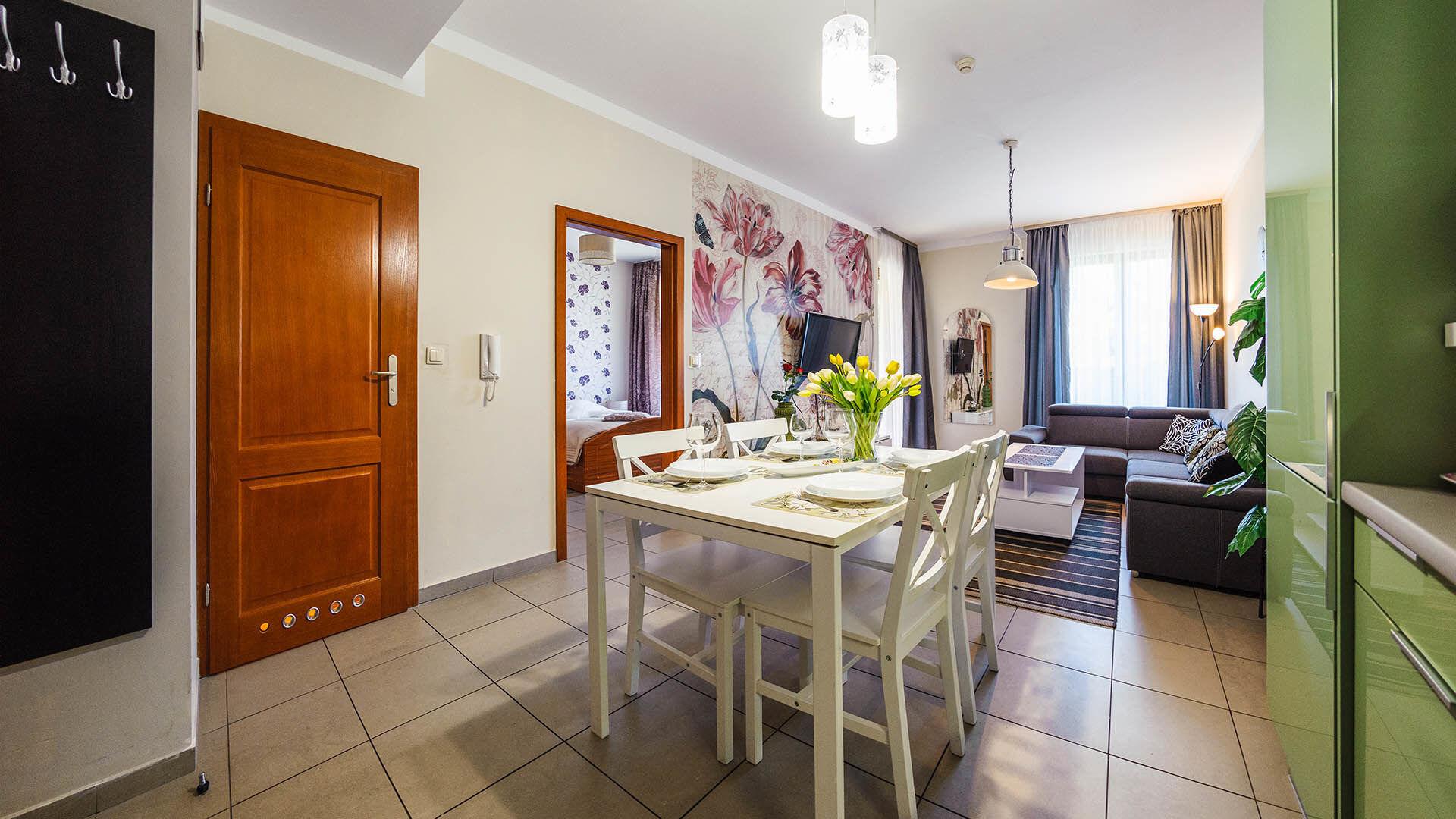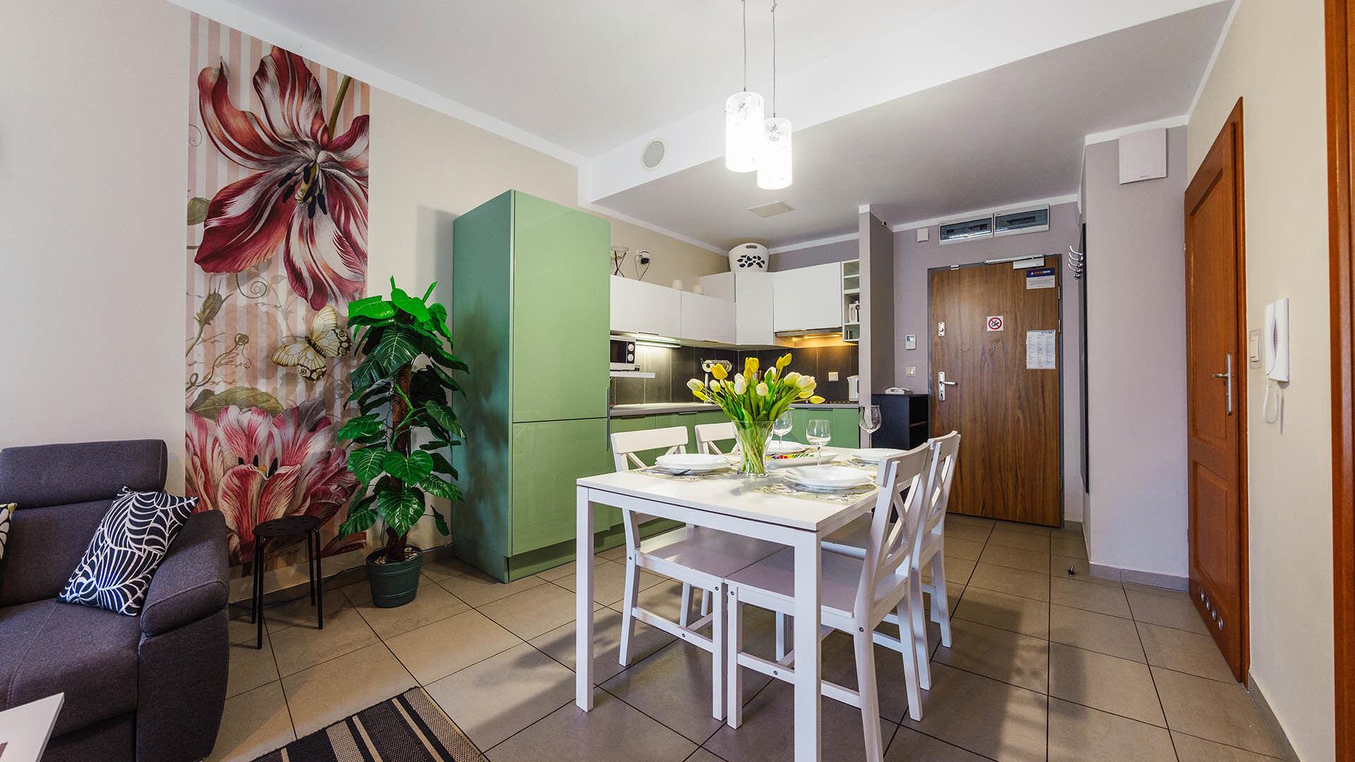 • Haustiere sind in der ausgewählten Wohnung erlaubt. Die Kosten für den Aufenthalt mit einem Haustier betragen 40 PLN pro Tag.